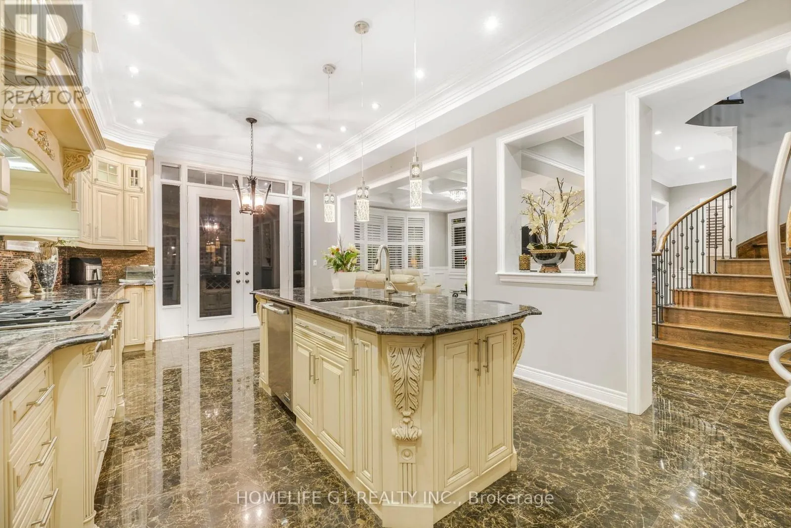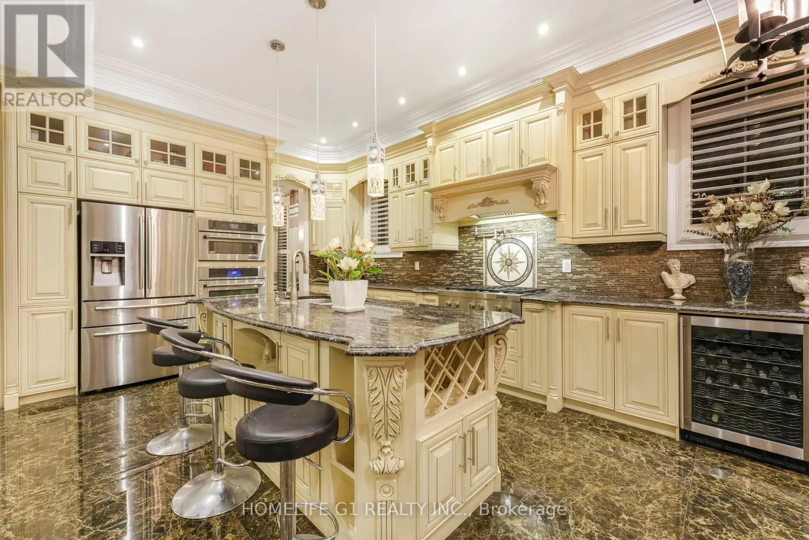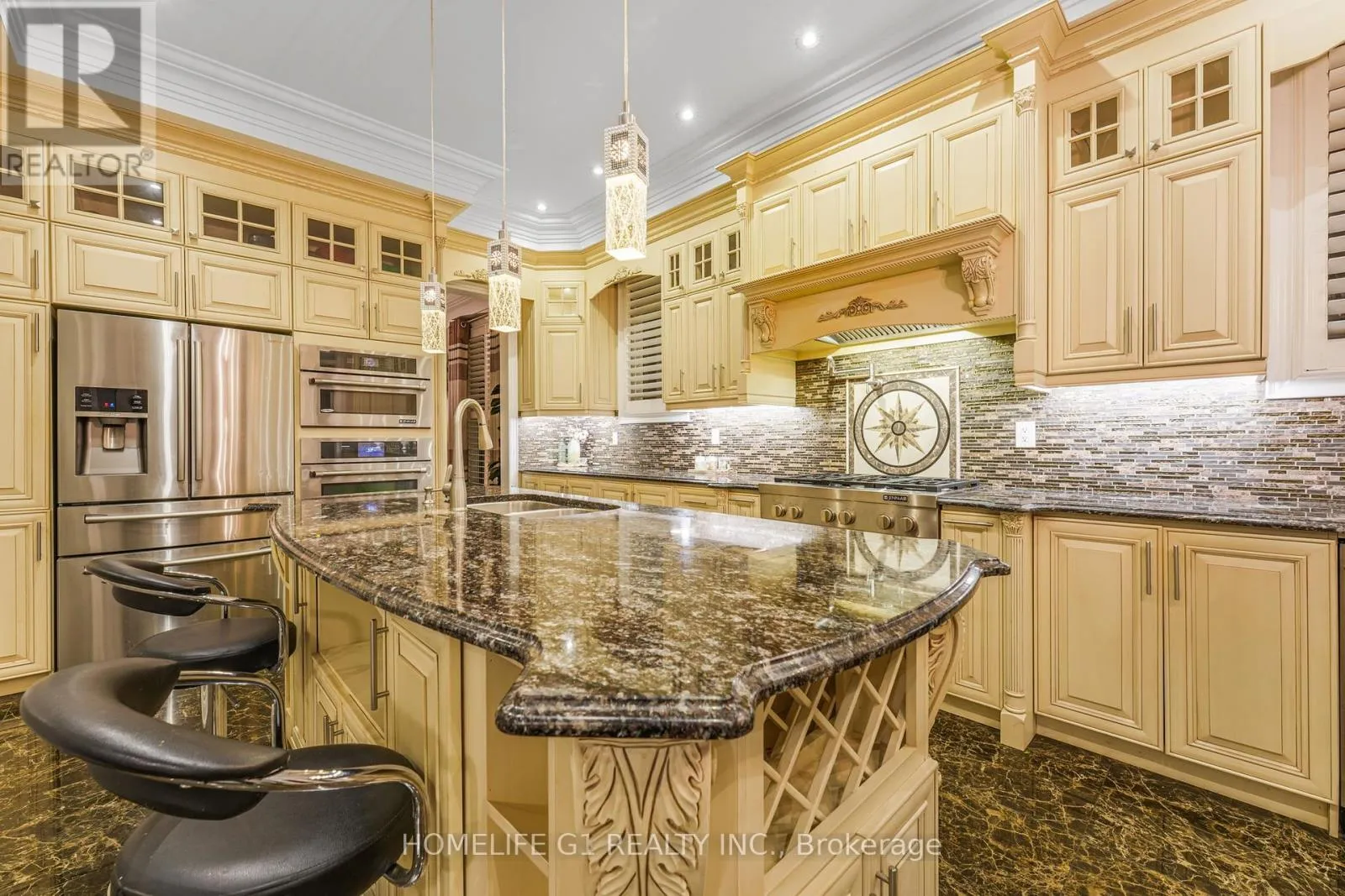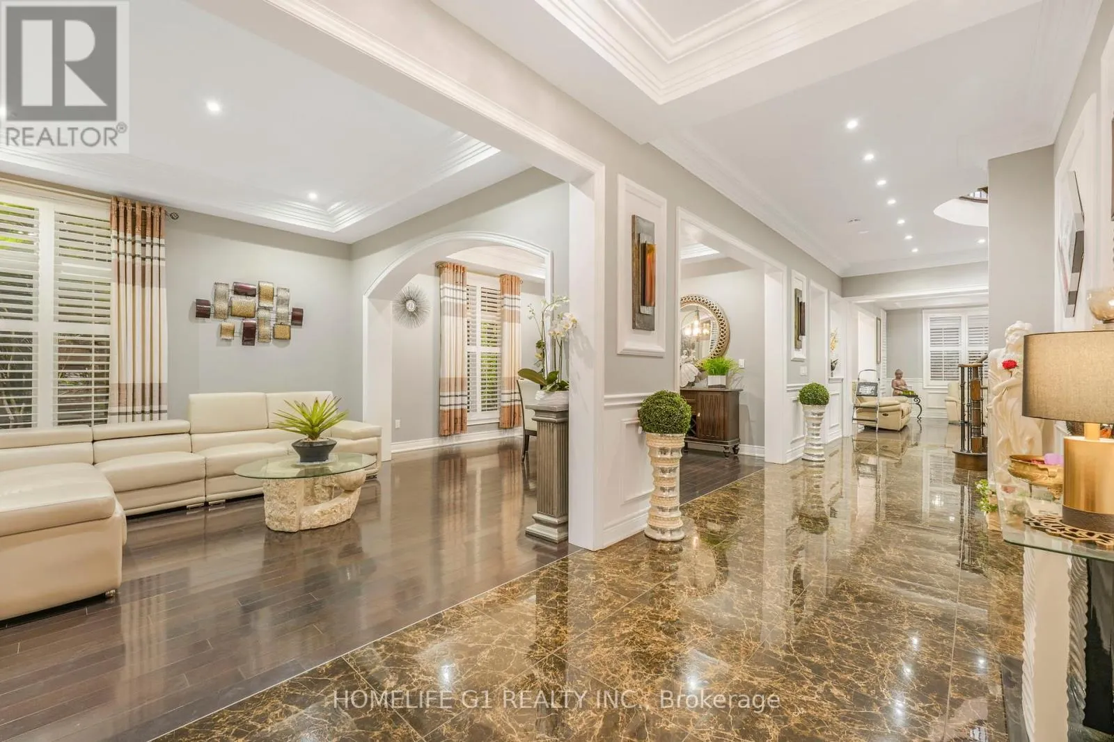 Ninth Line/Reeves Way Welcome to this extraordinary executive home, perfectly situated on a premium cul-de-sac in the Prairewood enclave built by Sorbara. Offering 5,200 sq. ft. of exquisitely finished living space, this residence blends timeless elegance with thoughtful upgrades, creating the perfect setting for both comfortable family living and effortless entertaining. The exterior makes a striking first impression with a professionally manicured lawn, upgraded porch, interlocking stone driveway and walkway, and a full 6-zone in-ground sprinkler system** that keeps the property lush and green. Inside, the main floor boasts smooth ceilings throughout and an impressive 10-foot coffered ceiling, creating an open and airy feel. A dedicated office/library with a powder room offers a quiet space for work or study. The chef-inspired kitchen is a true showpiece, featuring crown moldings, upgraded cabinetry, a 6-burner gas cooktop with marble backsplash and pot filler, Jenn-Air built-in appliances (microwave, oven, dishwasher), a wine cellar, and a large island perfect for gatherings and entertaining. Upstairs, youll find 9-foot ceilings, five generously sized bedrooms, and three beautifully designed bathrooms, including a luxurious primary suite. The finished basement with 9-foot ceilings is an entertainers dream, complete with two additional rooms, a full bathroom, a second full kitchen, and a built-in theatre system perfect for hosting guests or creating a private retreat for extended family. Outdoor living is elevated with a covered deck featuring tile flooring, providing an incredible space to host friends and family. The backyard is professionally landscaped and designed to impress. Additional highlights include California shutters throughout, a 2-car garage, 51-foot frontage, and end-of-street privacy a rare combination that delivers both curb appeal and tranquility. This exceptional home truly has it all. You have to see this property to appreciate everything it offers! (id:27476)