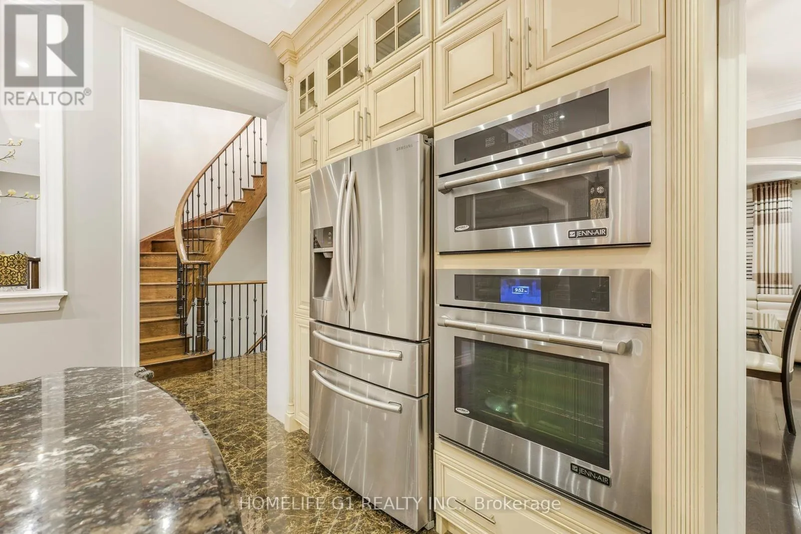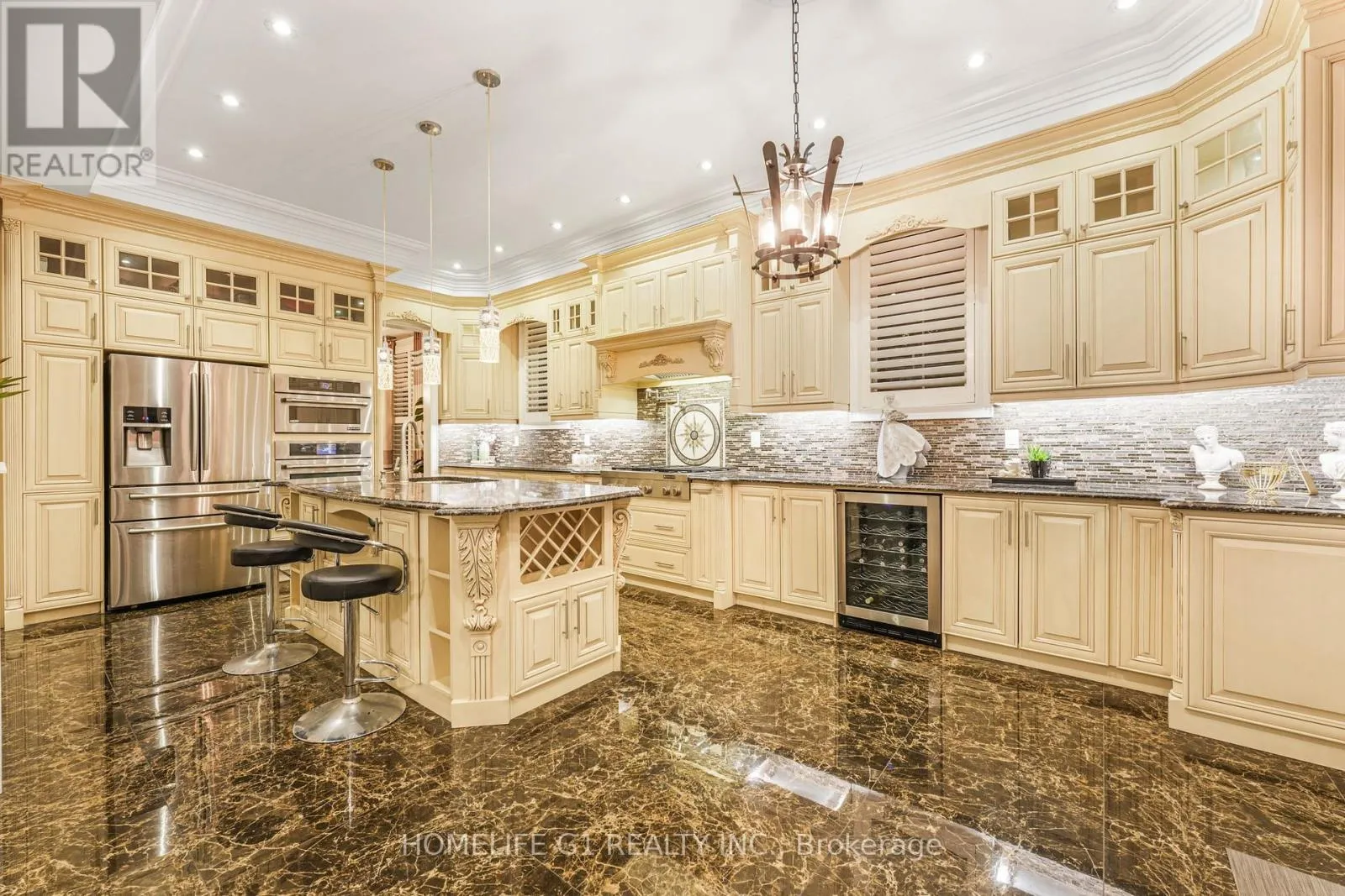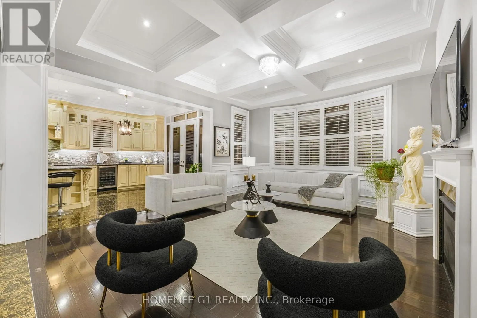 Ninth Line/Reeves Way Welcome to this extraordinary executive home, perfectly situated on a premium cul-de-sac in the Prairewood enclave built by Sorbara. Offering 5,200 sq. ft. of exquisitely finished living space, this residence blends timeless elegance with thoughtful upgrades, creating the perfect setting for both comfortable family living and effortless entertaining. The exterior makes a striking first impression with a professionally manicured lawn, upgraded porch, interlocking stone driveway and walkway, and a full 6-zone in-ground sprinkler system** that keeps the property lush and green. Inside, the main floor boasts smooth ceilings throughout and an impressive 10-foot coffered ceiling, creating an open and airy feel. A dedicated office/library with a powder room offers a quiet space for work or study. The chef-inspired kitchen is a true showpiece, featuring crown moldings, upgraded cabinetry, a 6-burner gas cooktop with marble backsplash and pot filler, Jenn-Air built-in appliances (microwave, oven, dishwasher), a wine cellar, and a large island perfect for gatherings and entertaining. Upstairs, youll find 9-foot ceilings, five generously sized bedrooms, and three beautifully designed bathrooms, including a luxurious primary suite. The finished basement with 9-foot ceilings is an entertainers dream, complete with two additional rooms, a full bathroom, a second full kitchen, and a built-in theatre system perfect for hosting guests or creating a private retreat for extended family. Outdoor living is elevated with a covered deck featuring tile flooring, providing an incredible space to host friends and family. The backyard is professionally landscaped and designed to impress. Additional highlights include California shutters throughout, a 2-car garage, 51-foot frontage, and end-of-street privacy a rare combination that delivers both curb appeal and tranquility. This exceptional home truly has it all. You have to see this property to appreciate everything it offers! (id:27476)