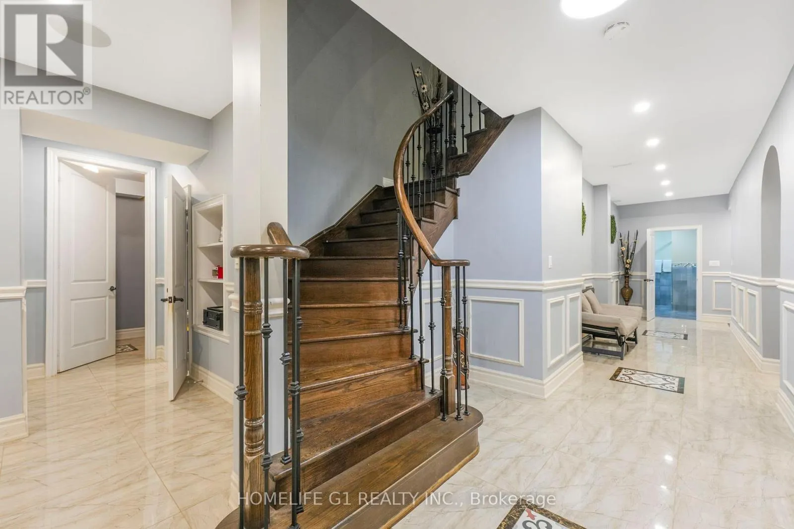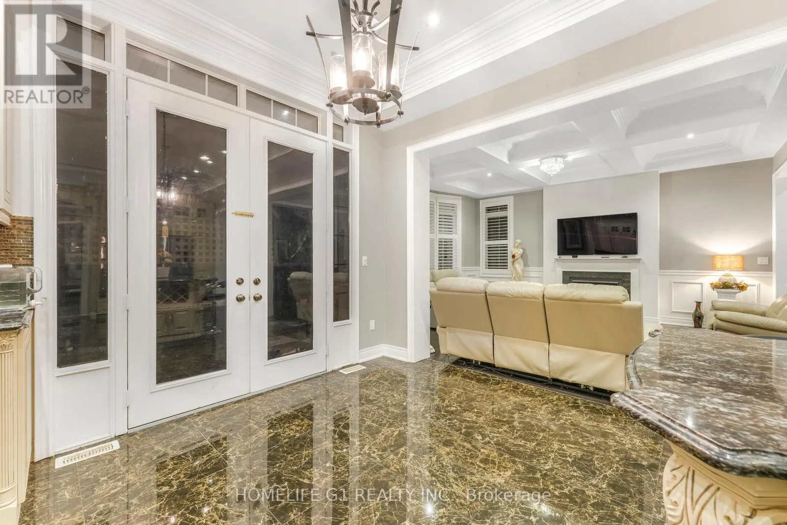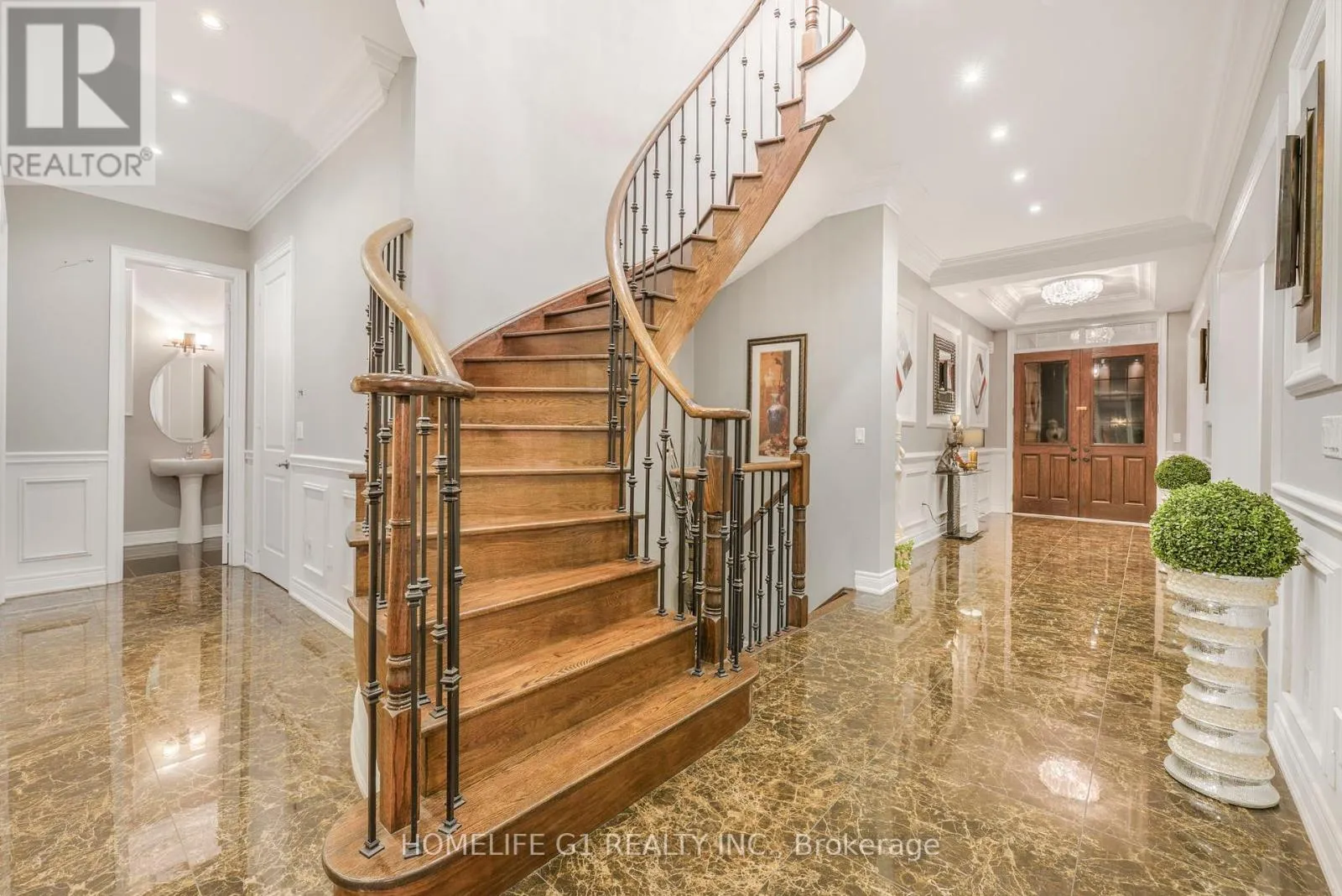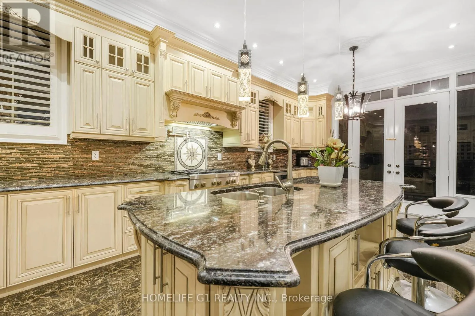 Ninth Line/Reeves Way Welcome to this extraordinary executive home, perfectly situated on a premium cul-de-sac in the Prairewood enclave built by Sorbara. Offering 5,200 sq. ft. of exquisitely finished living space, this residence blends timeless elegance with thoughtful upgrades, creating the perfect setting for both comfortable family living and effortless entertaining. The exterior makes a striking first impression with a professionally manicured lawn, upgraded porch, interlocking stone driveway and walkway, and a full 6-zone in-ground sprinkler system** that keeps the property lush and green. Inside, the main floor boasts smooth ceilings throughout and an impressive 10-foot coffered ceiling, creating an open and airy feel. A dedicated office/library with a powder room offers a quiet space for work or study. The chef-inspired kitchen is a true showpiece, featuring crown moldings, upgraded cabinetry, a 6-burner gas cooktop with marble backsplash and pot filler, Jenn-Air built-in appliances (microwave, oven, dishwasher), a wine cellar, and a large island perfect for gatherings and entertaining. Upstairs, youll find 9-foot ceilings, five generously sized bedrooms, and three beautifully designed bathrooms, including a luxurious primary suite. The finished basement with 9-foot ceilings is an entertainers dream, complete with two additional rooms, a full bathroom, a second full kitchen, and a built-in theatre system perfect for hosting guests or creating a private retreat for extended family. Outdoor living is elevated with a covered deck featuring tile flooring, providing an incredible space to host friends and family. The backyard is professionally landscaped and designed to impress. Additional highlights include California shutters throughout, a 2-car garage, 51-foot frontage, and end-of-street privacy a rare combination that delivers both curb appeal and tranquility. This exceptional home truly has it all. You have to see this property to appreciate everything it offers! (id:27476)