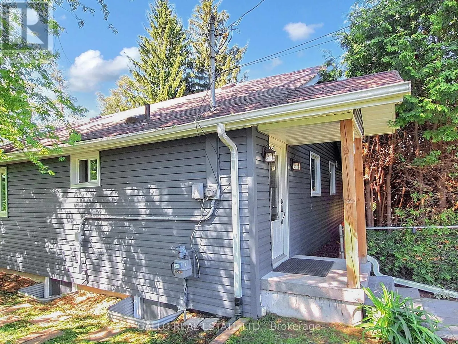 Cross Streets: Ninth Line North/Lakeshore Rd W. & Windsor Dr. ** Directions: Ninth Line north of Bloomington, turn L onto Lakeshore, then merge L onto Windsor. This HIDDEN GEM, situated on a unique L-shaped property has two road frontages! A private 24.77 x80 ft driveway allows for many parking spaces fronting on Windsor Drive. Approx. 100 feet back, the home is situated on a 50ft wide x 90ft rectangular piece of the parcel. The bungalow offers 1800 ft2 of finished living space - 966 on the main floor. Extensive renovations to main floor and a new poured basement circa 2017/18 will impress the buyer! The open concept main floor living room with Brazilian cherry hardwood floor has double French doors to access the spacious 24 x 12 deck to enjoy BBQs and 'porch sitting' with distant views. A manicured grassy yard with fire pit, planter box, and retaining wall fencing for children to play! Under deck storage also a plus. Beyond the fence is a sloping area which has had a new 3300 gallon concrete septic holding tank installed near the Valley Rd. frontage and area has been grass-seeded. Back inside, the primary bedroom's large bay window has a window seat/plant area, and at the opposite end is a spacious mirrored wall-to-wall closet. Look for the dark red sliding entry "barn" door! The main 3-pc. bath has been ungraded as well. The dining room is open concept and blends into the foyer, and the crowning highlight - a gorgeous chef's kitchen that will immediately attract buyers with stainless steel appliances. A faux soapstone/ concrete counter ends in a peninsula with room for stools for casual meals while chatting with the "chef"! A hidden staircase with removable railing leads from the wood-planked windowed wall to the large recreation/flex room, another 2 bedrooms , a pristine 4 pc. bath, and a convenient laundry room with utility hook-ups well-labelled. Another added benefit to this bungalow is the privacy factor with the surrounding hedges and the western and eastern mature tree line. The elevated view to the south from the deck only enhances the reasons to buy this commuter's choice for PRIVACY, PARKING, AND PI (id:27476)