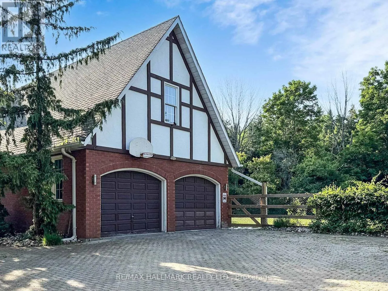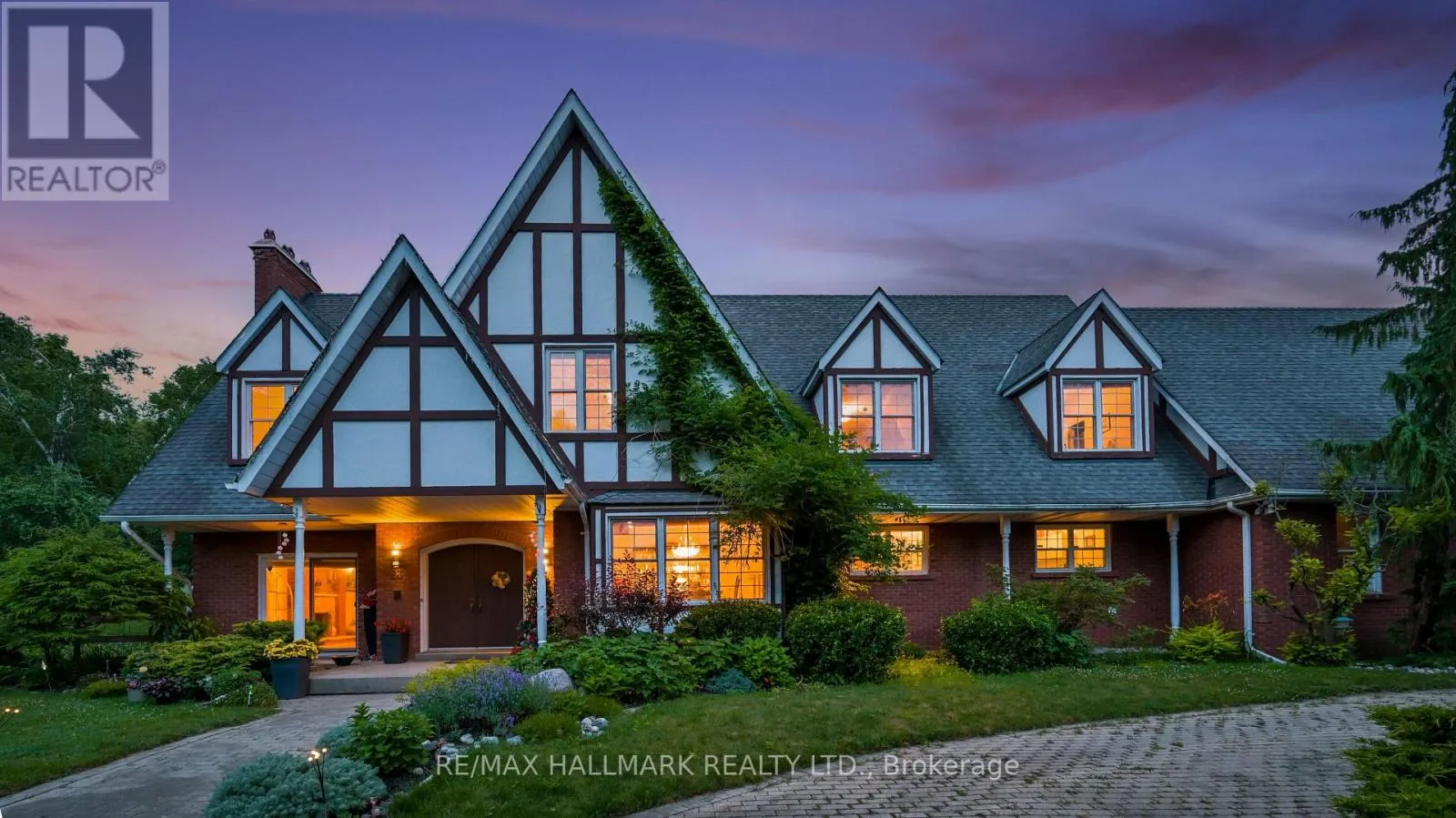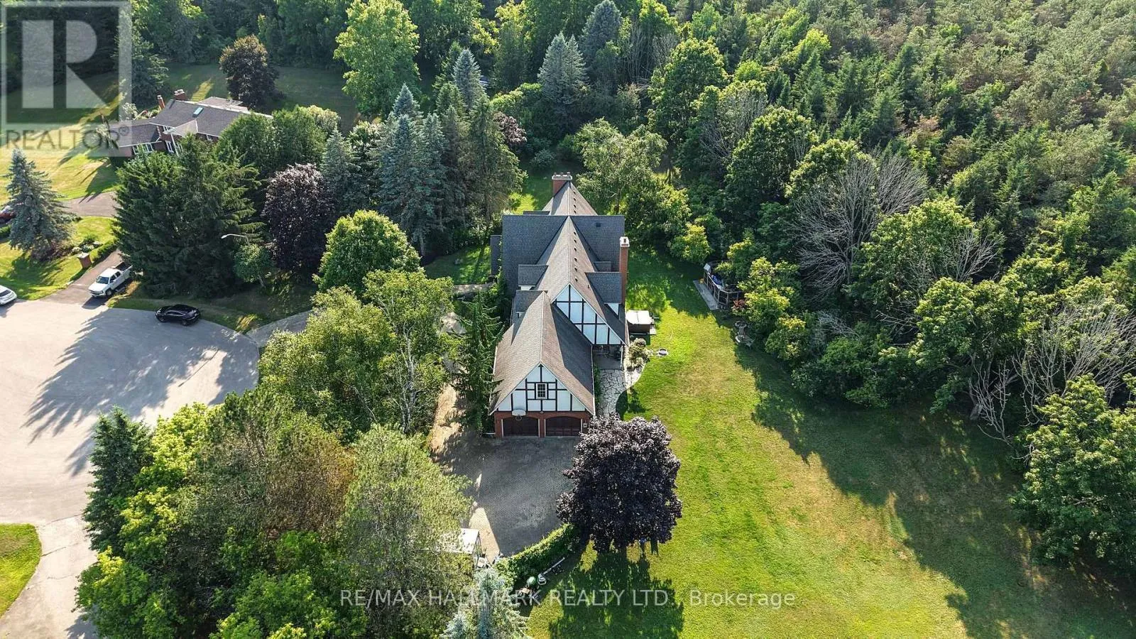 Aurora Road & Ninth Line The Best of Both Worlds Serene Country Living Just Minutes from the City. This immaculate Tudor-style estate sits on a fully fenced 1.46-acre pie-shaped lot backing onto protected evergreens offering complete privacy, picturesque forest views, and over 6,200 sq ft of beautifully finished living space (3,936 sq ft above grade + 2,200 sq ft lower level) * Tucked away on a quiet cul-de-sac along prestigious Forfardale Road, and surrounded by multi-million dollar estates, this architectural masterpiece showcases timeless curb appeal, an elegant facade, and mature landscaping *The interlock circular driveway and expansive flower beds create an unforgettable first impression *Inside, gleaming hardwood floors throughout *Spacious formal living room with fireplace, separate dining room, and a spectacular great room with walk-out access and a custom wet bar make this home an entertainers dream *2 staircases total, one is a Custom spiral private staircase, the layout leads to a truly luxurious primary suite upstairs complete with vaulted and beamed ceilings and a cozy sitting lounge retreat *the finished basement making it ideal for an in-law suite, home office, gym, or teenagers private space *Located in a prestigious estate enclave walk to scenic Musselman's Lake & Ballantrae, Stouffville amenities, minutes drive to Hwy 404 & 48, Old Elm Go Station, 60 minutes to Toronto! (id:27476)
