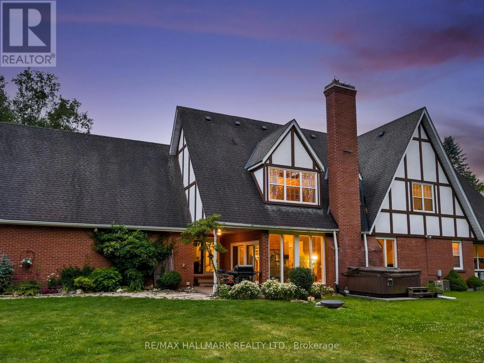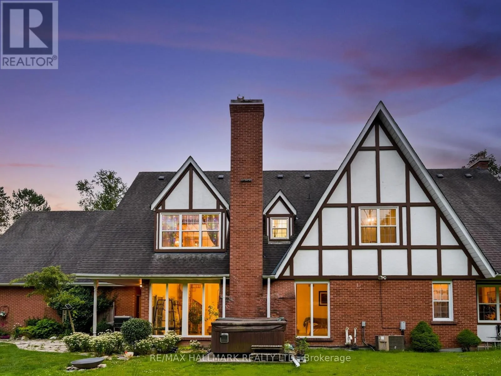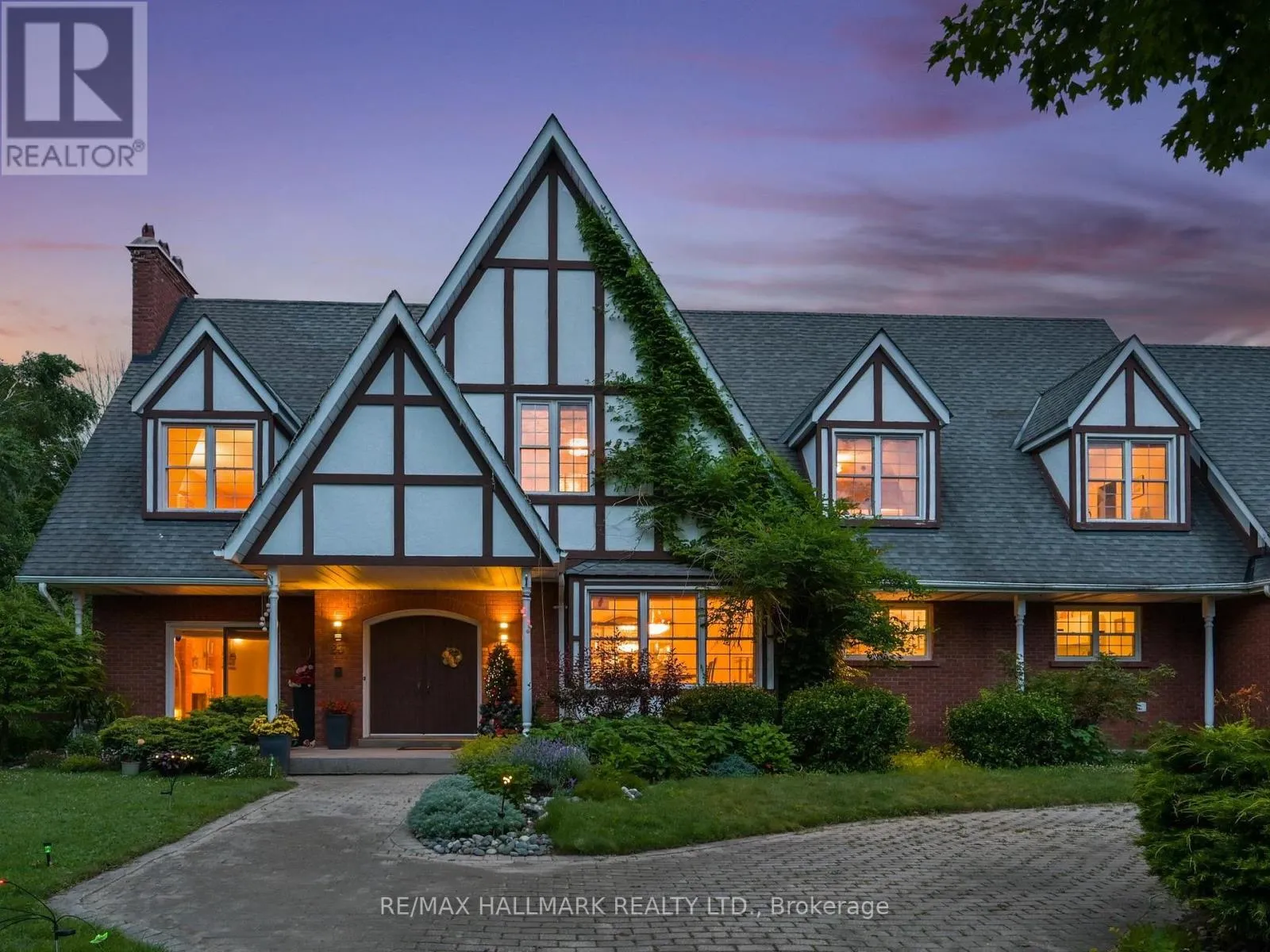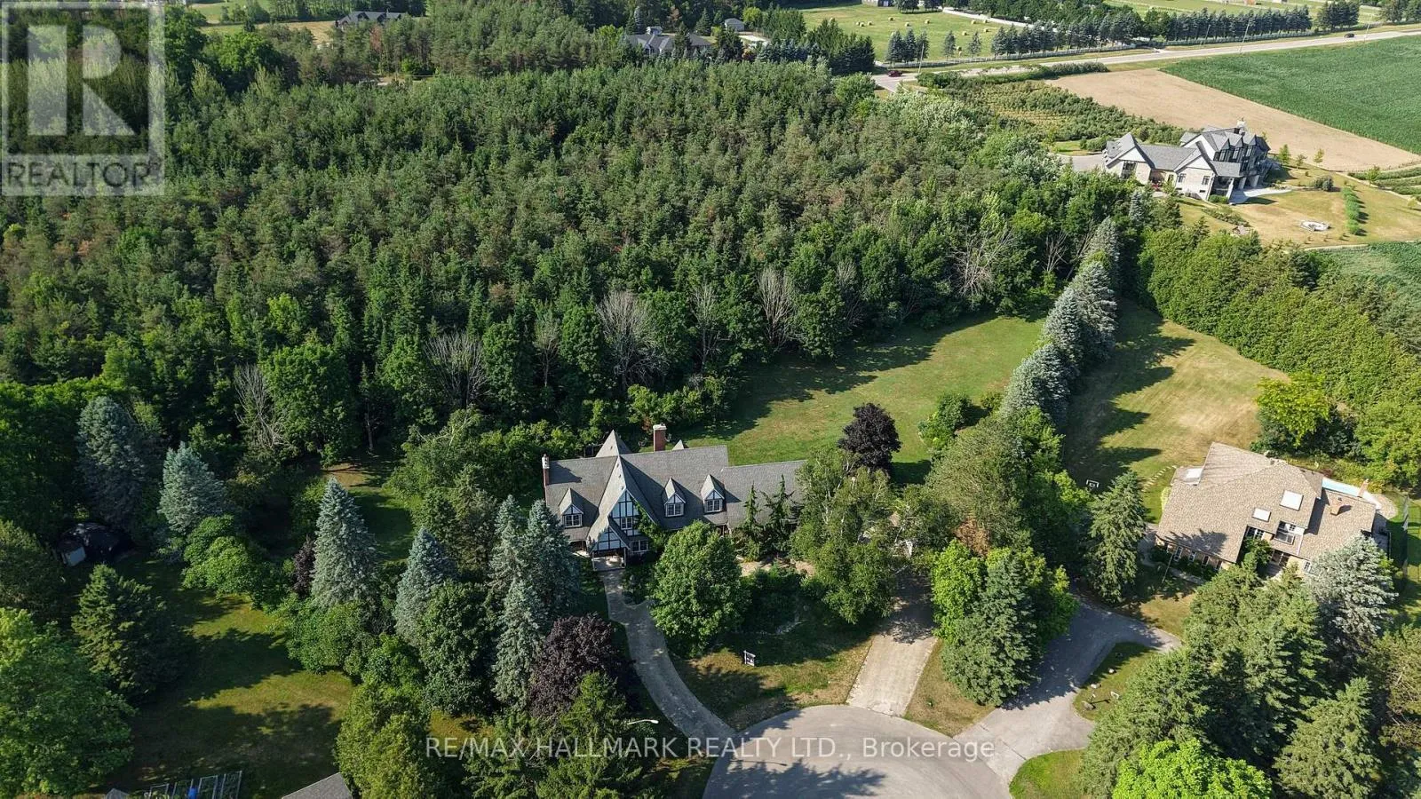 Aurora Road & Ninth Line The Best of Both Worlds Serene Country Living Just Minutes from the City. This immaculate Tudor-style estate sits on a fully fenced 1.46-acre pie-shaped lot backing onto protected evergreens offering complete privacy, picturesque forest views, and over 6,200 sq ft of beautifully finished living space (3,936 sq ft above grade + 2,200 sq ft lower level) * Tucked away on a quiet cul-de-sac along prestigious Forfardale Road, and surrounded by multi-million dollar estates, this architectural masterpiece showcases timeless curb appeal, an elegant facade, and mature landscaping *The interlock circular driveway and expansive flower beds create an unforgettable first impression *Inside, gleaming hardwood floors throughout *Spacious formal living room with fireplace, separate dining room, and a spectacular great room with walk-out access and a custom wet bar make this home an entertainers dream *2 staircases total, one is a Custom spiral private staircase, the layout leads to a truly luxurious primary suite upstairs complete with vaulted and beamed ceilings and a cozy sitting lounge retreat *the finished basement making it ideal for an in-law suite, home office, gym, or teenagers private space *Located in a prestigious estate enclave walk to scenic Musselman's Lake & Ballantrae, Stouffville amenities, minutes drive to Hwy 404 & 48, Old Elm Go Station, 60 minutes to Toronto! (id:27476)
