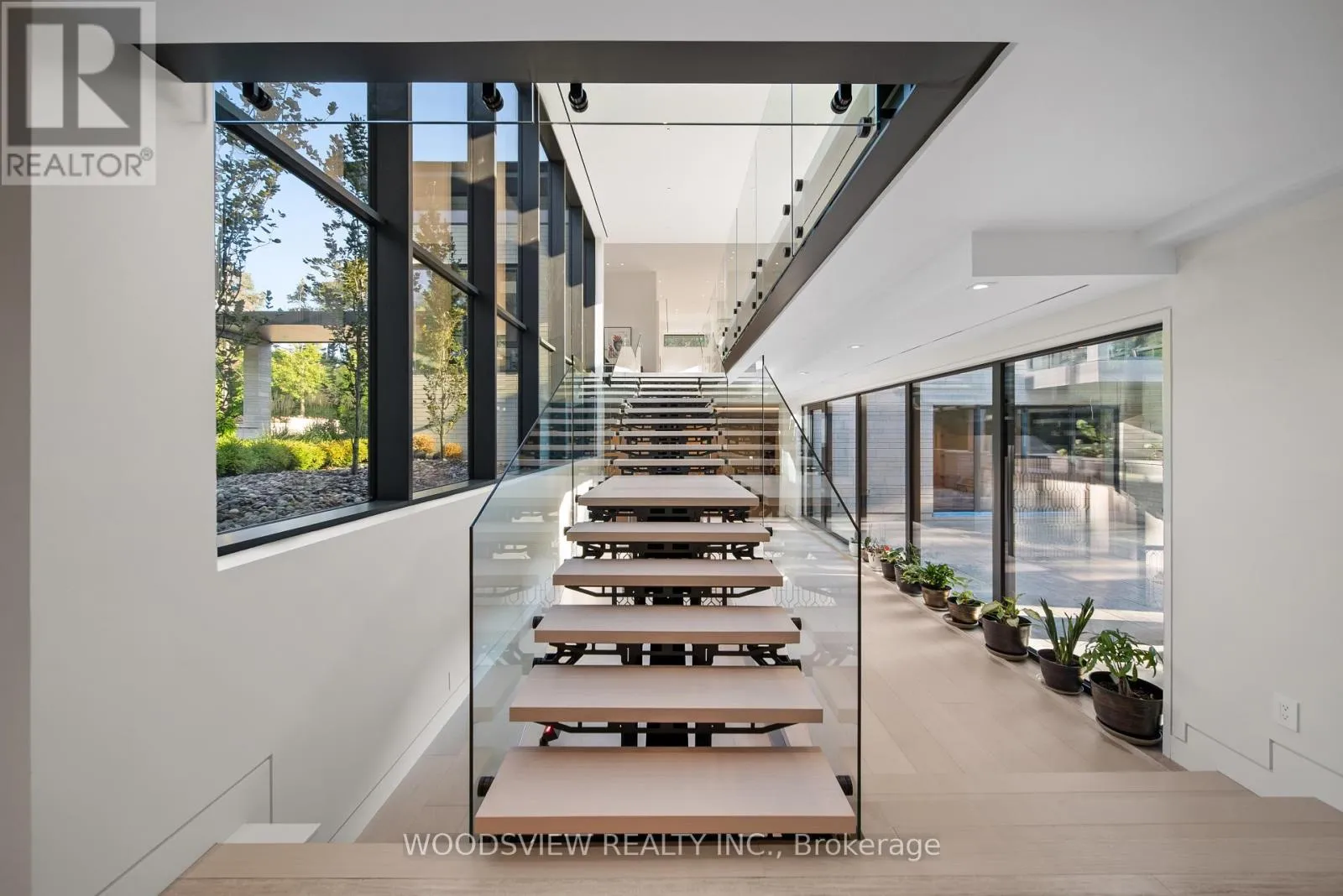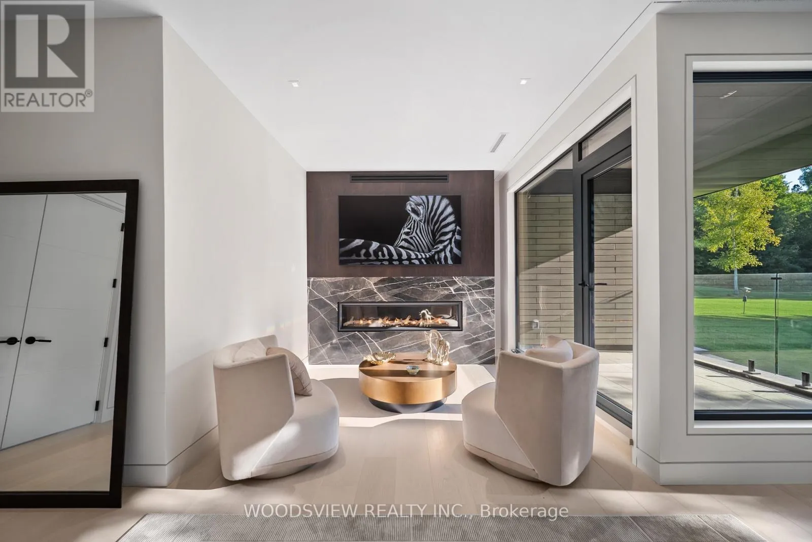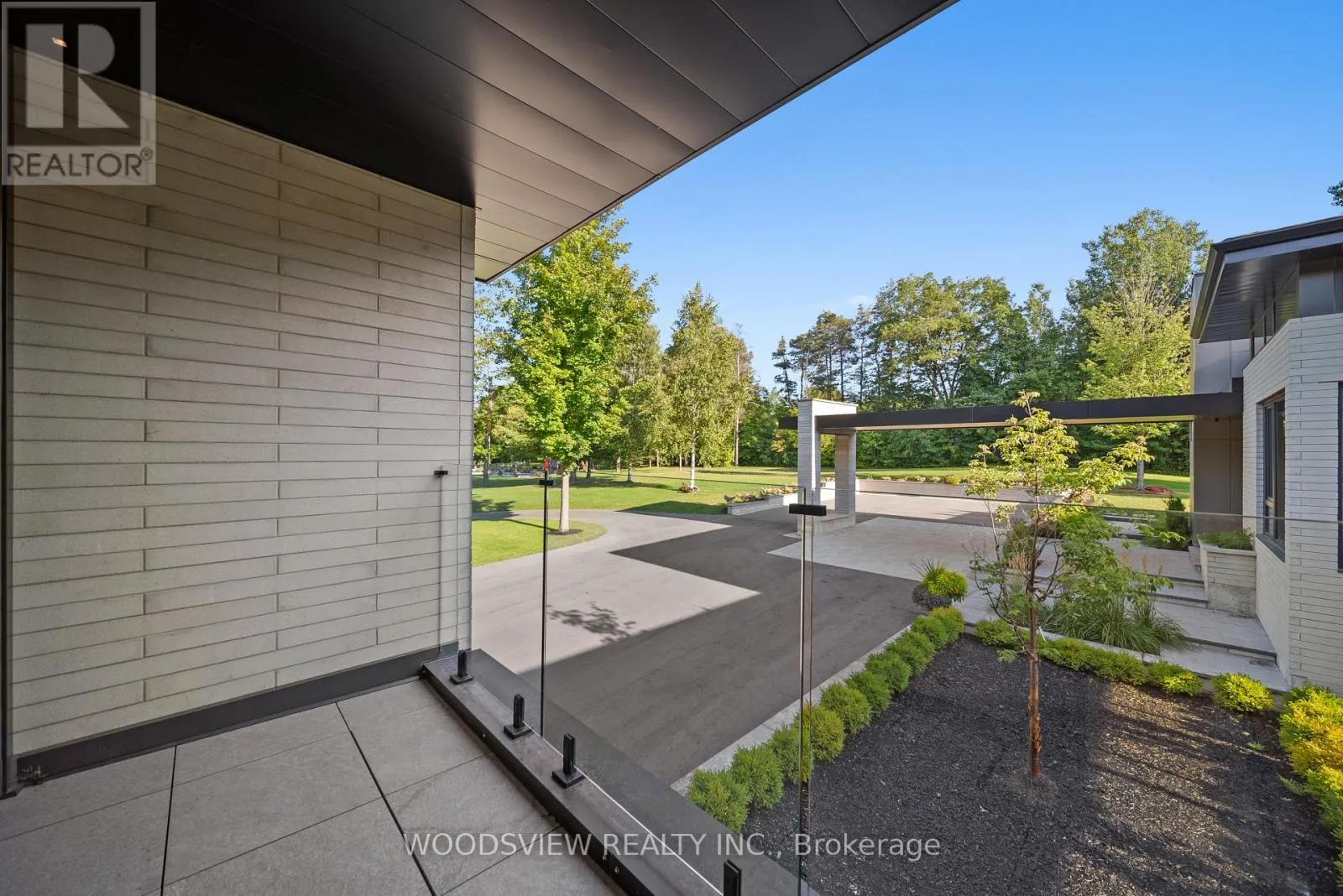 Cross Streets: York Durham Line & Aurora Road. ** Directions: From Aurora Road, Turn Left On Durham 30. 3rd driveway on the Left, just before the Hill. Step into your private oasis - where design becomes art and every detail tells a story. Set in one of York Region's most coveted neighbourhoods, this is more than a home - it's a statement. A bold fusion of architecture, elegance, and imagination, crafted to inspire.As you approach, a fully equipped carriage house and rolling landscapes set the tone. The winding drive leads to tranquility - where serenity and design converge in perfect harmony.The striking façade of stone and aluminum, and the weight of a solid door, opens to a grand interior of heated floors, bespoke millwork, and formal rooms that blend timeless elegance and the stillness of a perfectly balanced space. Every surface and finish has been refined to one standard: perfection without pretence. A sunken living room invites intimate connection, anchored by a 13-foot marble fireplace and floor-to-ceiling windows frame sweeping panoramic views, flooding the rooms with natural light.The kitchen, equipped with a full Miele suite, centres around a handcrafted brass-accented hood - a symbol of quiet strength and precision. The home's rhythm flows effortlessly: private yet open, contemporary yet warm. Its 30-foot floating skeleton staircase - a one-of-one architectural sculpture - connects every level with breathtaking grace.The primary retreat is a sanctuary of calm, featuring a fireplace and gallery-style walk-in closet with custom millwork. The lower level, accessible by private elevator, is devoted to leisure - complete with a bar, media room, climate-controlled wine cellar, fitness studio, and guest suite. Outdoors, an expansive covered terrace with integrated sound overlooks eight acres of sculpted landscape framed by towering trees and complete privacy. This is more than a home; it is a living showcase of achievement, a reflection of everything you've built and everything you've become (id:27476)