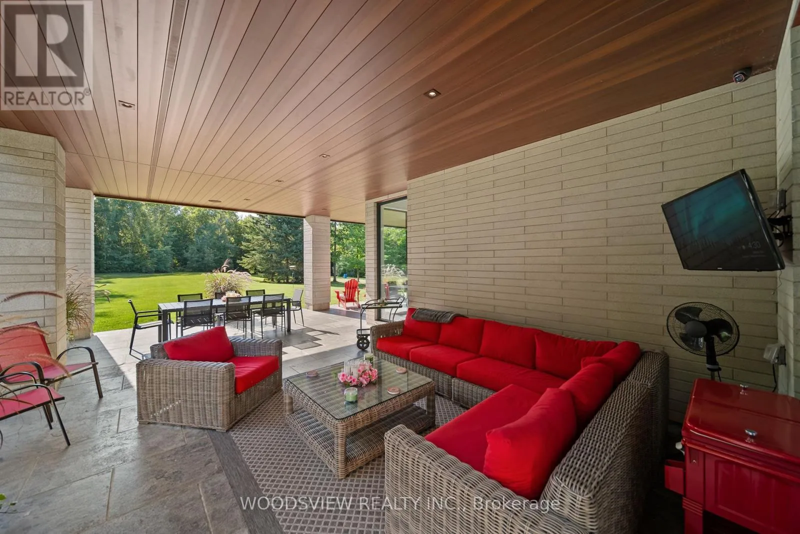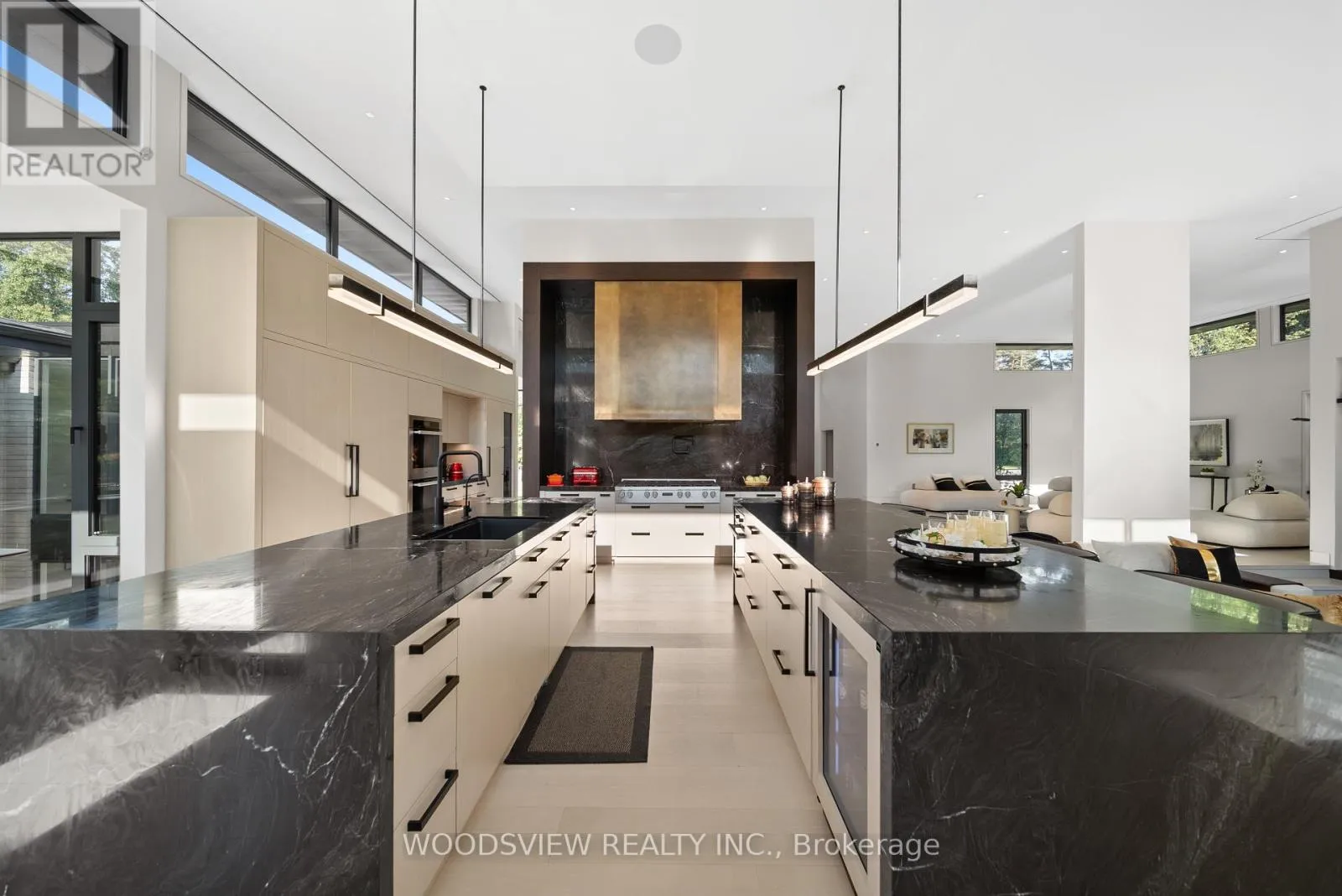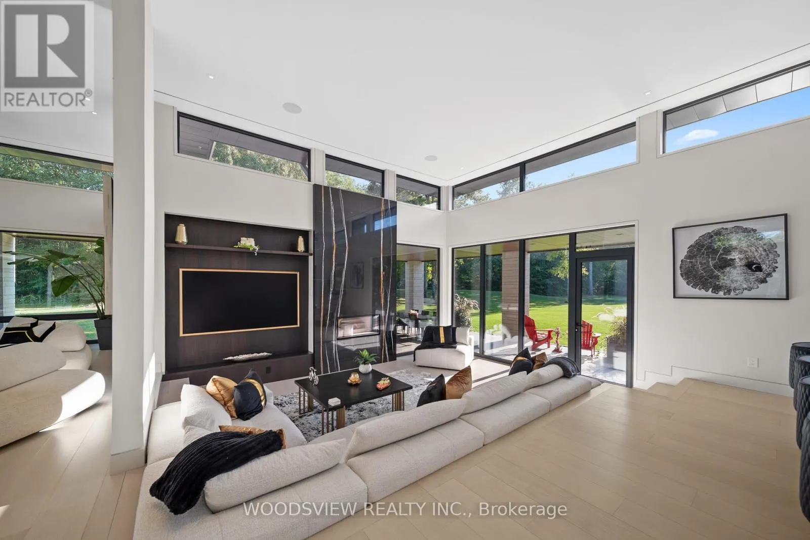 Cross Streets: York Durham Line & Aurora Road. ** Directions: From Aurora Road, Turn Left On Durham 30. 3rd driveway on the Left, just before the Hill. Step into your private oasis - where design becomes art and every detail tells a story. Set in one of York Region's most coveted neighbourhoods, this is more than a home - it's a statement. A bold fusion of architecture, elegance, and imagination, crafted to inspire.As you approach, a fully equipped carriage house and rolling landscapes set the tone. The winding drive leads to tranquility - where serenity and design converge in perfect harmony.The striking façade of stone and aluminum, and the weight of a solid door, opens to a grand interior of heated floors, bespoke millwork, and formal rooms that blend timeless elegance and the stillness of a perfectly balanced space. Every surface and finish has been refined to one standard: perfection without pretence. A sunken living room invites intimate connection, anchored by a 13-foot marble fireplace and floor-to-ceiling windows frame sweeping panoramic views, flooding the rooms with natural light.The kitchen, equipped with a full Miele suite, centres around a handcrafted brass-accented hood - a symbol of quiet strength and precision. The home's rhythm flows effortlessly: private yet open, contemporary yet warm. Its 30-foot floating skeleton staircase - a one-of-one architectural sculpture - connects every level with breathtaking grace.The primary retreat is a sanctuary of calm, featuring a fireplace and gallery-style walk-in closet with custom millwork. The lower level, accessible by private elevator, is devoted to leisure - complete with a bar, media room, climate-controlled wine cellar, fitness studio, and guest suite. Outdoors, an expansive covered terrace with integrated sound overlooks eight acres of sculpted landscape framed by towering trees and complete privacy. This is more than a home; it is a living showcase of achievement, a reflection of everything you've built and everything you've become (id:27476)