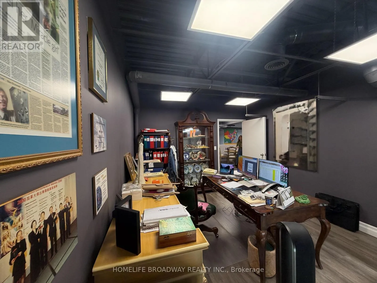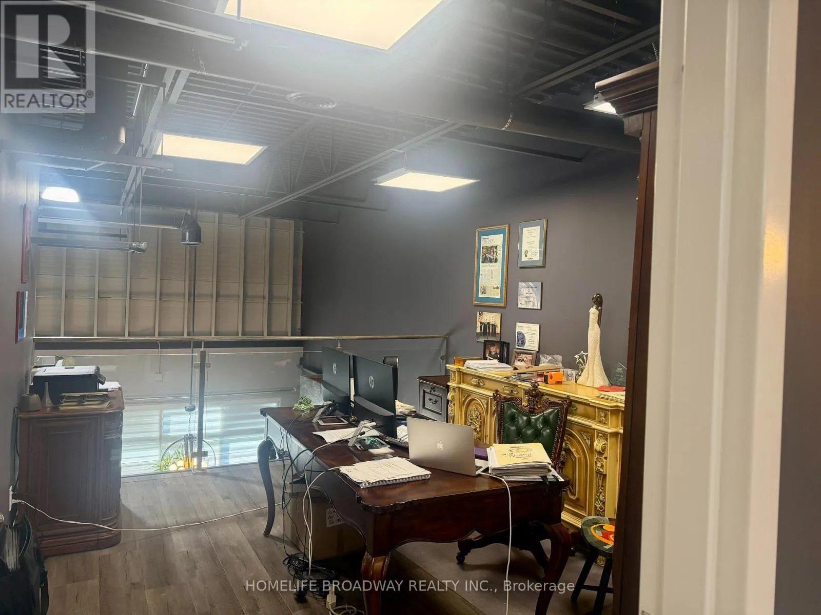 Cross Streets: Markham Rd & Main St Stouffville. ** Directions: North of Innovator Ave. Demanding location, luxuriously finished, move in ready, commercial condominium complex conveniently located in business park area in the heart of Stouffville (Markham Road and Main Street) with ample parking on site. 1500sf of tastefully decorated office with mezzanine floor finished as a self contained suite with 1 reception area, 1 common area, 1 meeting room, 4 offices, 1 pantry, 2 washrooms . 506sf of warehouse space 18ft high ceiling with back door and drive in loading dock, Ideal for showroom, studio, institution, corporate office, professional office etc. (id:27476)
