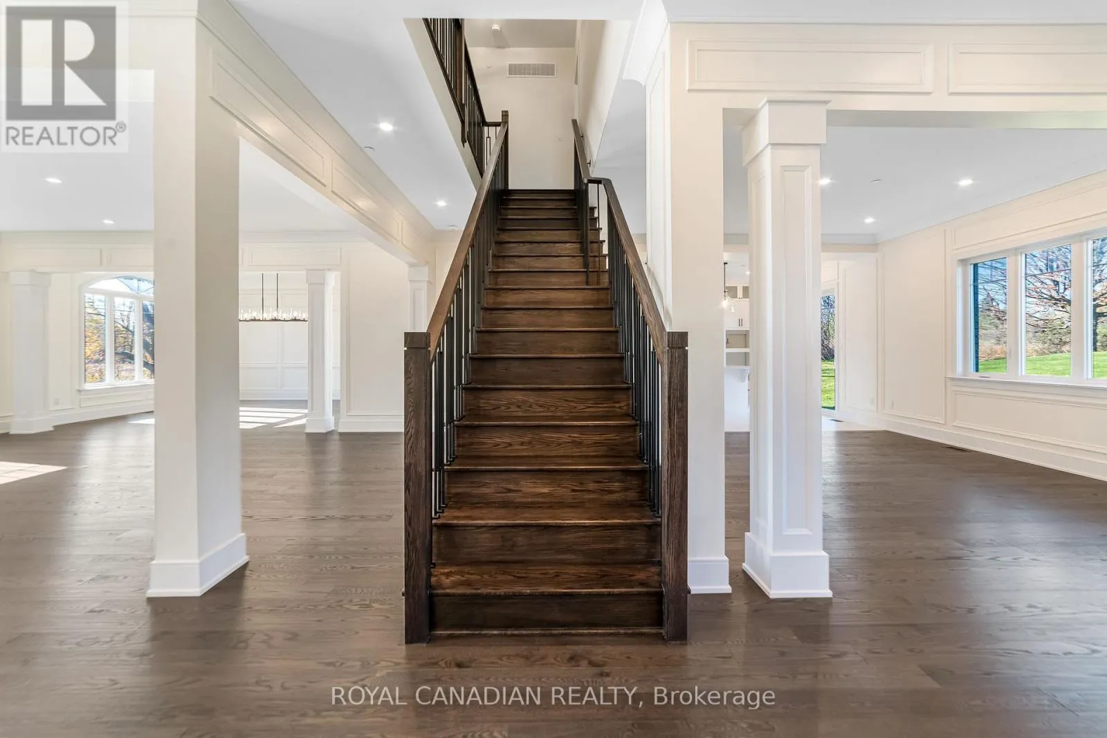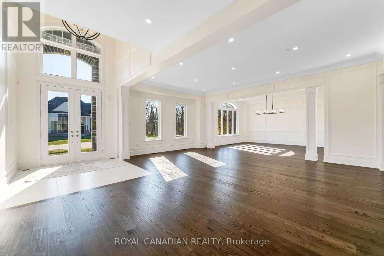 Cross Streets: Boomington Rd /Ninth Line. ** Directions: From Bloomington, South on Green Gables Cres, West on Maxson Lane. Welcome to 50 Maxson Lane, an exceptional 2024-built luxury estate in one of Stouffville's most prestigious enclaves. Situated on a premium lot, just under one acre, this stunning home offers over 5,000 sq. ft. of living space with 6 bedrooms and 6 full washrooms, including a main-floor bedroom with ensuite-perfect for guests or multi-generational living. The grand open-to-above foyer is highlighted by stunning chandeliers, designer light fixtures, modern pot lights, and 10-foot ceilings on the main floor that create a sense of grandeur throughout. The second level features 9-foot ceilings, adding to the home's spacious and airy feel. Professionally decorated interiors showcase elegant wainscoting, custom crown moldings, and refined finishes in every corner. The property also includes a whole-house fire suppression system for enhanced safety and peace of mind. Nestled on a quiet cul-de-sac and siding onto a wooded lot, it offers exceptional privacy, low traffic, and a serene, child-friendly environment-a perfect fusion of luxury, comfort, and security. (id:27476)