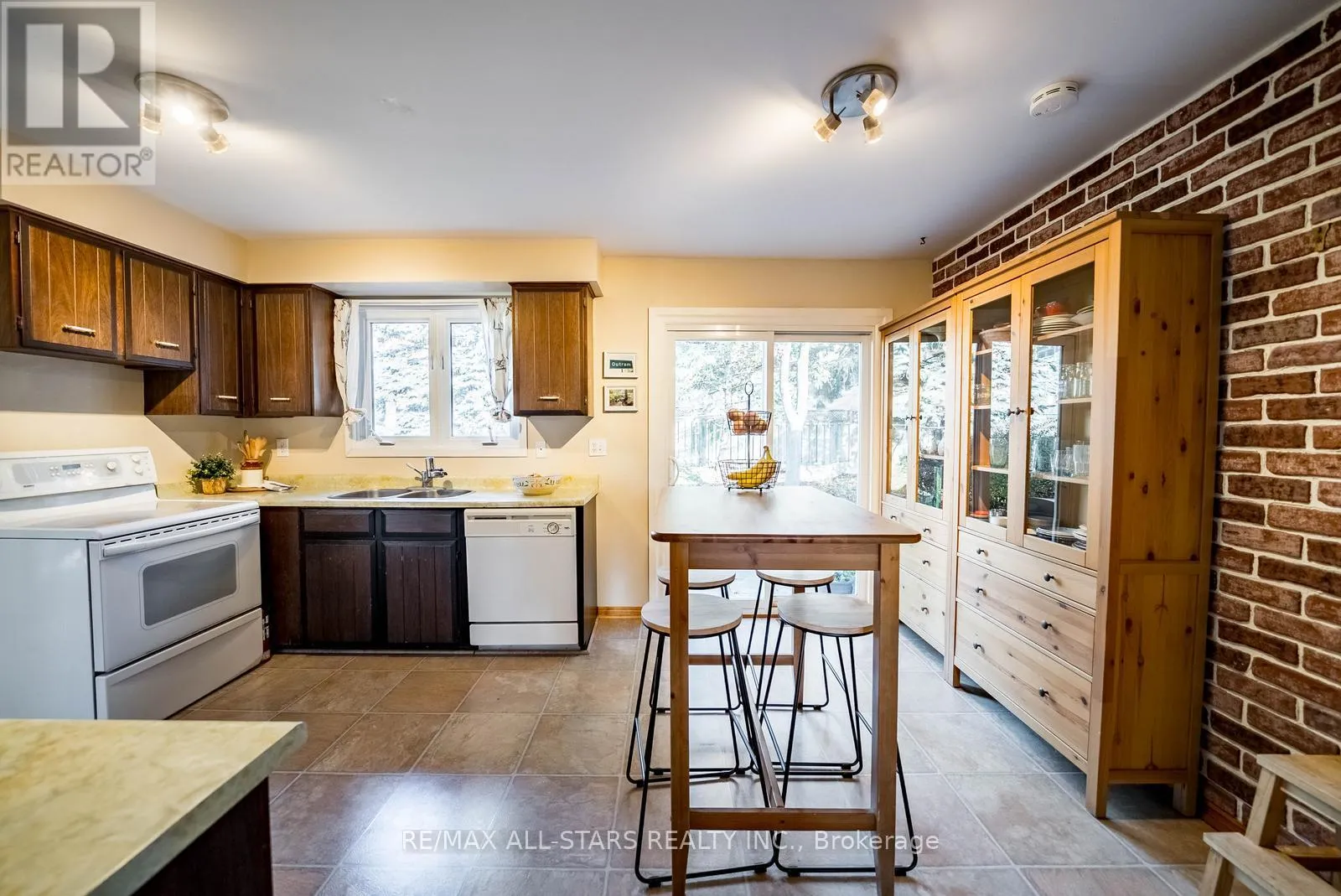 Cross Streets: Main St/Stouffer St. ** Directions: Follow Google or Apple Maps. Discover a home filled with charm, space, and personality in this well maintained 3-bedroom, 2-bath side split. Perfectly situated on a pie shaped lot, there's room to entertain, garden, or simply relax and enjoy the privacy created by mature trees. Inside, natural light pours through large windows, brightening the spacious living and dining rooms. The flow between spaces makes entertaining easy while maintaining that cozy, welcoming feel. The kitchen offers a classic design with plenty of cabinet and counter space, along with a breakfast nook overlooking the backyard - ideal for casual meals and conversation. The upper level features three well sized bedrooms and a 4-piece bathroom. The primary overlooks the backyard, providing a restful space to retreat at the end of the day. On the lower level, a warm and inviting family room awaits - complete with a beautiful brick fireplace, pot lights, and above-grade windows that enhance the airy feel throughout. The unique rock-climbing wall adds a playful touch, while the full bathroom on this level offers added functionality for busy households. The basement extends the living space even further with plenty of room for a home gym, creative studio, or recreation area, plus a dedicated laundry and utility area to keep things organized. **Added bonus are the solar panels to help you save money monthly** (id:27476)