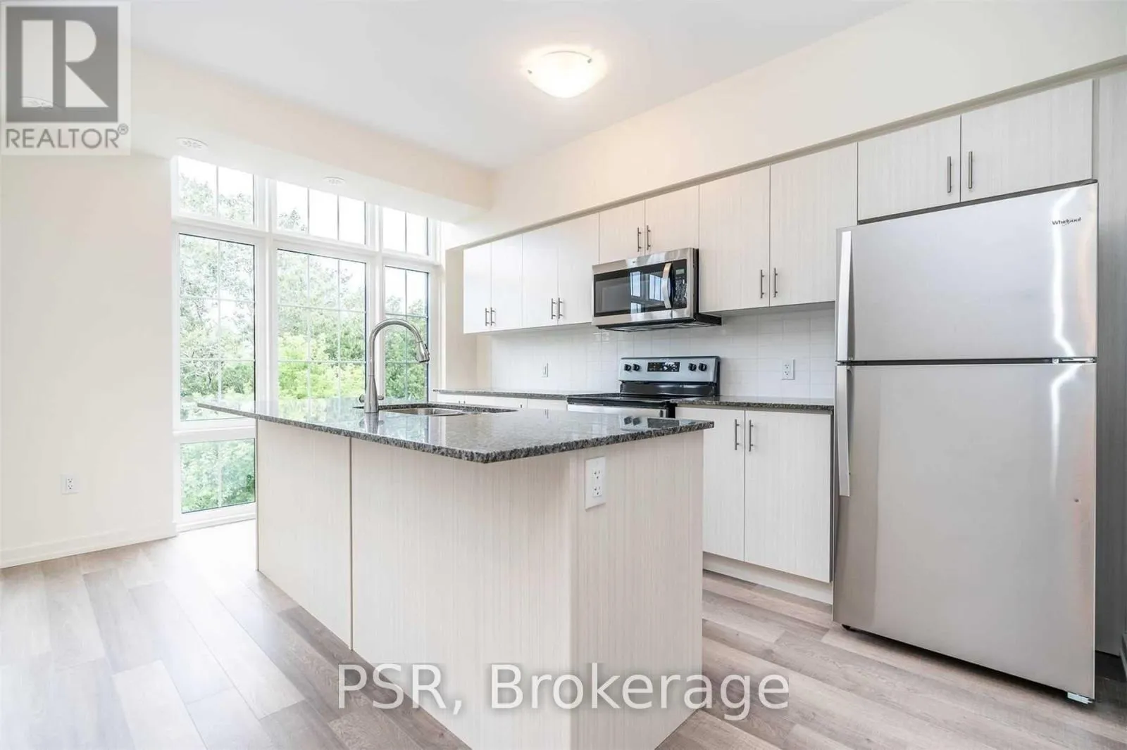 Baker Hill Blvd & Millard St A true showstopper at Vista Flats! Experience contemporary living at its finest in this beautifully maintained Stouffville condo townhome overlooking a tranquil forest and ravine. The sought-after Bristol model offers approximately 1,190 sq. ft. of bright, open-concept living with floor-to-ceiling windows that fill the space with natural light. The stylish 2-bedroom, 2-bathroom layout features a spacious modern kitchen with a large centre island, stainless-steel appliances, and ample storage - perfect for cooking or entertaining. The main living area opens to a private balcony with serene green views. Upstairs, enjoy the ultimate outdoor retreat with a massive 19'2" x 14' rooftop terrace, ideal for lounging, dining, or hosting friends under the stars. Additional conveniences include underground parking and a storage locker, offering both comfort and functionality. Freshly painted, professionally deep cleaned, and move-in ready - just unpack and enjoy! Located moments from Stouffville's vibrant amenities, shops, restaurants, parks, and transit. A perfect blend of urban convenience and natural beauty awaits! (id:27476)