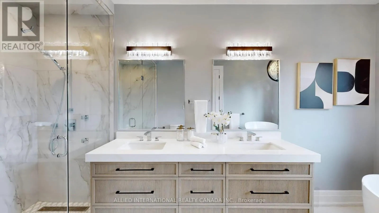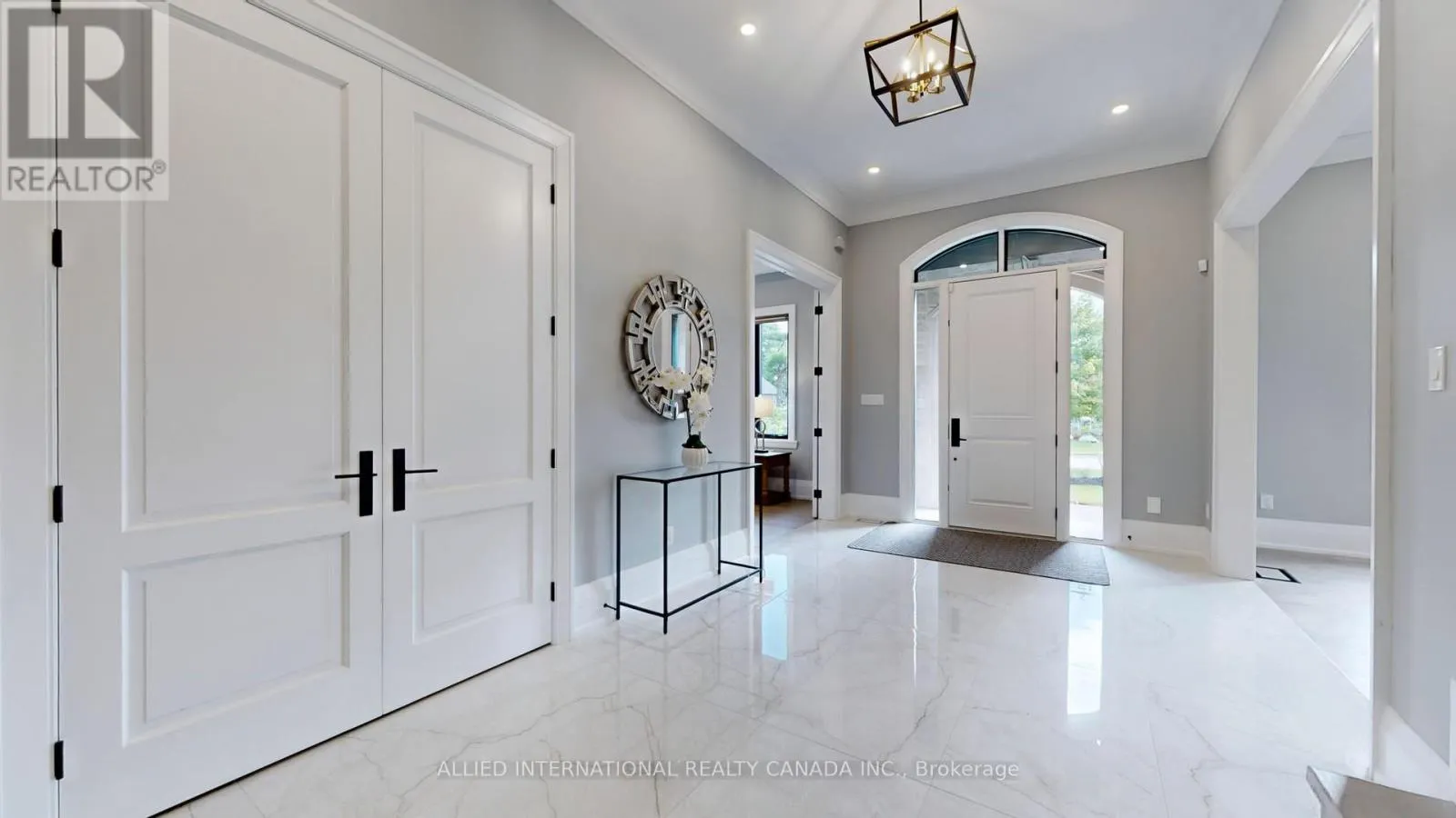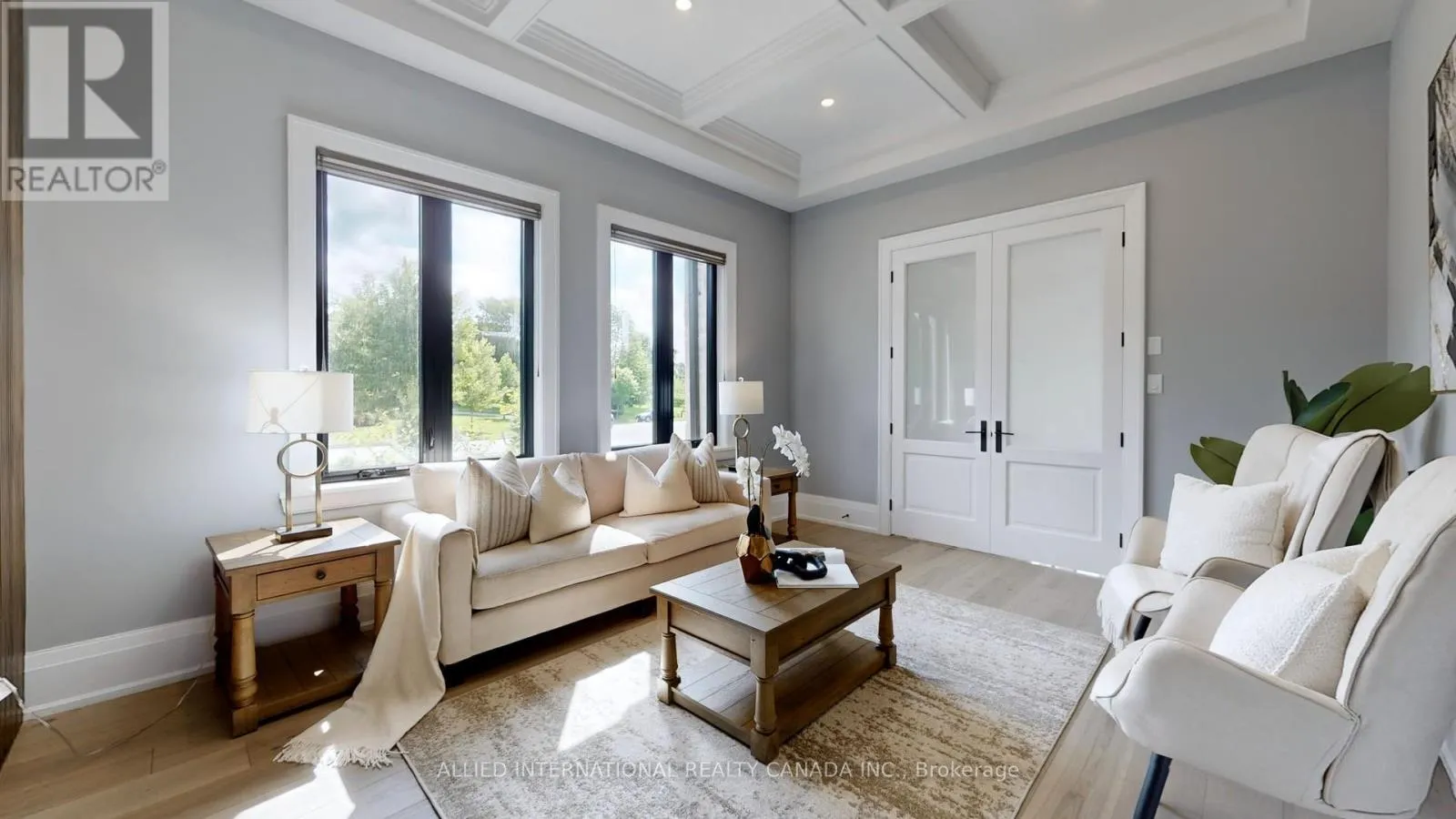 Cross Streets: McCowan Rd/ Bloomington Sideroad. ** Directions: McCowan Rd and Bloomington Rd. Welcome home to this stunning Executive estate! Spanning 4,926 square feet of sheer luxury, this home is meticulously handcrafted with curated, high-end materials true masterpiece nestled on a sprawling 1.75-acre lot. Enjoy unparalleled privacy and serenity.A charming circular driveway leads to the grand entrance, showcasing the home's timeless architectural style. The exterior blends robust stone, brick, and high-end materials, featuring huge windows that flood the interiors with natural light and offer breathtaking views. Inside, the grand foyer boasts soaring ceilings and elegant finishes: rich marble flooring, stunning custom millwork, and designer lighting. The open-concept main level flows seamlessly into the chef's state-of-the-art gourmet kitchen, complete with top-of-the-line appliances, a grand central island, and bespoke cabinetry. A sun-drenched, cozy breakfast area with floor-to-ceiling windows adjoins the kitchen. The main living room, a statement in comfort, features a welcoming gas fireplace and distinctive waffle ceilings. Large sliding doors open to a fantastic covered outdoor living space-perfect for sophisticated gatherings with sleek glass railings and recessed lighting. Working from home is easy in the dedicated office with custom-built-ins. For guests, the private main-floor suite is a true retreat, offering its own sitting area, a spa-like bathroom with a walk-in shower, and a huge walk-in closet. Upstairs, several spacious bedrooms each boast a private en-suite bathroom and walk-in closet, maximizing comfort and views. This home masterfully blends luxury, function, and natural beauty, creating a true oasis that awaits its new owner. (id:27476)