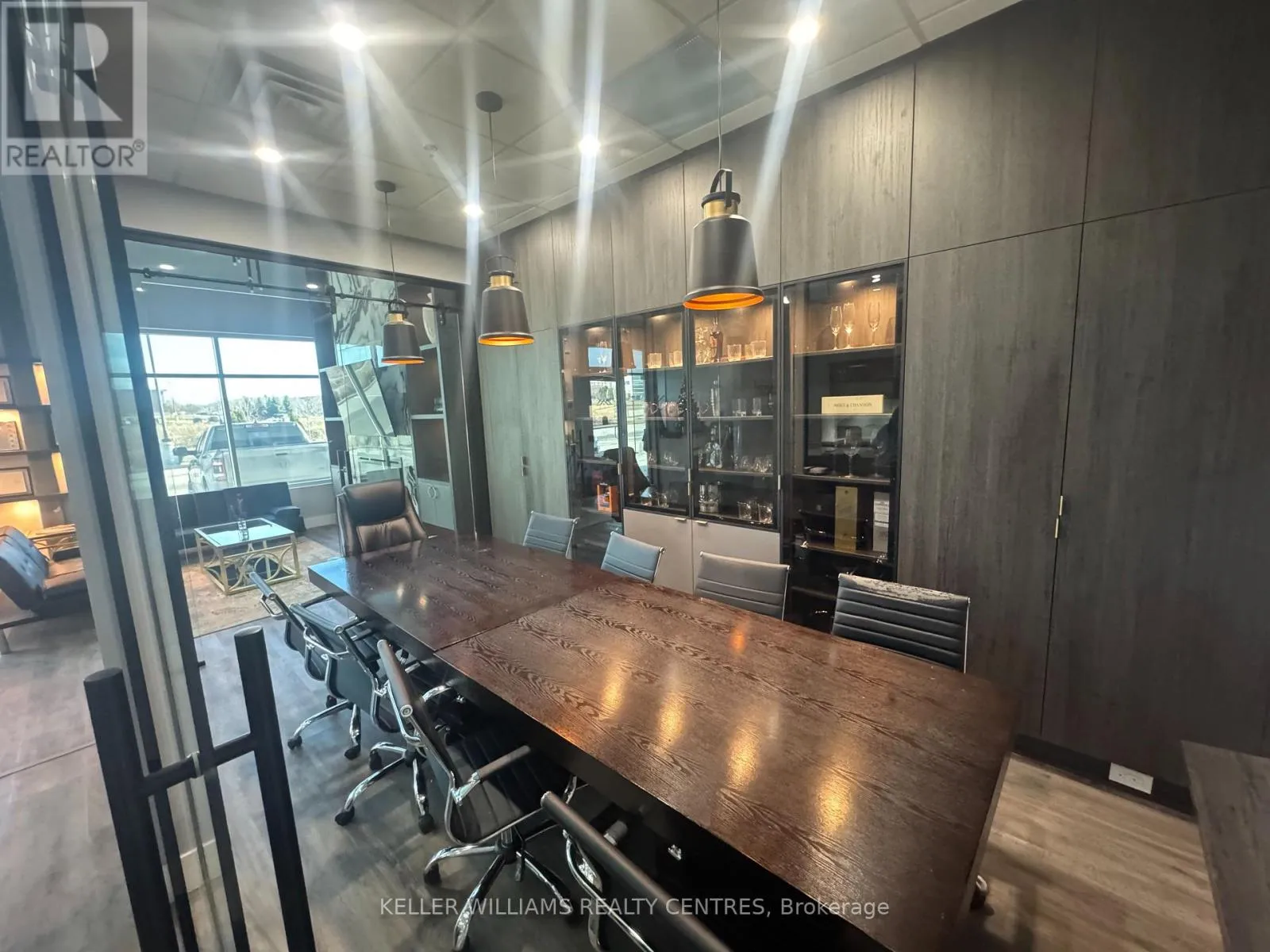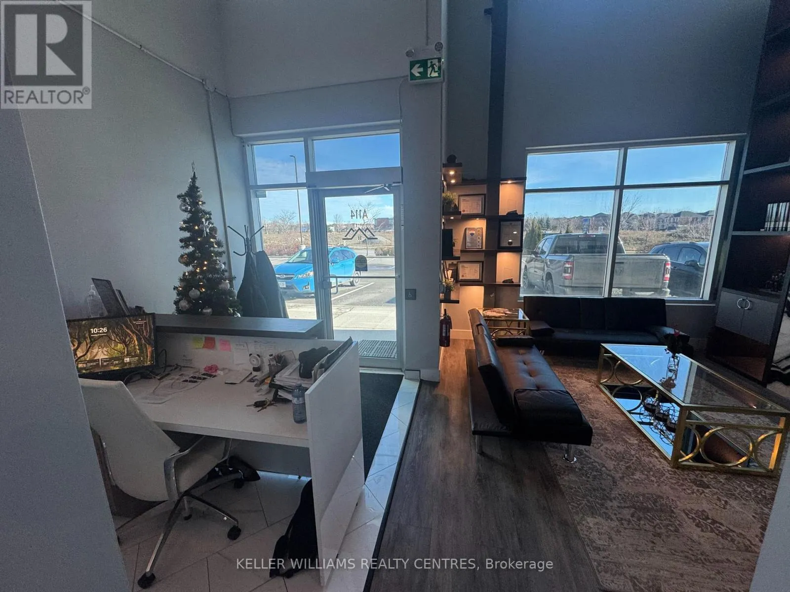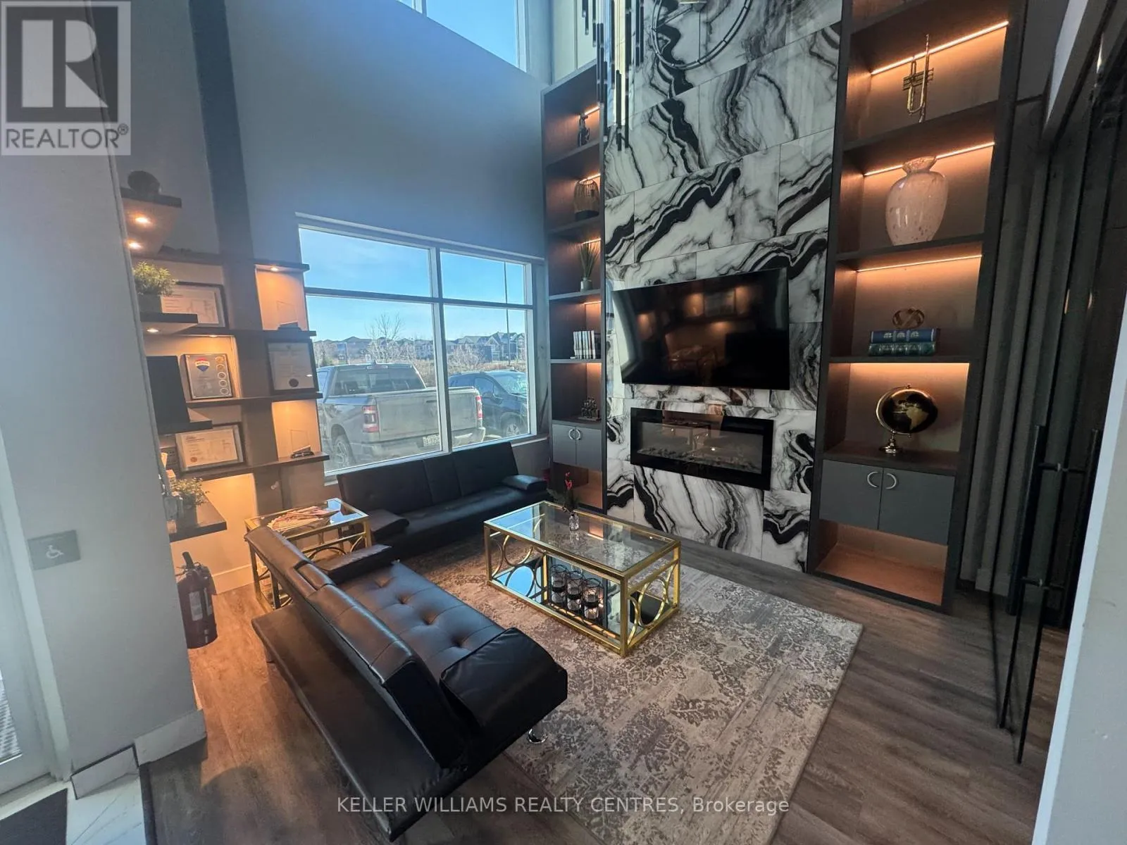 Cross Streets: Hoover Park and Mostar. ** Directions: Head to 200 Mostar St, Stouffville. Enter the main complex and follow signs to Building A. Unit A114 is on the ground floor near the front entrance. Experience a luxury workspace crafted with premium finishes and smart, modern design. This fully transformed commercial unit offers the perfect blend of professionalism, comfort, and functionality-ideal for a wide range of business operations.Main Floor - Approx. 1,800 sq. ft.The main level features four private offices, a dedicated boardroom, and an inviting front lounge highlighted by a contemporary fireplace-creating a warm, professional space for clients and staff. A beautifully finished kitchenette and a mid-sized dining area offer everyday convenience, while a modern washroom completes the layout.Upper Mezzanine - Approx. 600 sq. ft. The mezzanine level includes a spacious executive office with an attached boardroom, perfect for leadership functions and confidential meetings. A soundproof media room adds versatility for presentations, recording, or secure communications. A bathroom with a shower provides additional comfort and flexibility.Completely renovated after purchase, this unit offers a true turnkey workspace with exceptional value and design.Key Features: High-exposure location fronting Mostar Street Stunning showroom and office layout Bright, modern finishes with large windows and abundant natural light. (id:27476)