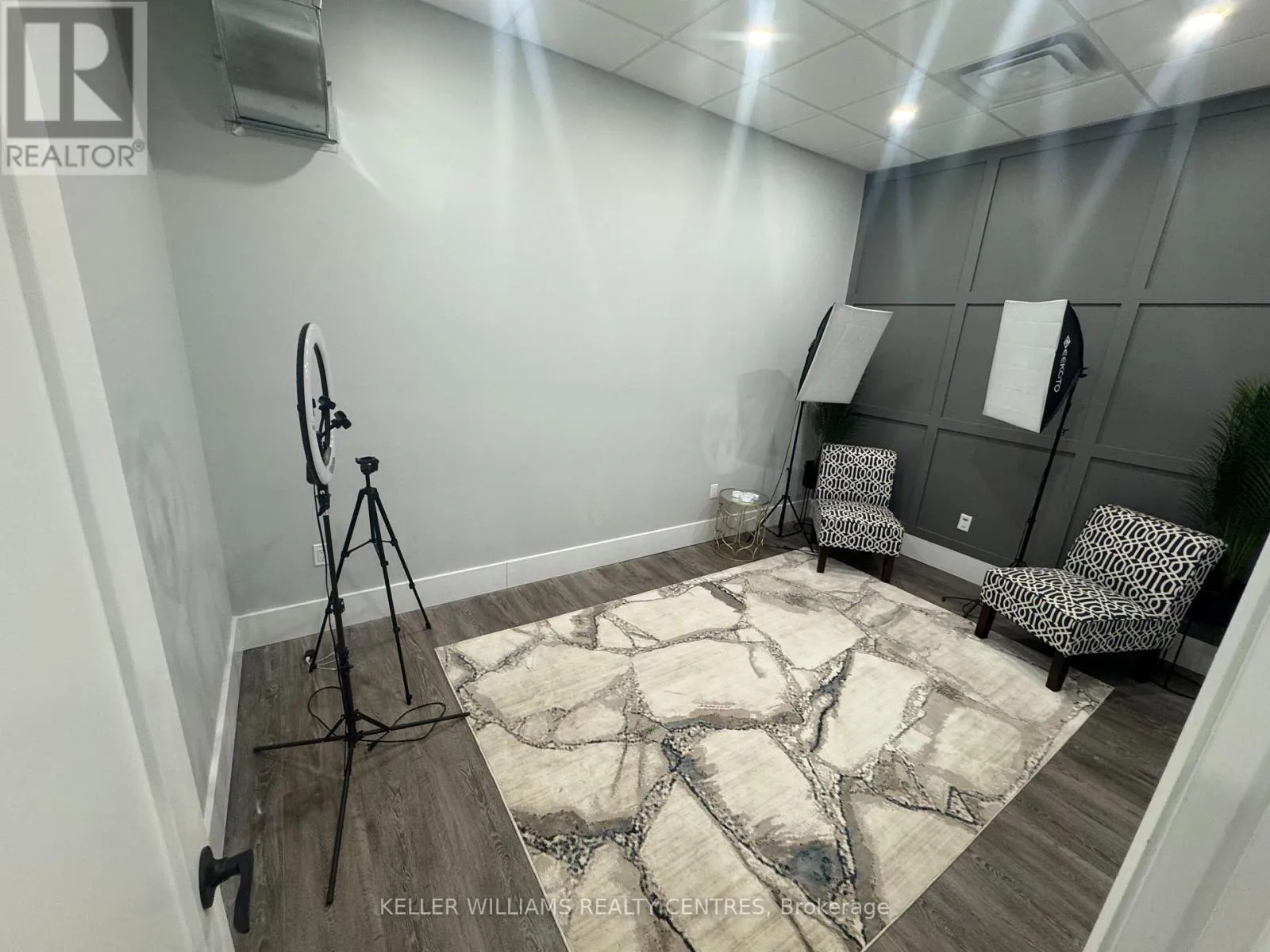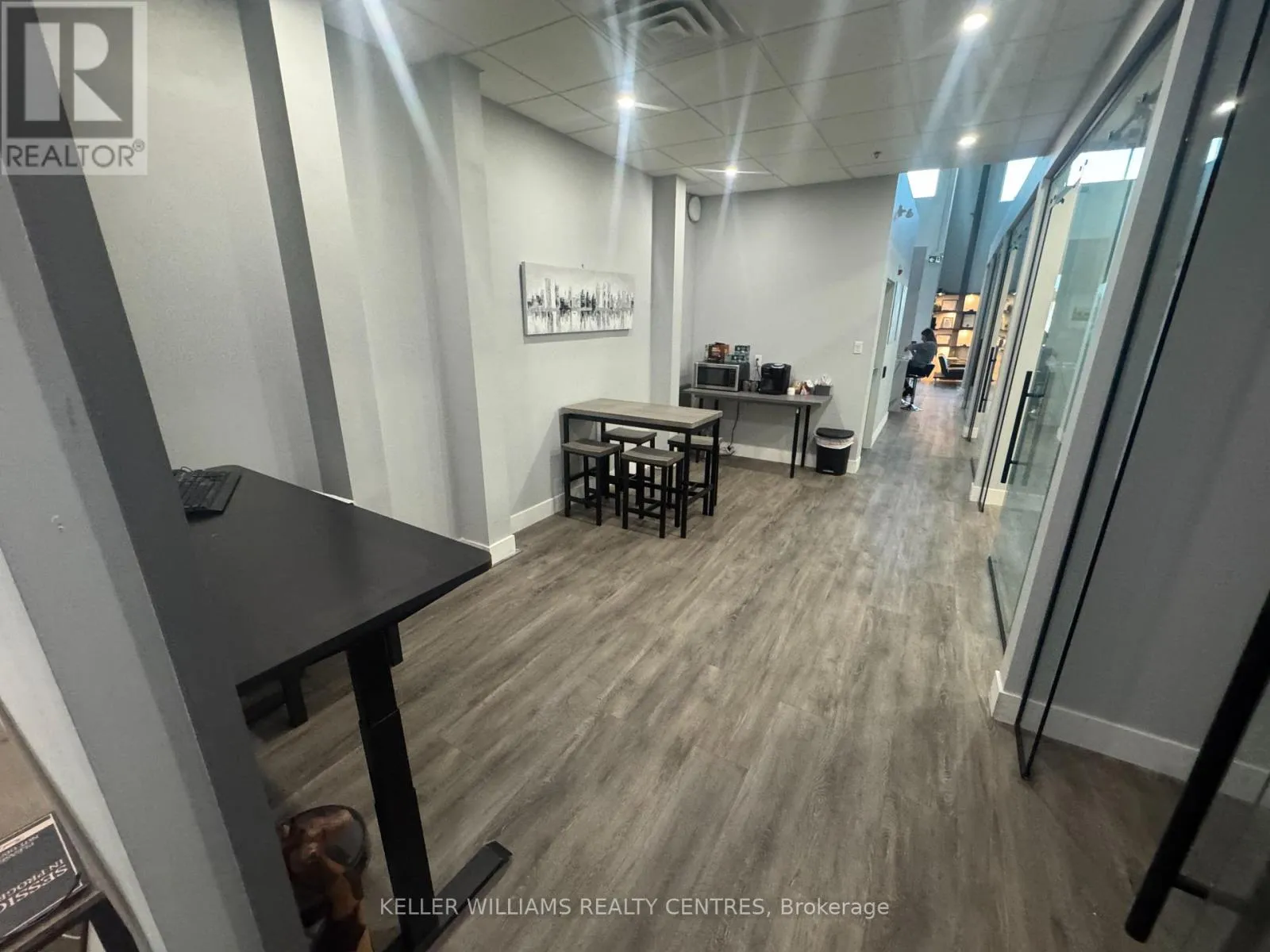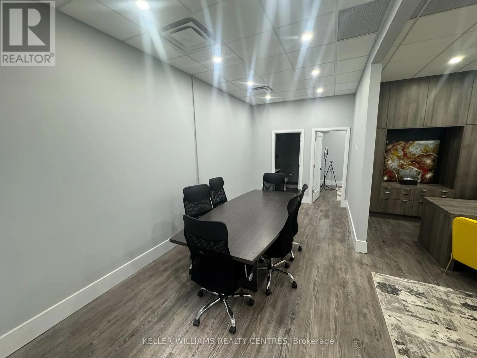 Cross Streets: Hoover Park and Mostar. ** Directions: Head to 200 Mostar St, Stouffville. Enter the main complex and follow signs to Building A. Unit A114 is on the ground floor near the front entrance. Experience a luxury workspace crafted with premium finishes and smart, modern design. This fully transformed commercial unit offers the perfect blend of professionalism, comfort, and functionality-ideal for a wide range of business operations.Main Floor - Approx. 1,800 sq. ft.The main level features four private offices, a dedicated boardroom, and an inviting front lounge highlighted by a contemporary fireplace-creating a warm, professional space for clients and staff. A beautifully finished kitchenette and a mid-sized dining area offer everyday convenience, while a modern washroom completes the layout.Upper Mezzanine - Approx. 600 sq. ft. The mezzanine level includes a spacious executive office with an attached boardroom, perfect for leadership functions and confidential meetings. A soundproof media room adds versatility for presentations, recording, or secure communications. A bathroom with a shower provides additional comfort and flexibility.Completely renovated after purchase, this unit offers a true turnkey workspace with exceptional value and design.Key Features: High-exposure location fronting Mostar Street Stunning showroom and office layout Bright, modern finishes with large windows and abundant natural light. (id:27476)