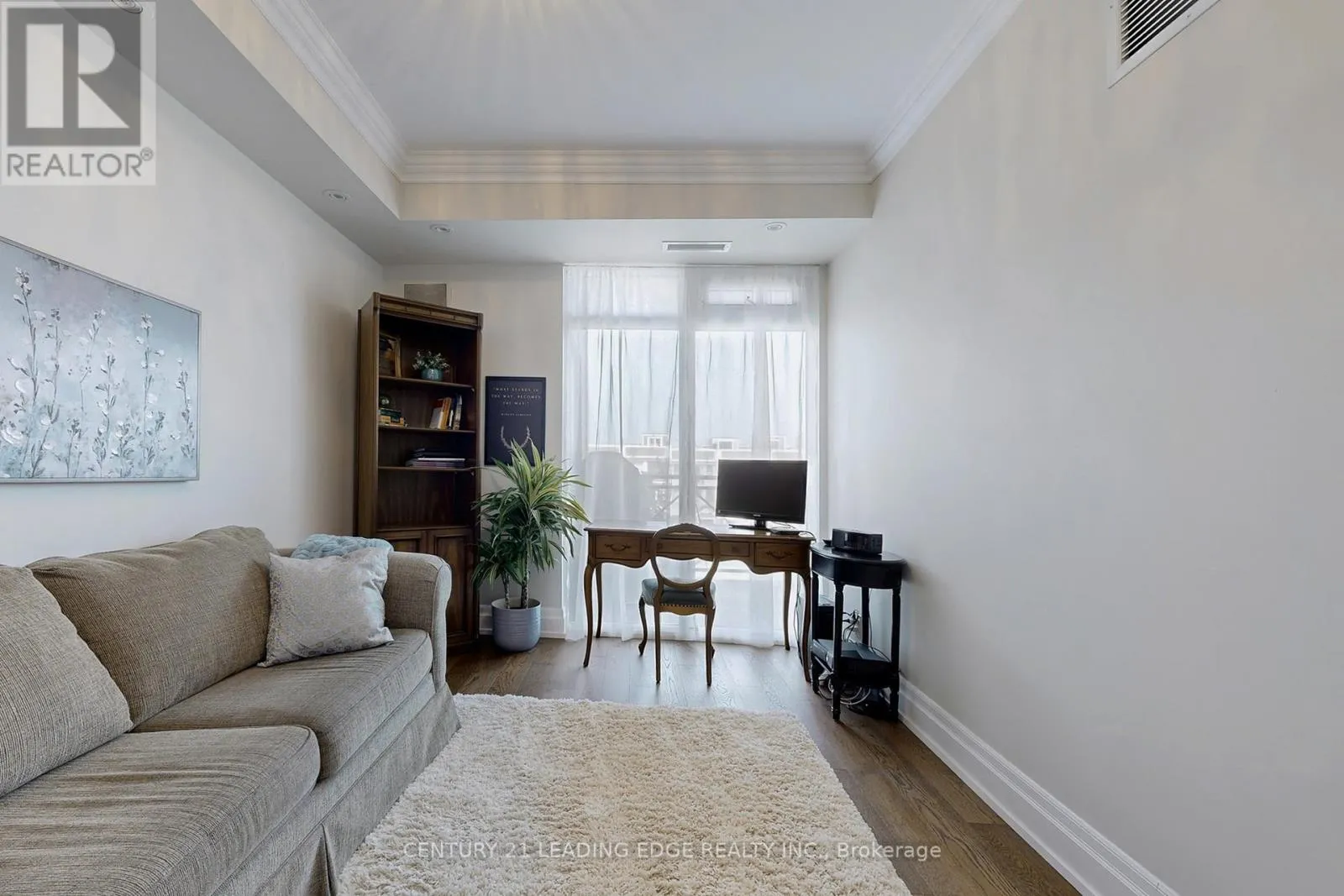 Main St & Baker Hill Welcome to Suite 305 at 35 Baker Hill Blvd A Rare Opportunity in the Heart of Stouffvilles Premier Community! Discover over 1,400 sq ft of beautifully appointed living space in this elegant low-rise condominium. This spacious suite features 2 generously sized bedrooms plus a versatile den ideal as a third bedroom, home office, or media room. Step into a welcoming foyer with designer ceramic tile that opens into an expansive open-concept layout. Enjoy 9-ft ceilings, crown moulding, pot lights, and rich hardwood flooring throughout. The custom kitchen is a standout, featuring stainless steel appliances (2023), stylish backsplash, extended cabinetry, and a breakfast bar perfect for casual dining or entertaining. The primary suite is a private retreat, complete with a walk-in closet, a sleek 3-piece ensuite, and direct access to a large balcony also accessible from the main living area, offering seamless indoor-outdoor living. Additional highlights include a laundry room with stacked washer/dryer (2023), custom shelving, and laundry sink. Recent upgrades in 2023 include new flooring, updated countertops, and renovated bathrooms, ensuring a move-in ready experience. Enjoy exceptional building amenities, beautifully landscaped grounds, and access to scenic walking paths. This unit includes two underground parking spots and a locker for added convenience. Situated just minutes from shops, dining, parks, and everyday essentials, Suite 305 offers the perfect blend of luxury, comfort, and location. Dont miss this rare gem! (id:27476)