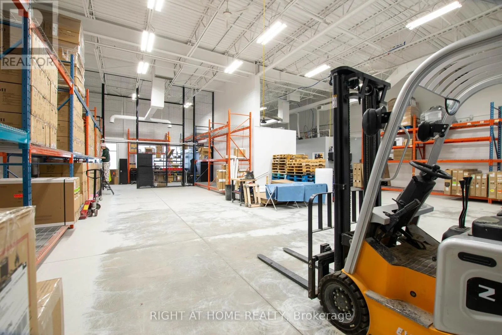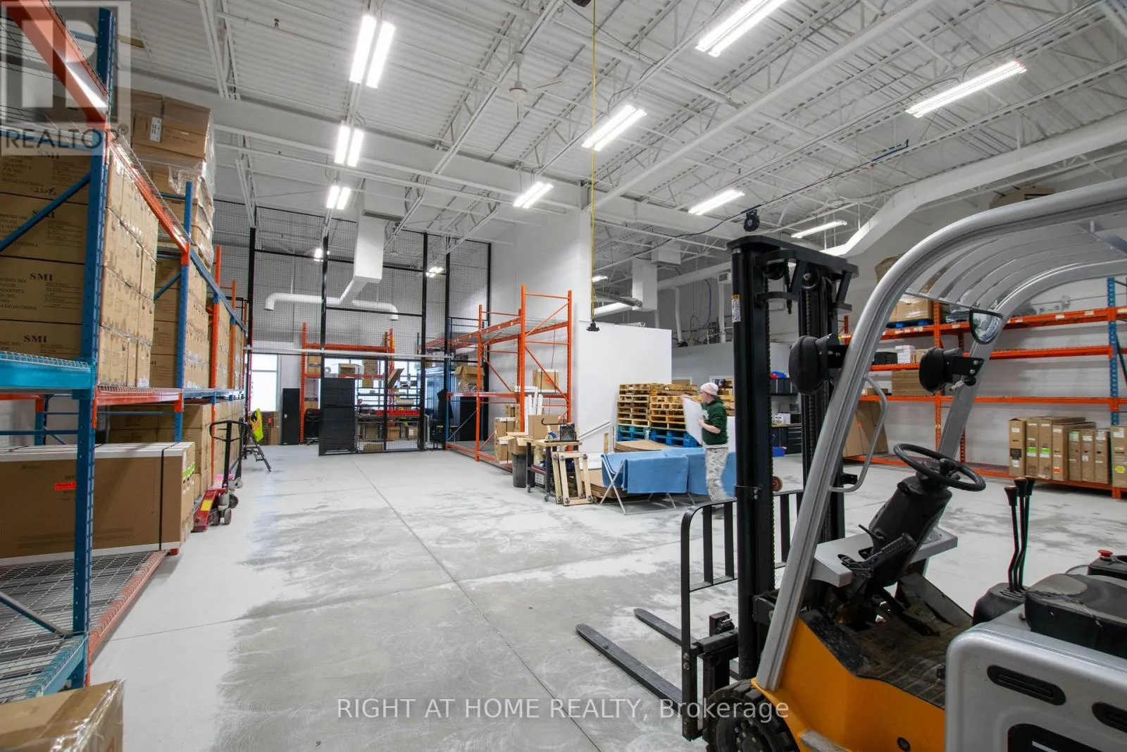 Main St / Mostar Secure your business's future in Stouffville's thriving industrial landscape with this modern warehousing unit at 38 Innovator Ave. Located within a Prestige Business Park, this property offers the ideal combination of functionality and professional appeal, featuring architectural precast construction and a well-maintained site. This 3106 Sqft unit boasts a generous 18-foot clear ceiling height, making it perfect for efficient vertical storage, and includes one grade-level drive-in door (10' x 12') for seamless shipping and receiving operations. The current configuration includes a dedicated, clean office/showroom area, offering a professional space for administrative tasks and client interactions. Equipped with sufficient power (600V) and situated under EPB6 Zoning, this versatile space accommodates a wide range of uses, including warehousing, distribution, and light manufacturing. The location provides excellent accessibility for staff and clients, with proximity to major Stouffville amenities and convenient access to key transportation routes for regional logistics. (id:27476)