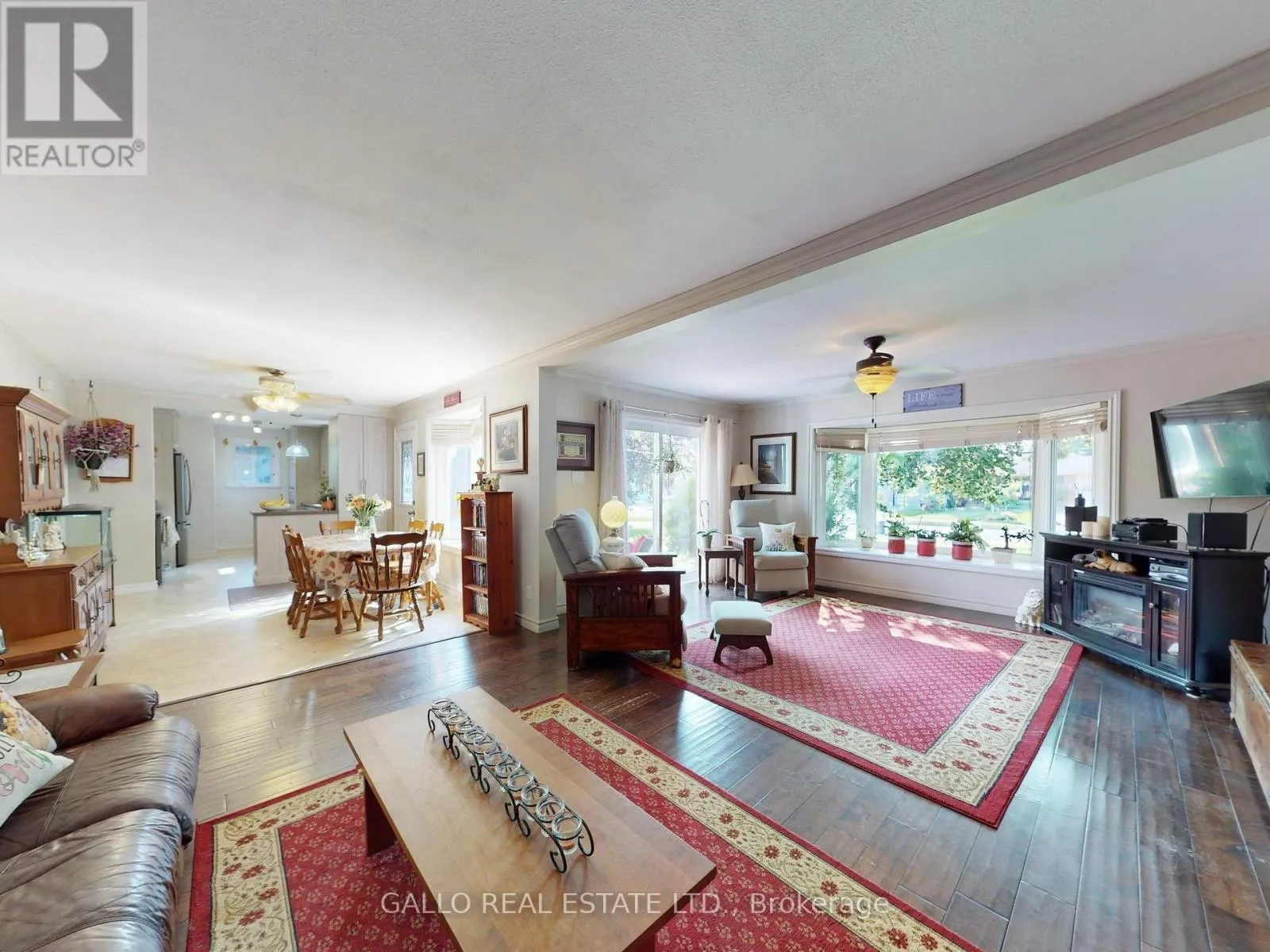 MAIN ST & TENTH LINE S Welcome to this Open Concept 3 bedroom Brick Bungalow with detached Garage - Private yard with mature trees -Great for entertaining family and friends ! Renovated kitchen overlooks breakfast area--S/S stove appliances--quartz counters -hardwood floors-Bright and airy with plenty of windows to let the sun in-spacious living room with large room great for dining area or home office with walk-out to front patio-Master bedroom has walk-out to backyard-entrance into main bath with stacking washer & dryer-**Separate entrance to a bright & spacious In-law suite-rec room with electric fireplace-bedroom-games room/exercise room- 3 pc bath and laundry. Fantastic location close to parks, schools, go train shops, restaurants, churches & easy access to 407 (id:27476)