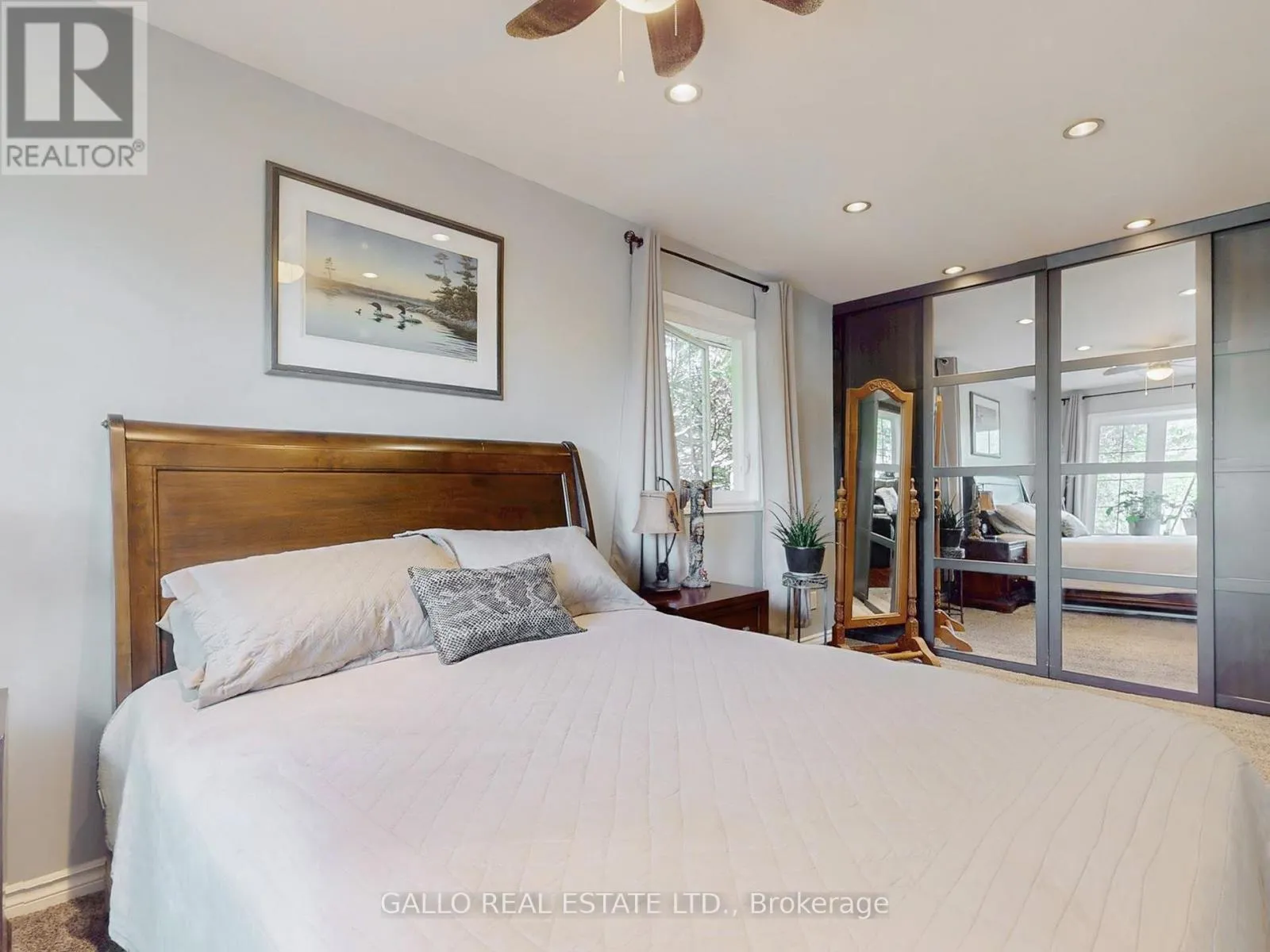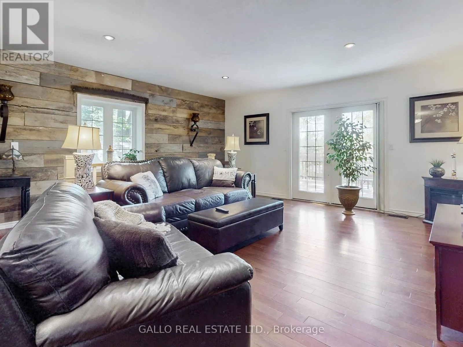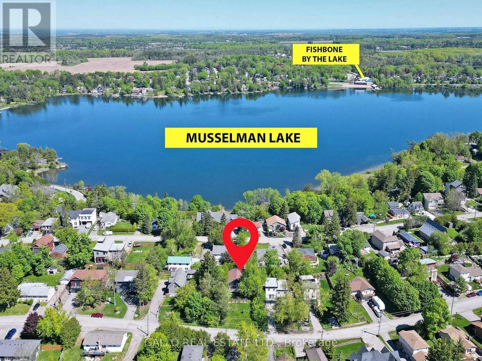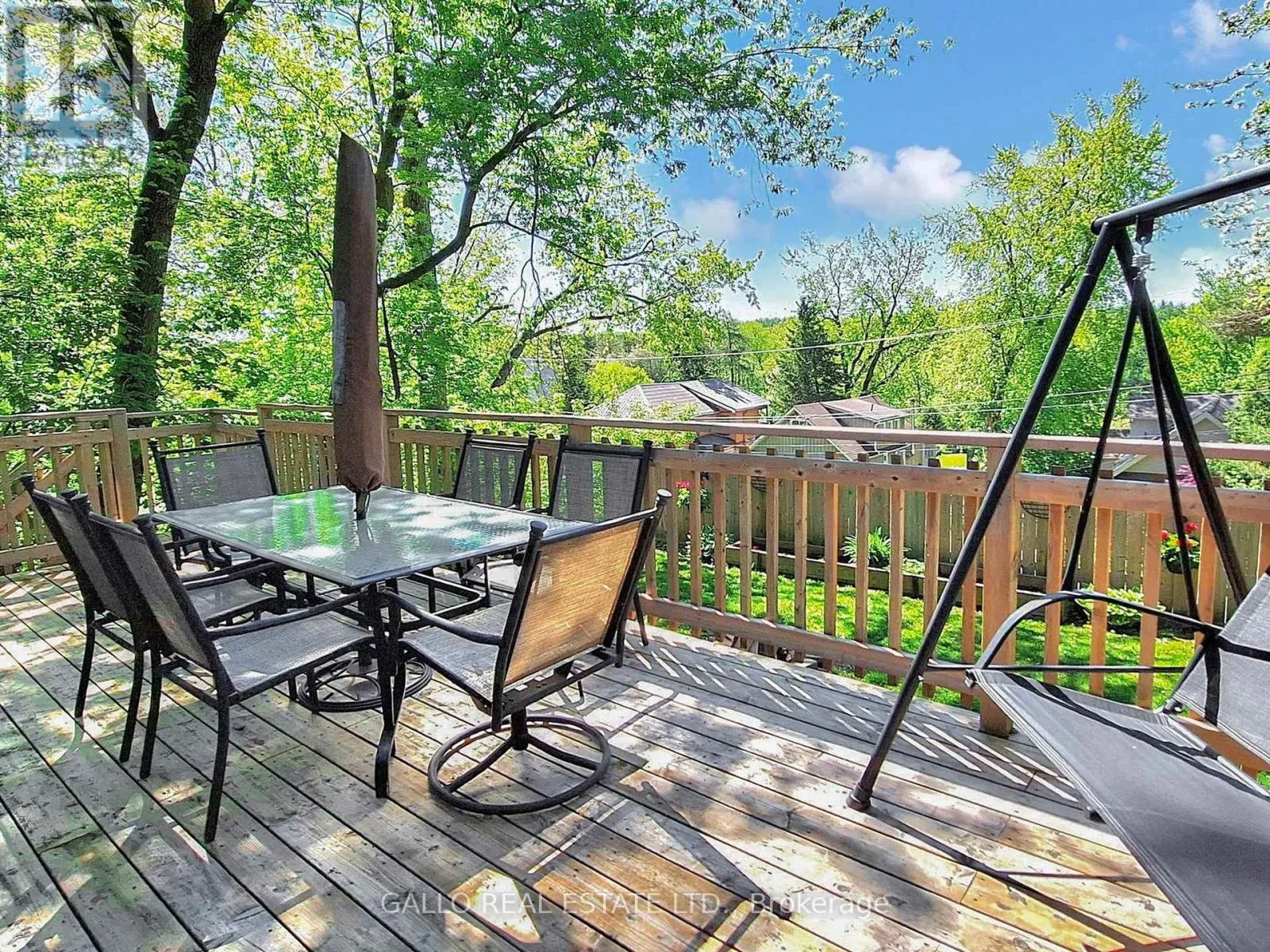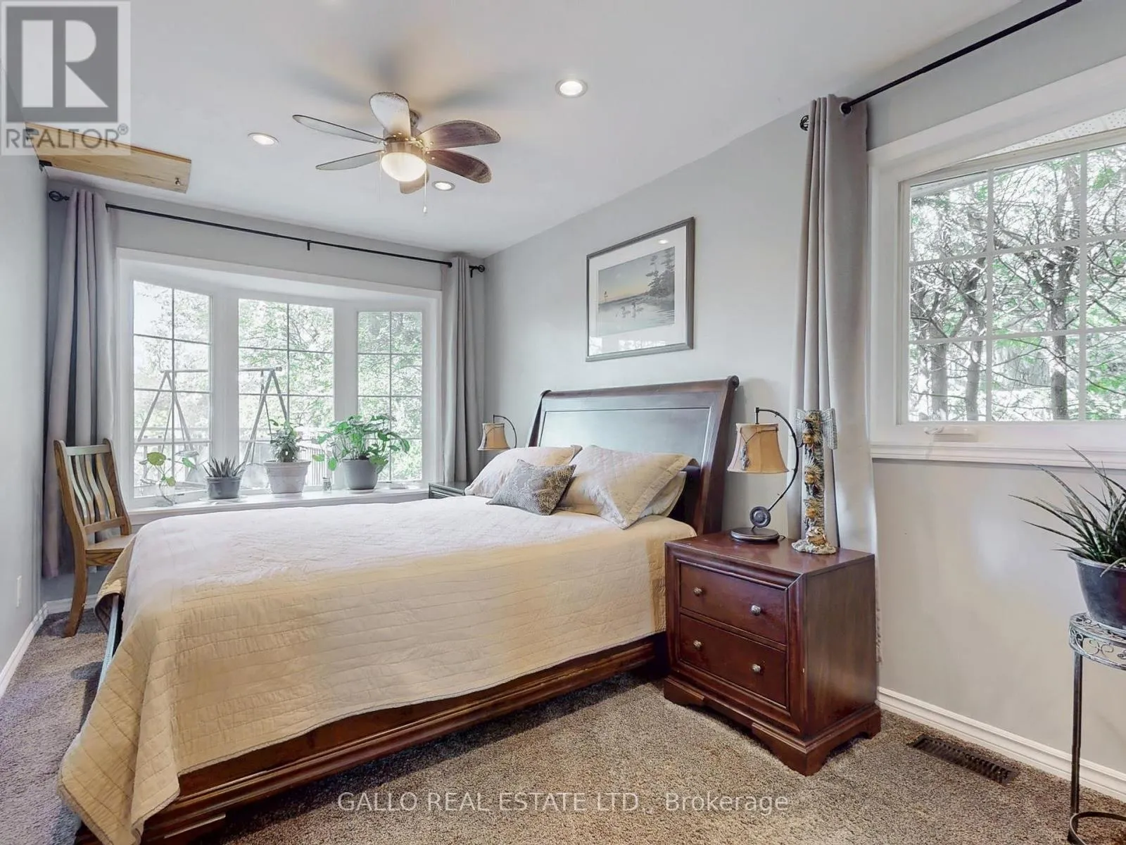 Cross Streets: Ninth Line North/Lakeshore Rd W. & Windsor Dr. ** Directions: Ninth Line north of Bloomington, turn L onto Lakeshore, then merge L onto Windsor. GET READY TO MOVE into this HIDDEN GEM, situated on a unique L-shaped property with two road frontages! A private 24.77x80 ft driveway allows for many parking spaces fronting on Windsor Drive. Approx. 100 feet back, the home is situated on a 50ft wide x 90ft rectangular piece of the parcel. The bungalow offers 1800 ft2 of finished living space - 966 on main floor! Extensive renovations to main floor and a new poured basement circa 2017/18 will impress the buyer! The open concept main floor living room with Brazilian cherry hardwood floor has double French doors to access the spacious 24 x 12 deck to enjoy BBQs and 'porch sitting' with distant views. A manicured grassy yard with fire pit, planter box, and retaining wall fencing for children to play! Under deck storage also a plus. Beyond the fence is a sloping area with a new concrete septic holding tank installed near the Valley Rd. frontage and area has been grass-seeded, making it turn-key ready! Back inside, the primary bedroom's large bay window has a window seat/plant area, and at the opposite end is a spacious mirrored wall-to-wall closet. Look for the dark red sliding entry "barn" door! The main 3-pc. bath has been ungraded as well. Dining room is open concept, blending into the foyer, and the crowning highlight - a gorgeous chef's kitchen that will immediately attract buyers with stainless steel appliances. A faux soapstone/ concrete counter ends in a peninsula with room for stools for casual meals while chatting with the "chef"! A hidden staircase with removable railing leads from the wood-planked windowed wall to the large recreation/flex room, another 2 bedrooms , a pristine 4 pc. bath, and a convenient laundry room with utility hook-ups well-labelled. Another added benefit is the privacy factor with the surrounding hedges and the western and eastern mature tree line. The elevated view to the south from the deck only adds reasons to buy this commuter's choice for PRIVACY, PARKING, AND PIZZAZ! (id:27476)