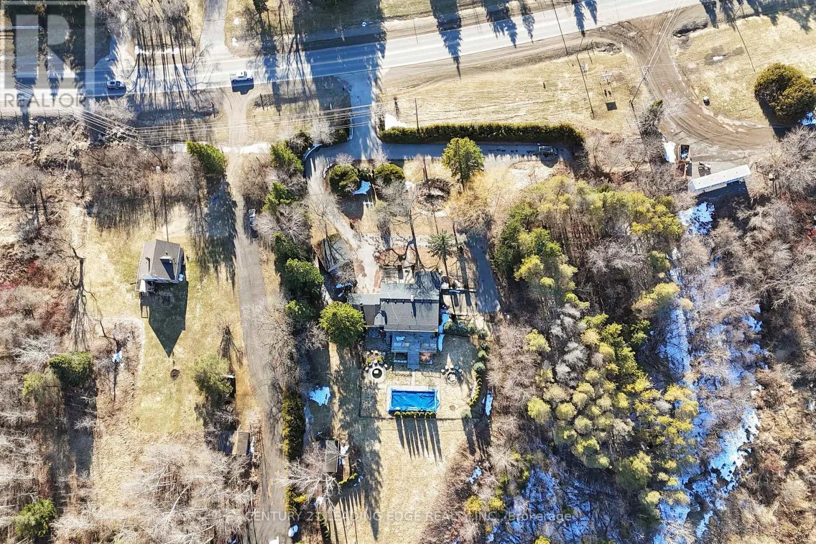 Vandorf/Bloomington Best Deal in Stouffville, No Doubt! Priced to sell! Welcome to 14489 Highway 48 - an extraordinary 3-acre property in Stouffville featuring a stunning 3-bedroom, 4-bath custom bungalow. This one-of-a-kind home is nestled among mature trees and surrounded by luxurious estate homes, offering unparalleled privacy. Inside, you'll find a spacious open-concept living, dining, and family room with a walkout to the deck, perfect for entertaining. The chef-inspired kitchen is designed for both functionality and style. The property boasts a circular driveway, creating a grand entrance and includes four garages for ample parking and storage. Outside, enjoy your own private oasis with a custom fiberglass pool featuring waterfalls, a separate spa, and a large deck ideal for hosting guests. The professionally finished lower level offers two walkouts and is perfect for in-law or nanny accommodations. This beautifully maintained country property offers both tranquility and modern luxury in a truly unique setting. (id:27476)