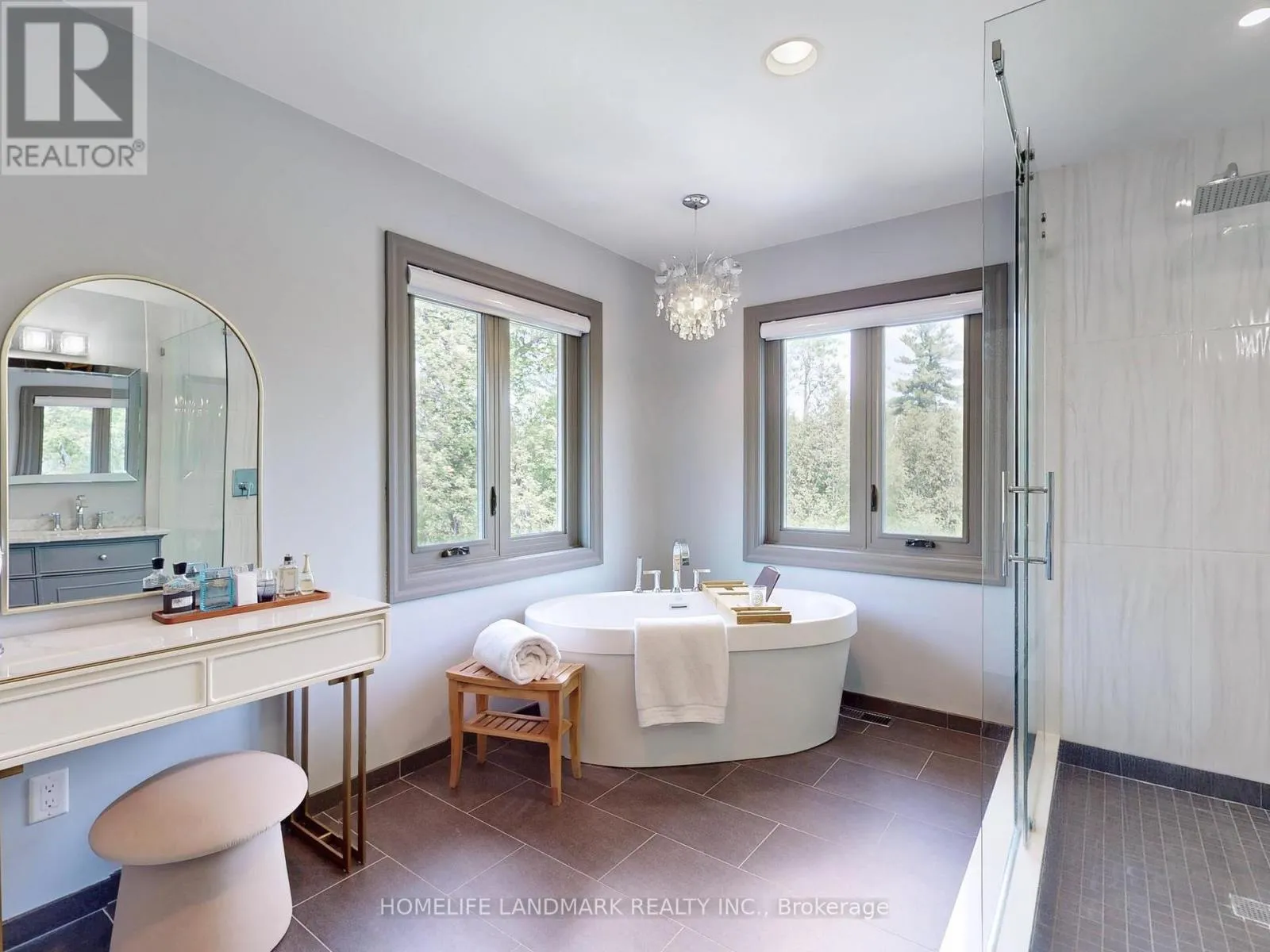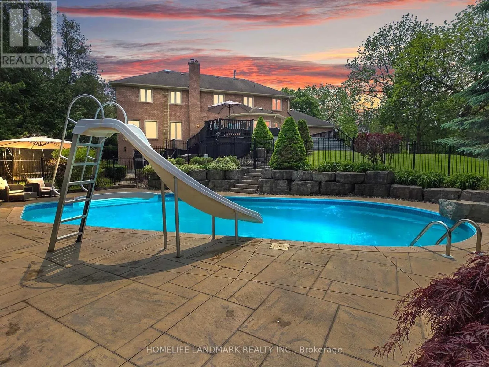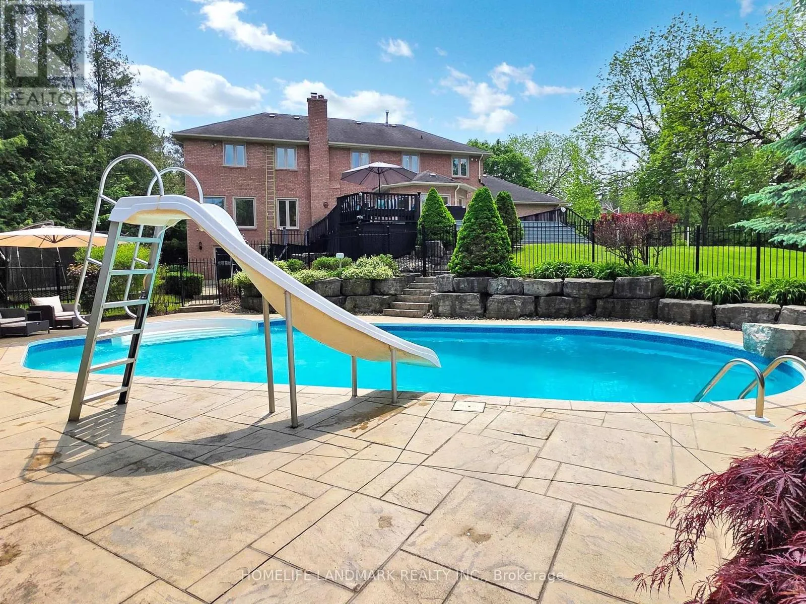 Cross Streets: WOODBINE/ BETHESDA. ** Directions: N. Stunning ravine estate in prestigious Bethesda Estates! Set on a landscaped 1.04-acre lot, this 5+1 bed, 7-bath home features a circular drive, resurfaced asphalt drive, and 3-car garage w/ rare 90" clearance. Saltwater pool w/ new pump, refinished deck, and updated chefs kitchen w/ B/I appliances, 6-burner gas stove, high-CFM hood. 4 beds up w/ private baths, main-fl in-law suite, W/O bsmt w/ guest rm, sauna, home theatre, smart blinds, indoor/outdoor speakers. Upgrades incl: EV charger, new windows/patio door, attic insul., HWT, iron filter, softener, and S/S dishwasher. (id:27476)