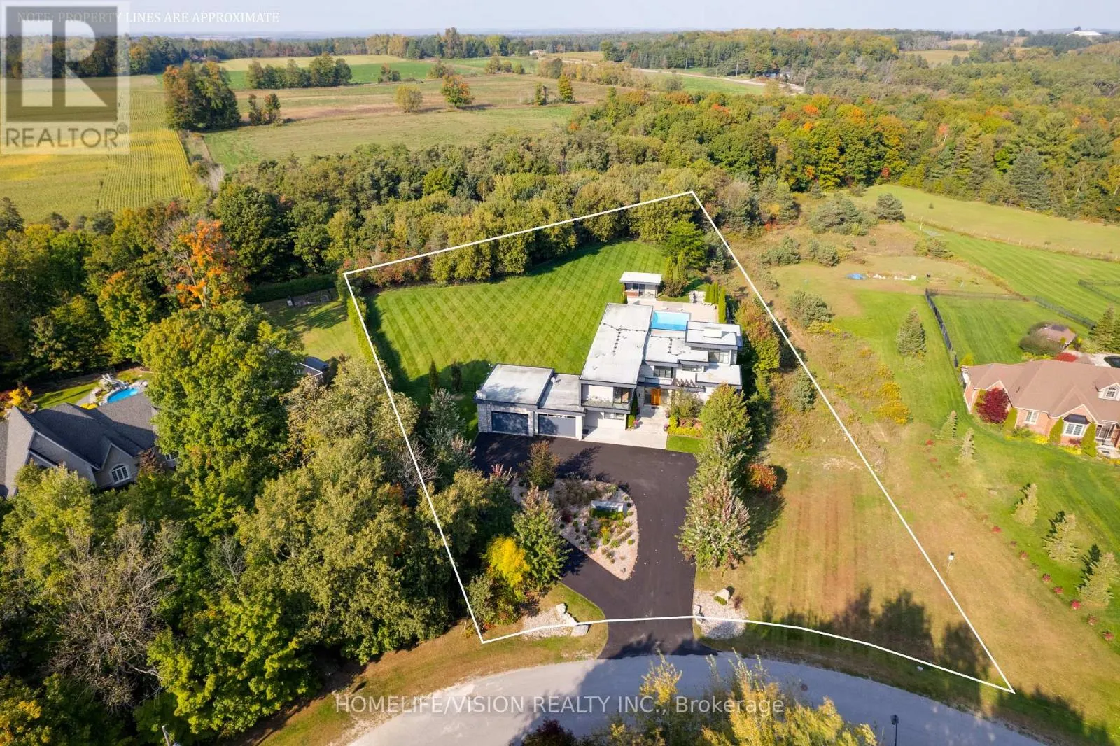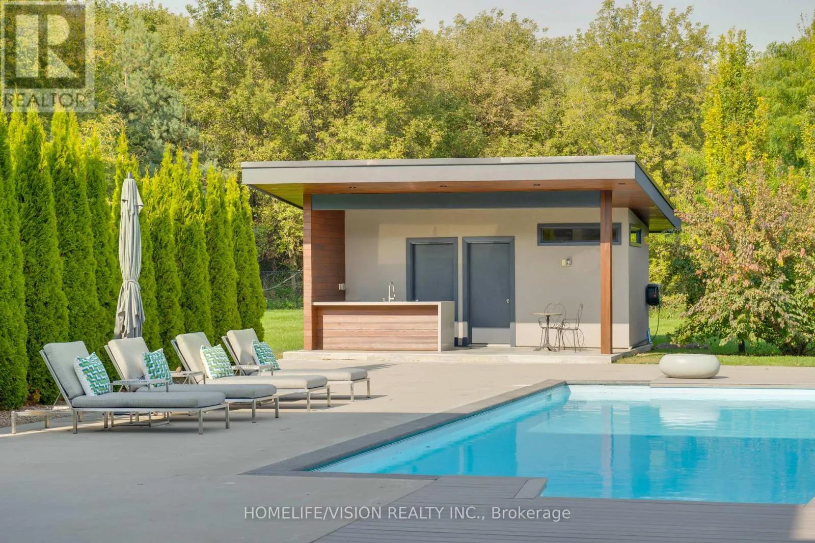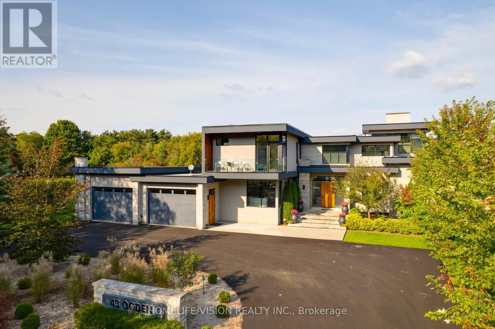 Cross Streets: Aurora Rd/York Durham Line. ** Directions: Access Ogden off Lake Woods Dr from Aurora Rd or York Durham Line. Experience luxury living at this breathtaking modern estate on 2 acres! Portions of interior masterfully designed by award winning interior designer Eric McClelland of Fleur-de-lis Interior Design Inc. The main floor boasts a contemporary kitchen with with custom cabinetry and eat in kitchen, sunken dining room with walkout to backyard, living room with floor to ceiling windows and walkout to patio, family room overlooking the garden with gas fireplace and a sun filled office with built in shelving. Master bedroom oasis with a balcony overlooking the backyard, custom built-in cabinetry and custom 6 piece ensuite with steam shower. All bedrooms have an ensuite and large windows. Meticulous maintained stone, stucco and cedar exterior with professionally landscaped gardens, outdoor saltwater pool, fire pit and cabana. Perfect for entertaining indoors and out. Spectacular basement with home theatre with full projection system, wine fridge, workout room, kitchenette and bar space. 5th bedroom in basement with custom cabinetry and ensuite as well. Elevator gives access to all floors. Dog wash station in mudroom with sink and built in cabinetry. Radiant floor heating through much of home. Automated shades in most rooms, custom lighting system with pot lights, Sonos sound system throughout! Exterior repainted and stained (2023), Outdoor decking (2023), Roof (2016), Windows (2016), A/C (2016), Furnace (2016), Sump pump (2017). (id:27476)