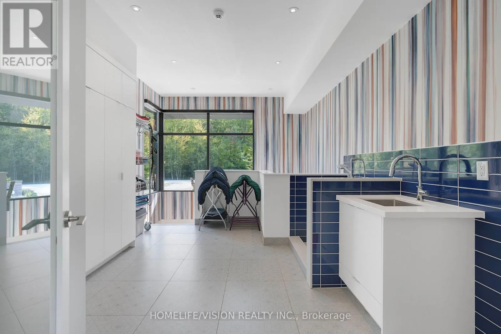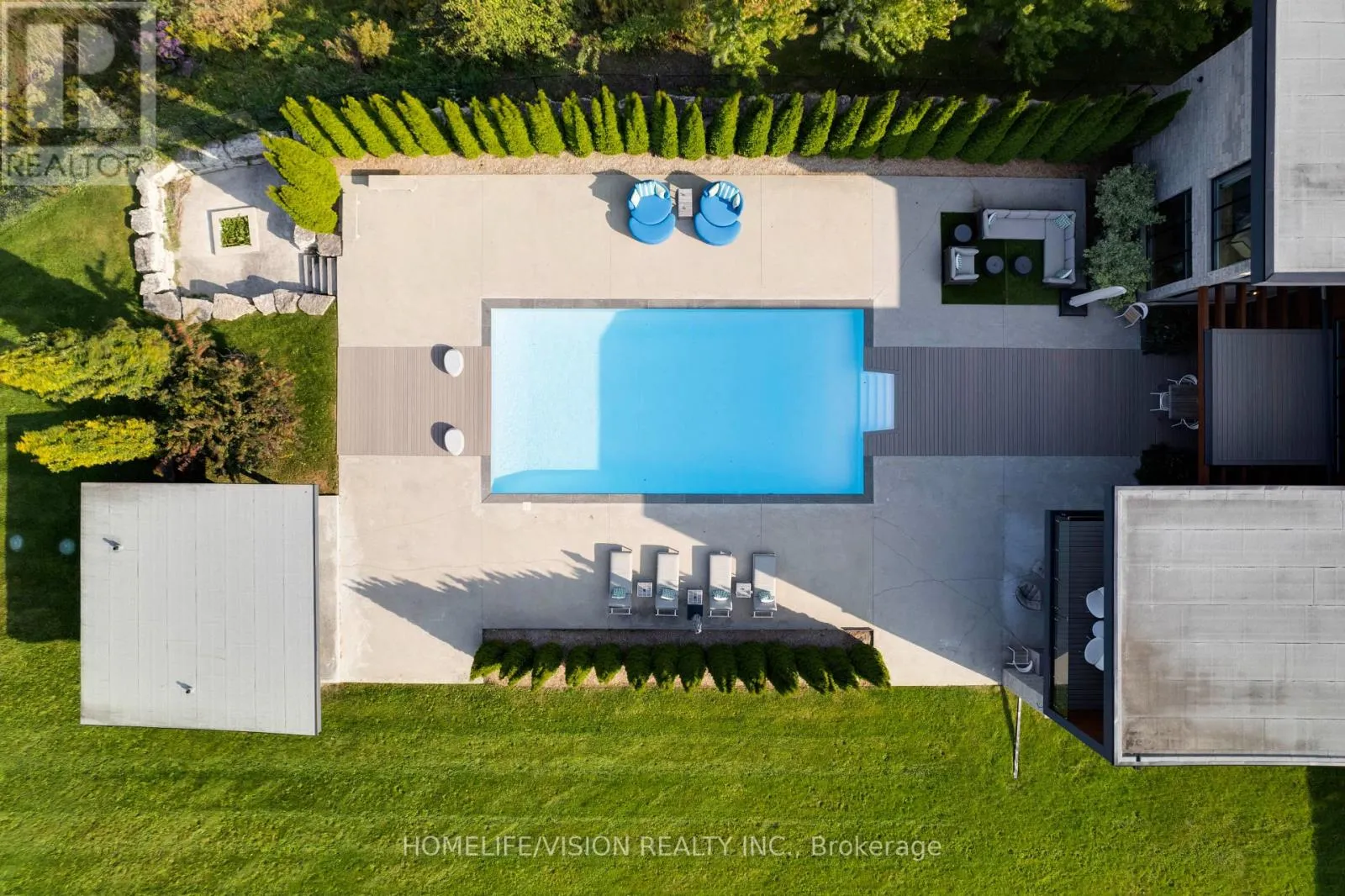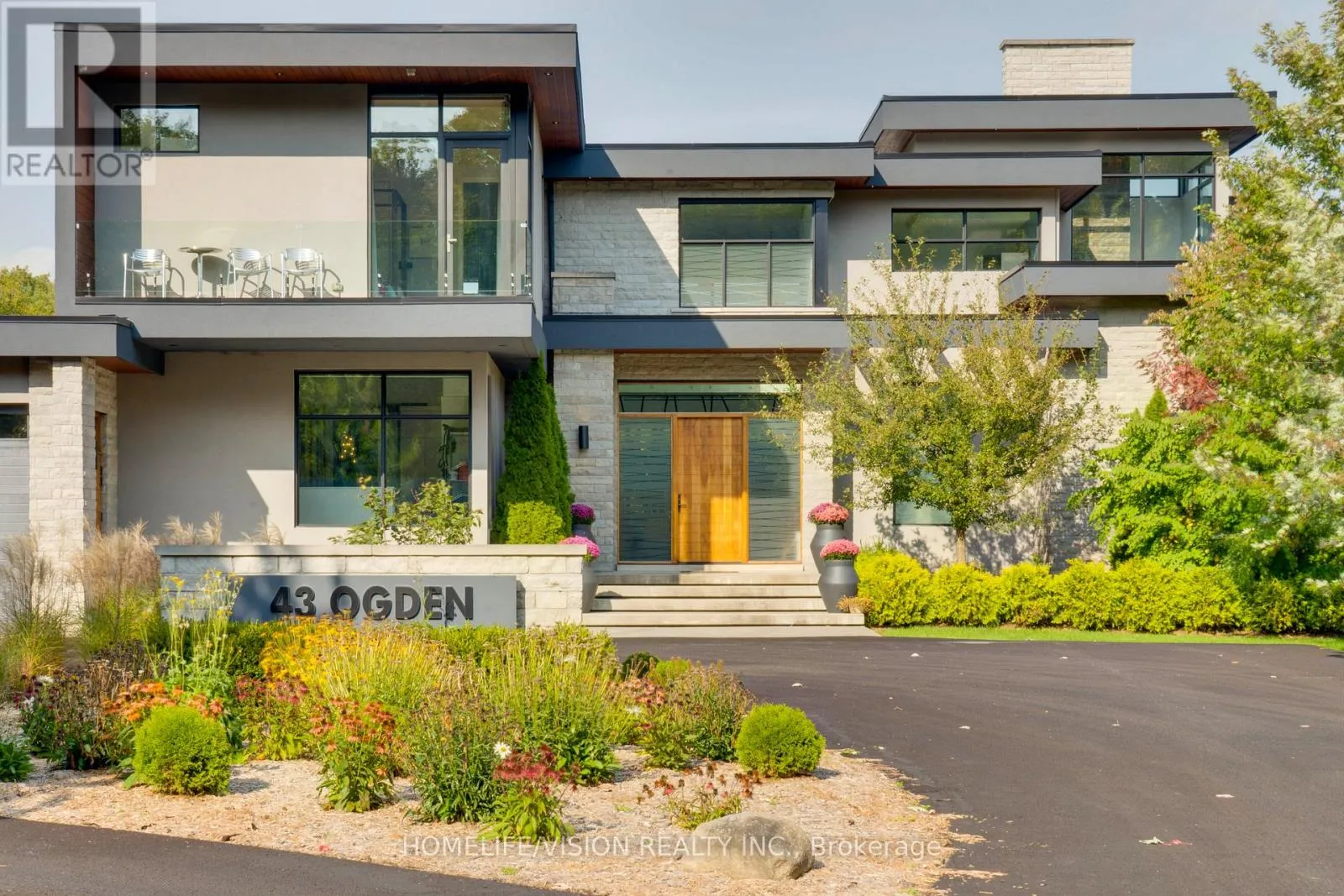 Cross Streets: Aurora Rd/York Durham Line. ** Directions: Access Ogden off Lake Woods Dr from Aurora Rd or York Durham Line. Experience luxury living at this breathtaking modern estate on 2 acres! Portions of interior masterfully designed by award winning interior designer Eric McClelland of Fleur-de-lis Interior Design Inc. The main floor boasts a contemporary kitchen with with custom cabinetry and eat in kitchen, sunken dining room with walkout to backyard, living room with floor to ceiling windows and walkout to patio, family room overlooking the garden with gas fireplace and a sun filled office with built in shelving. Master bedroom oasis with a balcony overlooking the backyard, custom built-in cabinetry and custom 6 piece ensuite with steam shower. All bedrooms have an ensuite and large windows. Meticulous maintained stone, stucco and cedar exterior with professionally landscaped gardens, outdoor saltwater pool, fire pit and cabana. Perfect for entertaining indoors and out. Spectacular basement with home theatre with full projection system, wine fridge, workout room, kitchenette and bar space. 5th bedroom in basement with custom cabinetry and ensuite as well. Elevator gives access to all floors. Dog wash station in mudroom with sink and built in cabinetry. Radiant floor heating through much of home. Automated shades in most rooms, custom lighting system with pot lights, Sonos sound system throughout! Exterior repainted and stained (2023), Outdoor decking (2023), Roof (2016), Windows (2016), A/C (2016), Furnace (2016), Sump pump (2017). (id:27476)