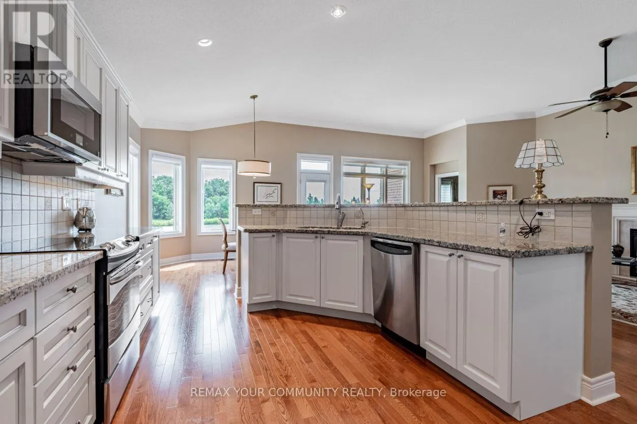 Aurora Rd & Hwy 48 Welcome to the lifestyle you've worked so hard for. Nestled in the award-winning Ballantrae Golf & Country Club adult lifestyle community, this sought-after Doral bungalow offers more than a beautiful home-it offers ease, privacy & the freedom to truly enjoy your next chapter. Set on a rare, oversized lot with a private south-facing view over the pond, 11th fairway & forest beyond, this is the kind of setting that makes every day feel a little more special. Enjoy morning coffee, lunch, dinner and evening wine on the extended patio (complete with a remote awning). Truly Exceptional.Thoughtfully designed for both quiet moments & family gatherings, the home features a spacious Chef's kitchen with stainless steel appliances, extended island & counter space, plus double pantries. Whether hosting family for the weekend or enjoying the quiet rhythm of everyday life, this home delivers space in all the right places.The finished basement adds a large family room with 60" TV, surround sound & a 3-piece bath-perfect for guests. Luxury upgrades throughout. Even the garage is insulated and finished.Discover the freedom to spend your time exactly how you want---on the golf course, at the Recreation & Wellness centre (with pool, gym, and many social activities), or simply enjoying your private backyard sanctuary. MOVE IN and ENJOY RESORT-STYLE LIVING! (id:27476)