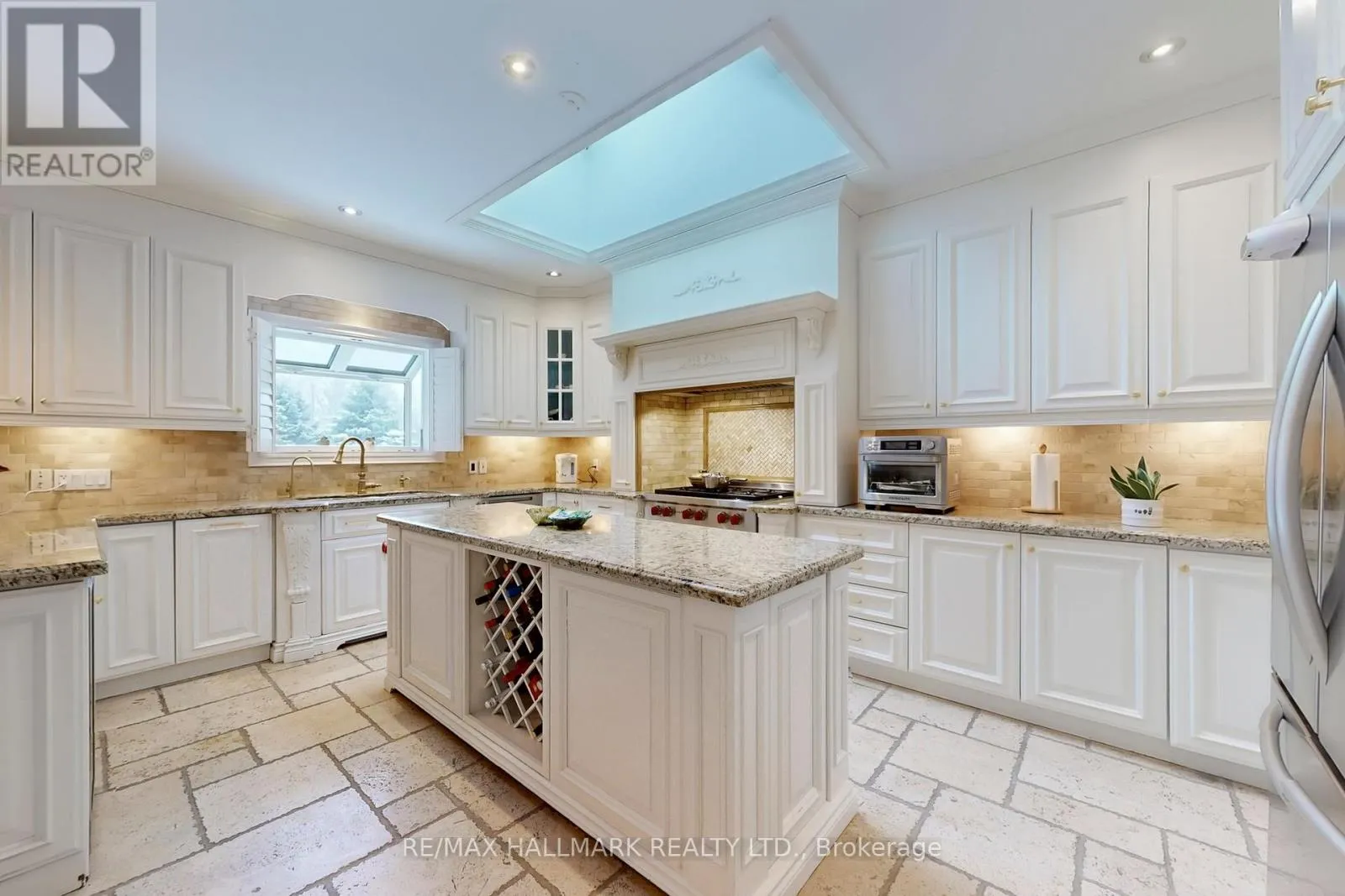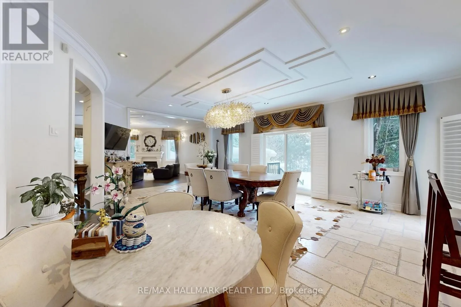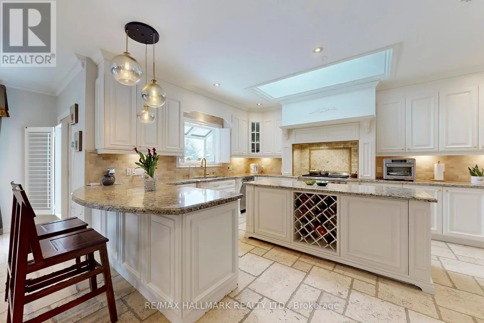 Hwy 48 / Aurora Rd Discover This Absolute Luxury Masterpiece Set Within A Prestigious Enclave of Executive Homes in Ballantrae! Extensively renovated, this sprawling two-storey home offers timeless elegance, exceptional scale, and resort-style outdoor living. Thoughtfully transformed from top to bottom w/brand new flooring, freshly finished walls, and elegant natural crystal light fixtures. A dramatic double-door entry opens to a grand rotunda foyer w/intricate wall/ceiling moldings, pot lights & a breathtaking crystal chandelier admired from both the main level & upper landing. Espresso-toned hardwood floors & wrought-iron staircase detailing. The chef's kitchen is a showpiece w/ornate cabinetry, skylight, granite counters, breakfast bar w/statement pendants lighting, tumbled marble backsplash w/under-cabinet lighting, built-in wine rack/wine fridge, and premium appliances including a Wolf 6-burner gas range. Adjoining dining area features ceiling detailing, a designer chandelier, and 2 walkouts from pergola patio & grounds and a private elevated deck. Inviting family room w/a gas fireplace and decorative mantle, crown molding, pot lights & custom drapery. Flexibility for a living room and a den w/built-ins. Main-floor bedroom w/ensuite, ideal for multi-generational living. Upstairs, a bright office w/built-in cabinetry, California shutters, Juliette balcony & custom drapery, joined by 2 additional bedrooms w/ensuites. Luxurious primary retreat w/double-door entry, an expansive wall of windows, custom chandelier, spa-inspired ensuite w/soaker tub & walk-in closet w/built-ins. Finished lower level w/large rec room, bedroom w/ensuite, versatile bonus room, 3pc bath, theatre w/projector & screen, and a walkout perfect for entertaining. Enjoy proximity to Ballantrae Golf & Country Club, top-rated schools, recreation facilities, community amenities, scenic walking trails, perfect for those who appreciate an active outdoor lifestyle. (id:27476)