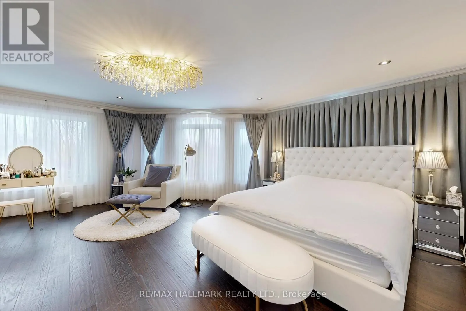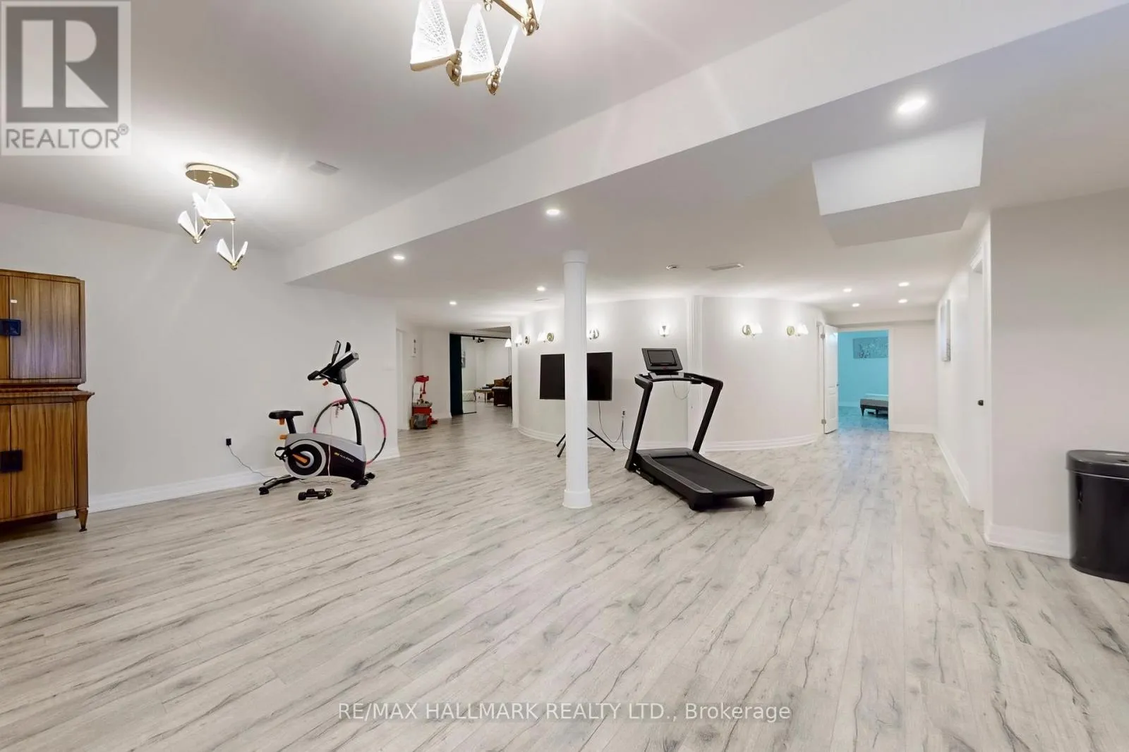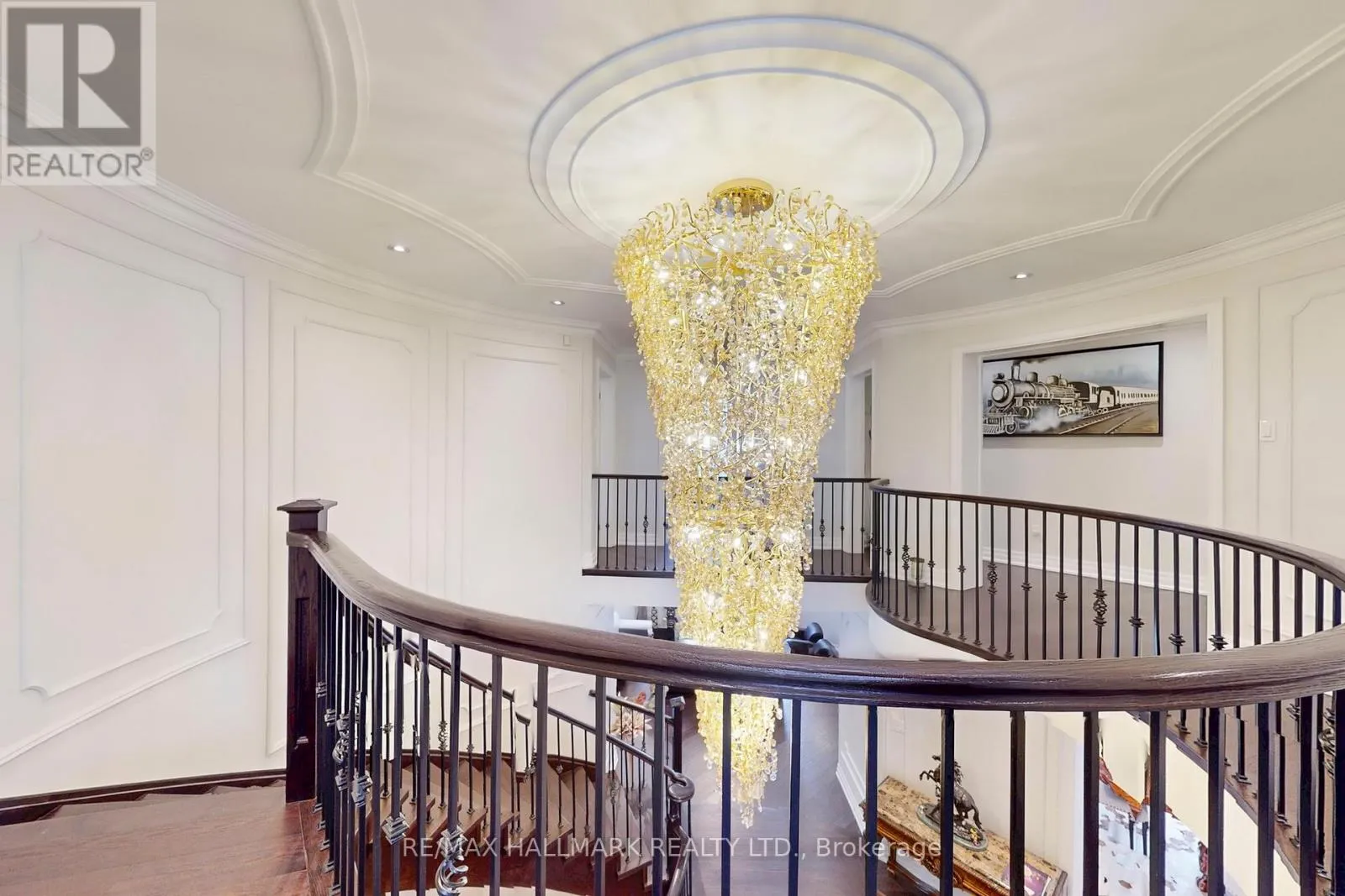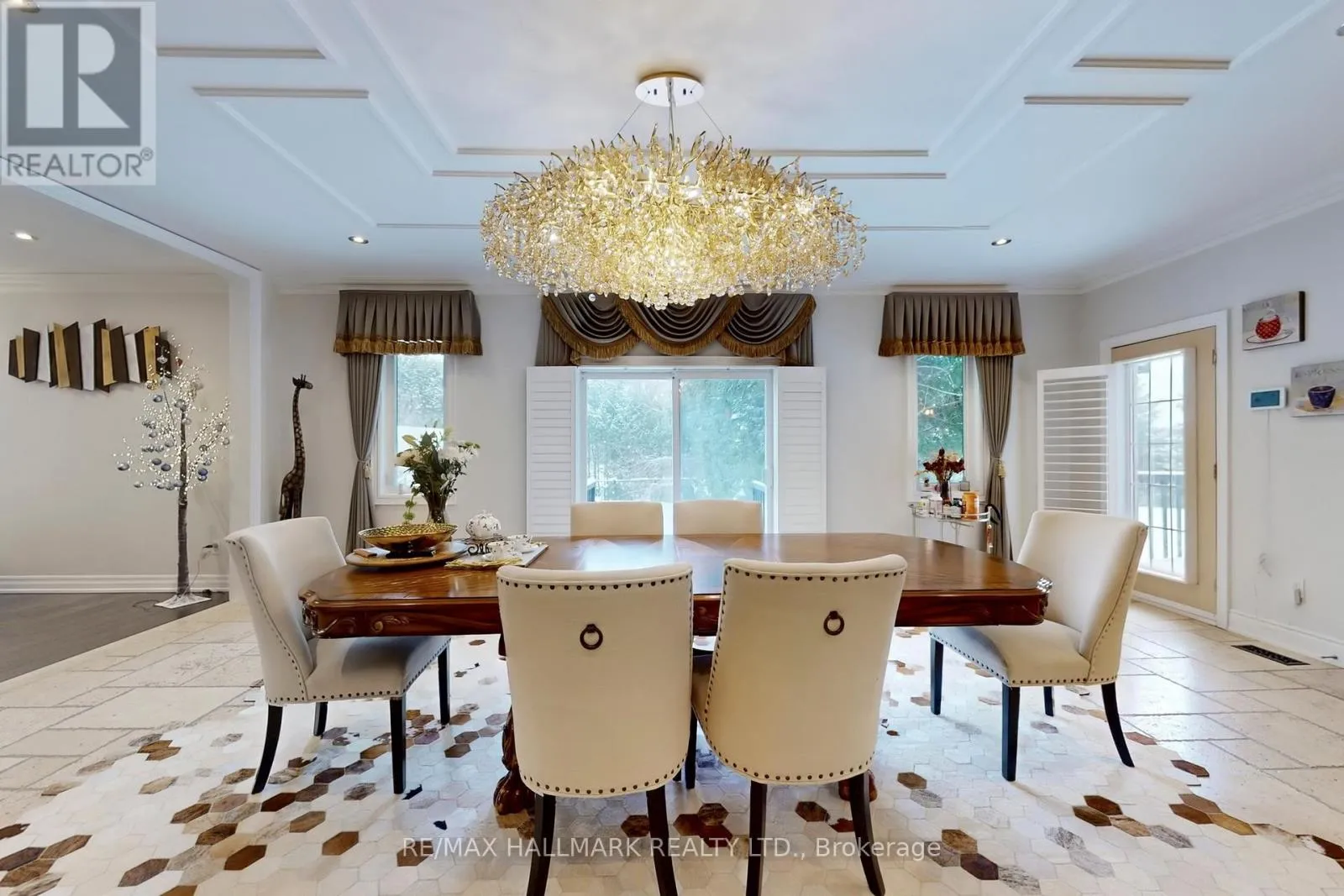 Hwy 48 / Aurora Rd Discover This Absolute Luxury Masterpiece Set Within A Prestigious Enclave of Executive Homes in Ballantrae! Extensively renovated, this sprawling two-storey home offers timeless elegance, exceptional scale, and resort-style outdoor living. Thoughtfully transformed from top to bottom w/brand new flooring, freshly finished walls, and elegant natural crystal light fixtures. A dramatic double-door entry opens to a grand rotunda foyer w/intricate wall/ceiling moldings, pot lights & a breathtaking crystal chandelier admired from both the main level & upper landing. Espresso-toned hardwood floors & wrought-iron staircase detailing. The chef's kitchen is a showpiece w/ornate cabinetry, skylight, granite counters, breakfast bar w/statement pendants lighting, tumbled marble backsplash w/under-cabinet lighting, built-in wine rack/wine fridge, and premium appliances including a Wolf 6-burner gas range. Adjoining dining area features ceiling detailing, a designer chandelier, and 2 walkouts from pergola patio & grounds and a private elevated deck. Inviting family room w/a gas fireplace and decorative mantle, crown molding, pot lights & custom drapery. Flexibility for a living room and a den w/built-ins. Main-floor bedroom w/ensuite, ideal for multi-generational living. Upstairs, a bright office w/built-in cabinetry, California shutters, Juliette balcony & custom drapery, joined by 2 additional bedrooms w/ensuites. Luxurious primary retreat w/double-door entry, an expansive wall of windows, custom chandelier, spa-inspired ensuite w/soaker tub & walk-in closet w/built-ins. Finished lower level w/large rec room, bedroom w/ensuite, versatile bonus room, 3pc bath, theatre w/projector & screen, and a walkout perfect for entertaining. Enjoy proximity to Ballantrae Golf & Country Club, top-rated schools, recreation facilities, community amenities, scenic walking trails, perfect for those who appreciate an active outdoor lifestyle. (id:27476)