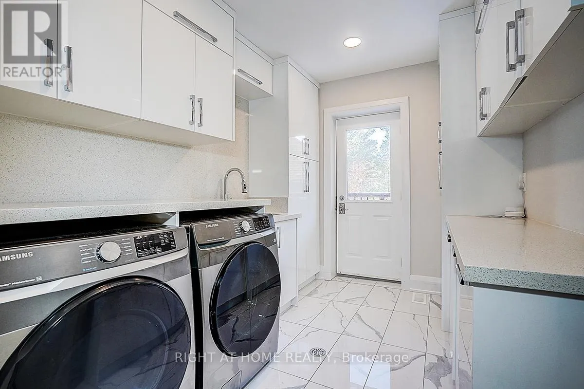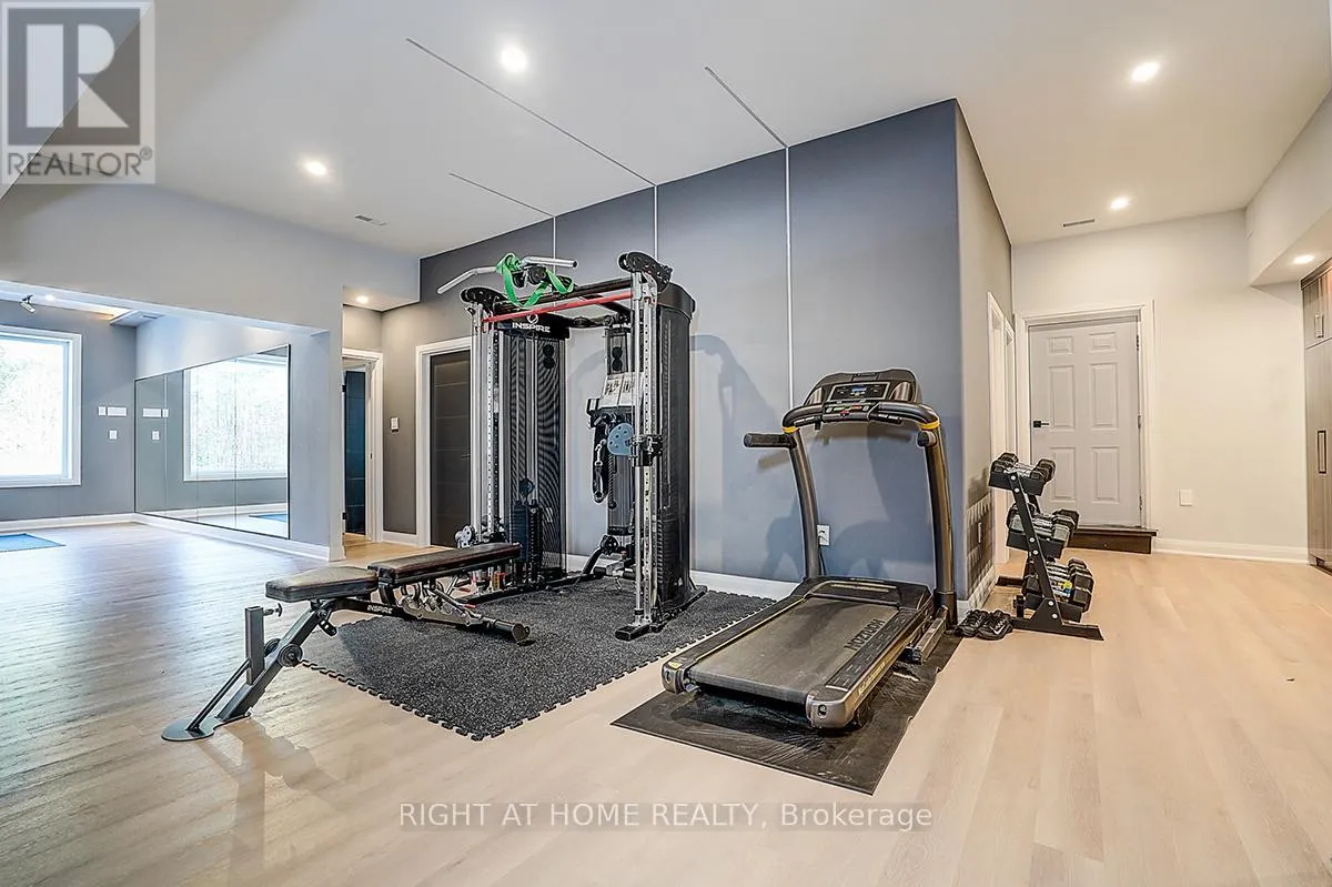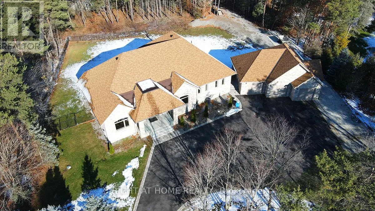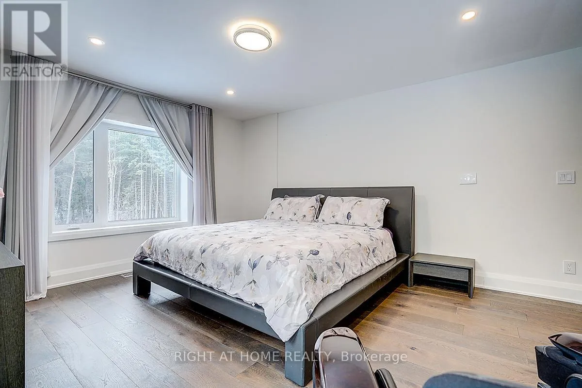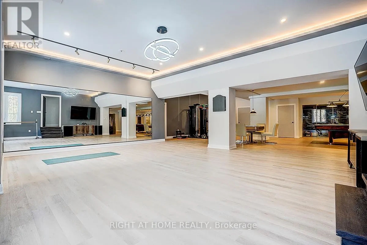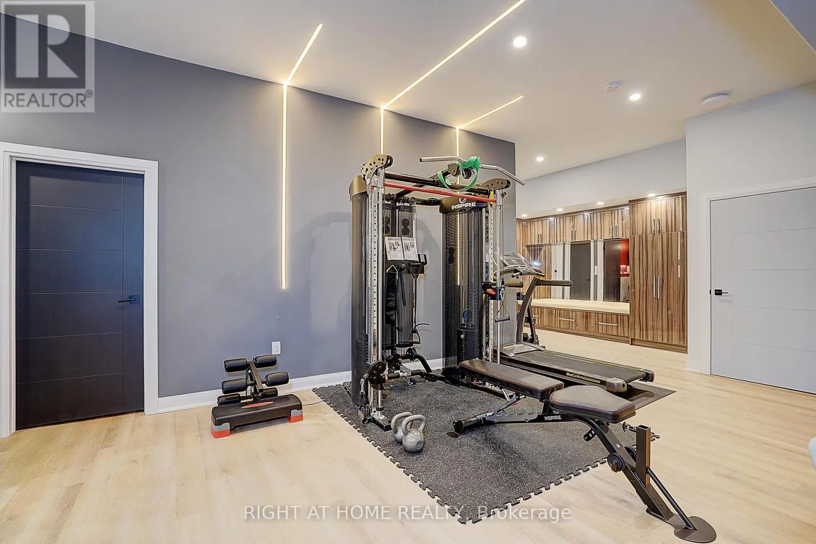 Aurora Rd & Mccowan Rare Modern French Luxury Bungalow Estate. A rare offering in today's market, this exceptional Modern French-inspired luxury bungalow redefines high-end living by seamlessly combining estate-level luxury with unparalleled everyday convenience-all on one expansive level. Set on a 2-acre private lot backing onto an endless forest, the home welcomes you with a crescent-shaped driveway and refined architectural detailing. Inside 12' ceiling (Main), solid walnut chevron flooring, custom plaster wall trims, medallion ceilings, and a dramatic floating marble TV and fireplace wall reflect timeless Modern French craftsmanship. The gourmet kitchen is fully equipped with elite appliances, including a 72" see-through Sub-Zero refrigerator and freezer, Wolf gas cooktop, and Miele built-in coffee machine, steam oven, and dishwasher-designed to elevate daily living hile supporting effortless entertaining. The main-level primary suite offers a true spa retreat, featuring a luxury ensuite bathroom with wet sauna, premium fixtures, and smart toilets that enhance comfort and hygiene throughout. An elegant entryway with floating custom cabinetry provides discreet and functional storage. What truly sets this bungalow apart is its fully developed 3,000-square-foot lower level, thoughtfully designed for both lifestyle and recreation. It includes a professional dance studio (10'), gym, walk-in temperature-controlled wine cellar, traditional wood sauna, snooker area, private Home Theater, and an additional ensuite bedroom-ensuring space for every passion without sacrificing main-floor convenience. The three-car garage features a golf simulator room and an upper loft offering exceptional flexibility. Outdoor living is elevated with a super-sized concrete rooftop deck, creating a four-season retreat surrounded by nature. An extended concrete driveway into the backyard further enhances functionality and scale. (id:27476)