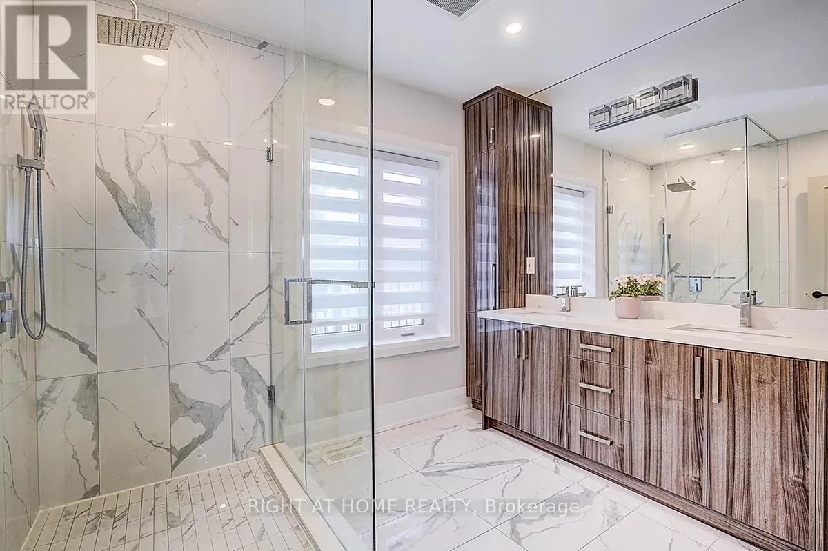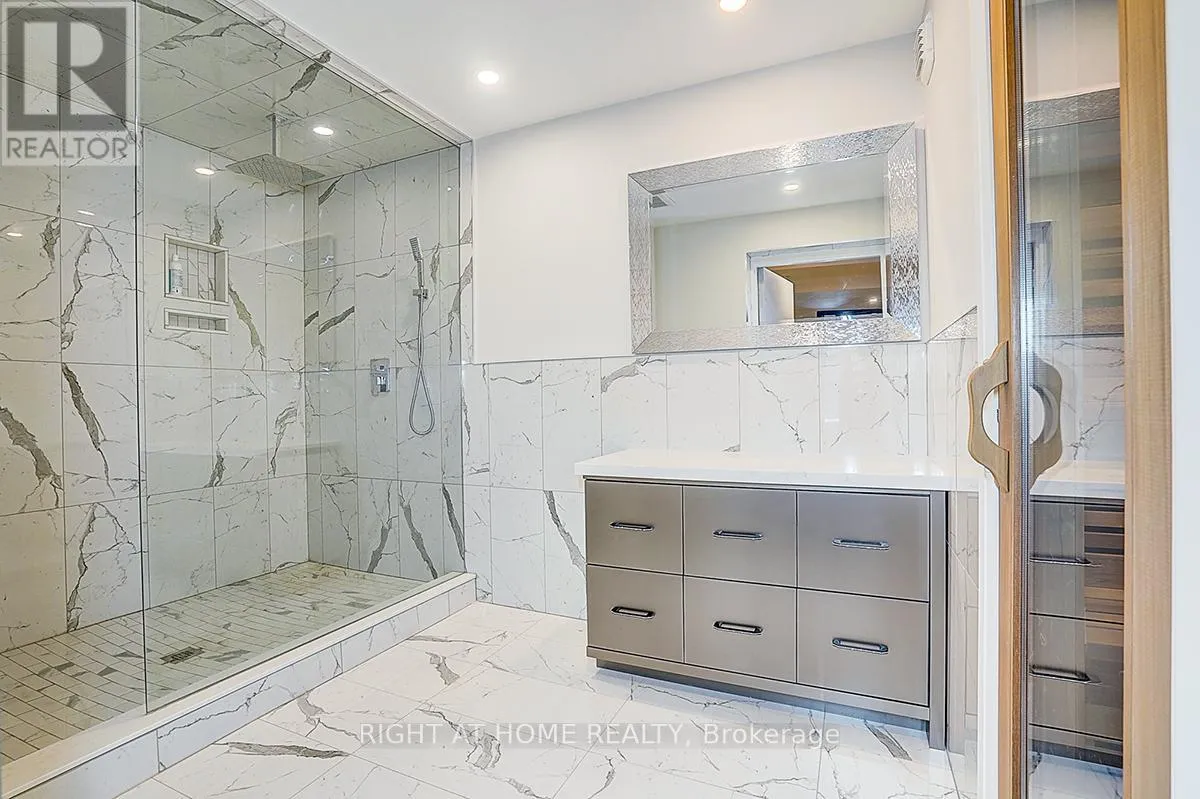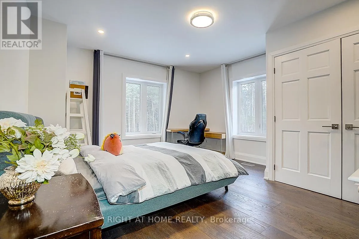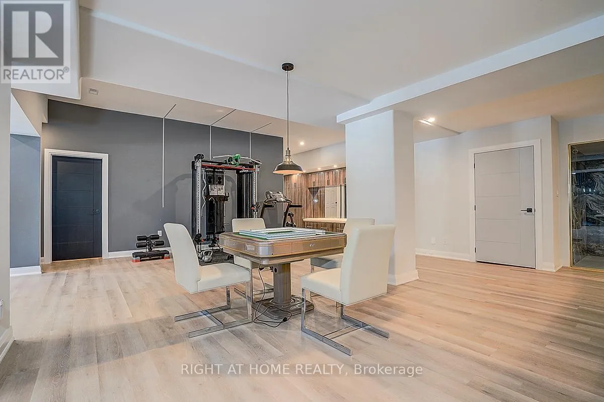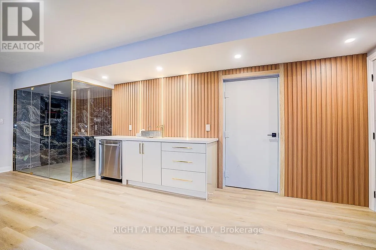 Aurora Rd & Mccowan Rare Modern French Luxury Bungalow Estate. A rare offering in today's market, this exceptional Modern French-inspired luxury bungalow redefines high-end living by seamlessly combining estate-level luxury with unparalleled everyday convenience-all on one expansive level. Set on a 2-acre private lot backing onto an endless forest, the home welcomes you with a crescent-shaped driveway and refined architectural detailing. Inside 12' ceiling (Main), solid walnut chevron flooring, custom plaster wall trims, medallion ceilings, and a dramatic floating marble TV and fireplace wall reflect timeless Modern French craftsmanship. The gourmet kitchen is fully equipped with elite appliances, including a 72" see-through Sub-Zero refrigerator and freezer, Wolf gas cooktop, and Miele built-in coffee machine, steam oven, and dishwasher-designed to elevate daily living hile supporting effortless entertaining. The main-level primary suite offers a true spa retreat, featuring a luxury ensuite bathroom with wet sauna, premium fixtures, and smart toilets that enhance comfort and hygiene throughout. An elegant entryway with floating custom cabinetry provides discreet and functional storage. What truly sets this bungalow apart is its fully developed 3,000-square-foot lower level, thoughtfully designed for both lifestyle and recreation. It includes a professional dance studio (10'), gym, walk-in temperature-controlled wine cellar, traditional wood sauna, snooker area, private Home Theater, and an additional ensuite bedroom-ensuring space for every passion without sacrificing main-floor convenience. The three-car garage features a golf simulator room and an upper loft offering exceptional flexibility. Outdoor living is elevated with a super-sized concrete rooftop deck, creating a four-season retreat surrounded by nature. An extended concrete driveway into the backyard further enhances functionality and scale. (id:27476)