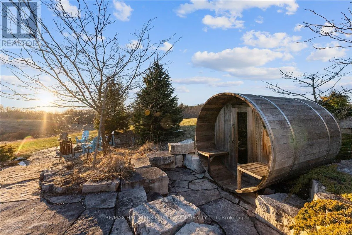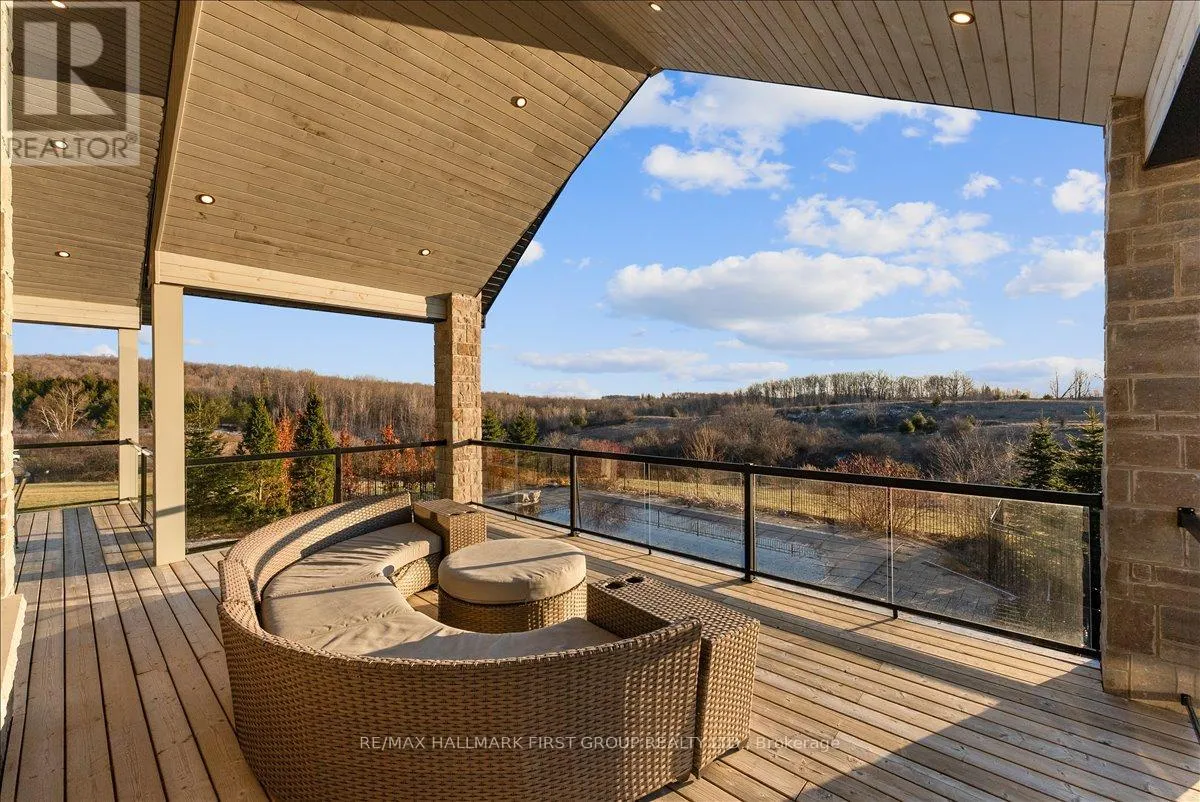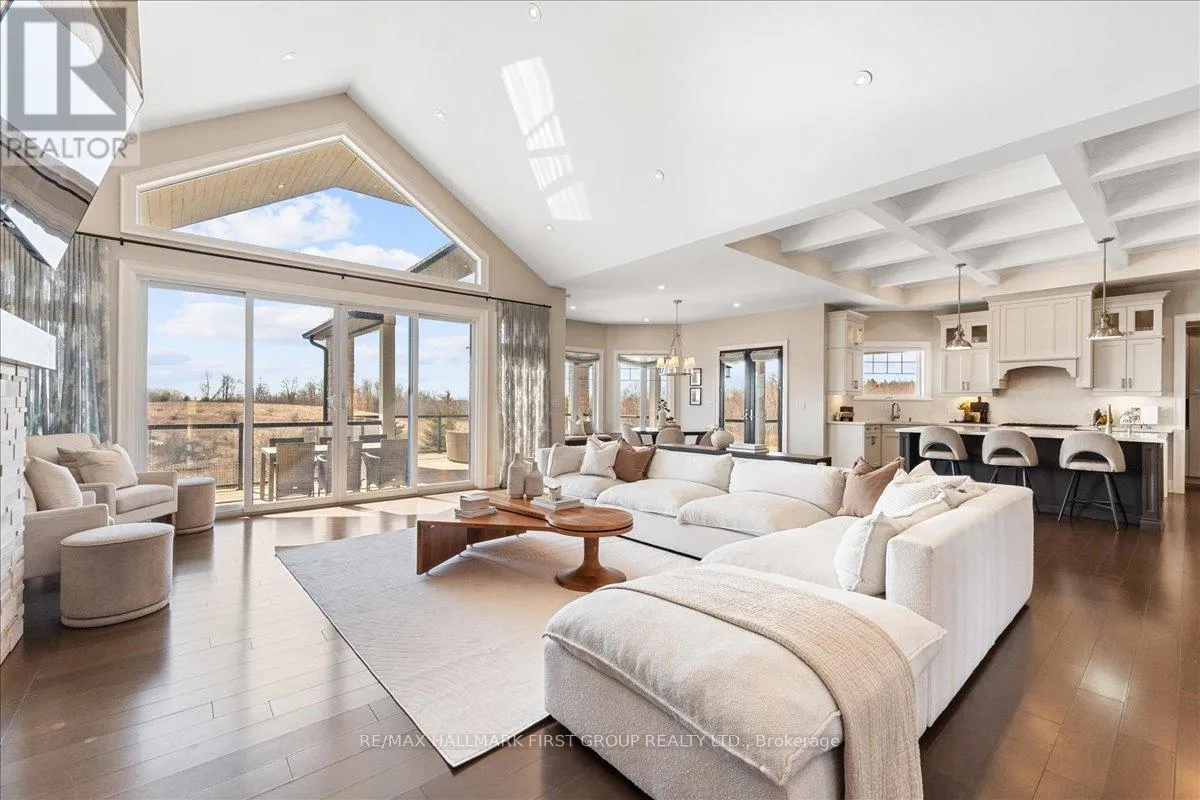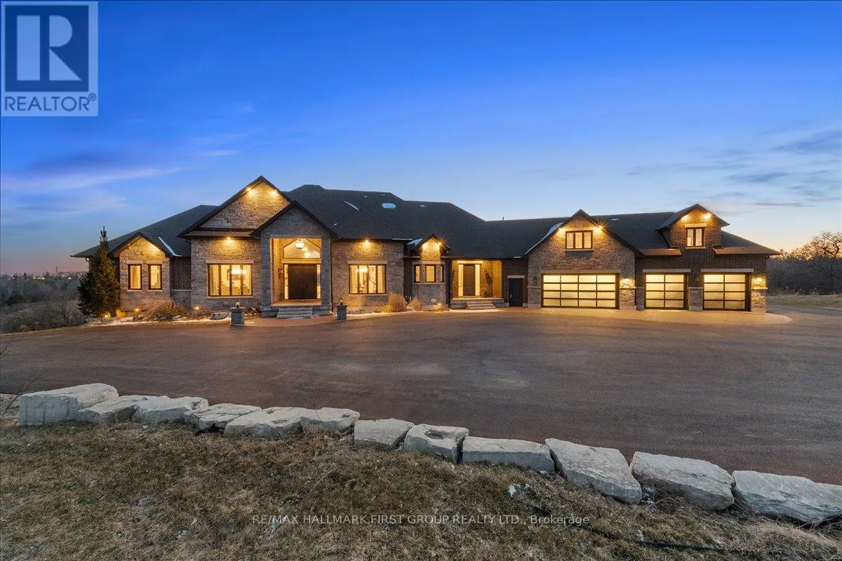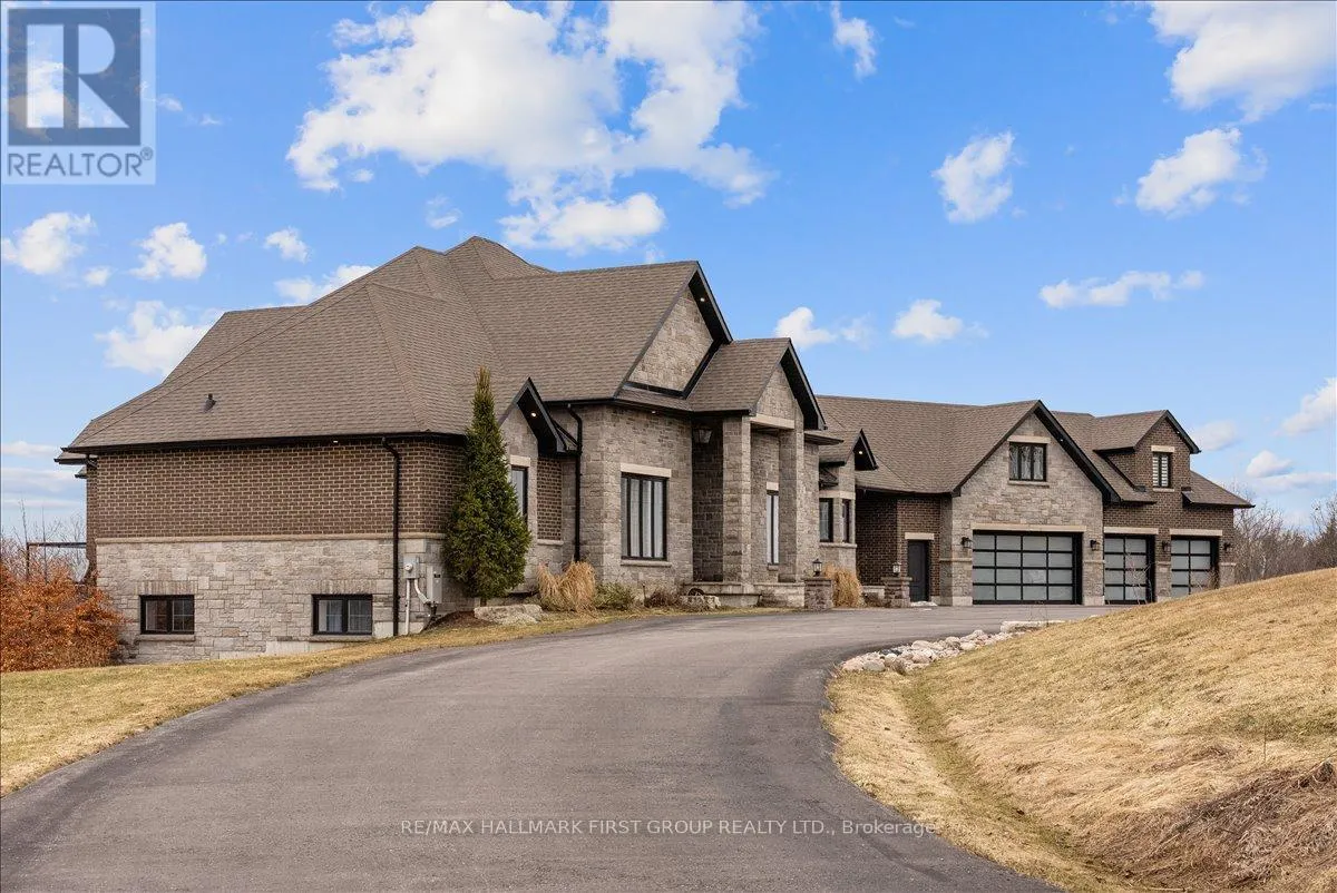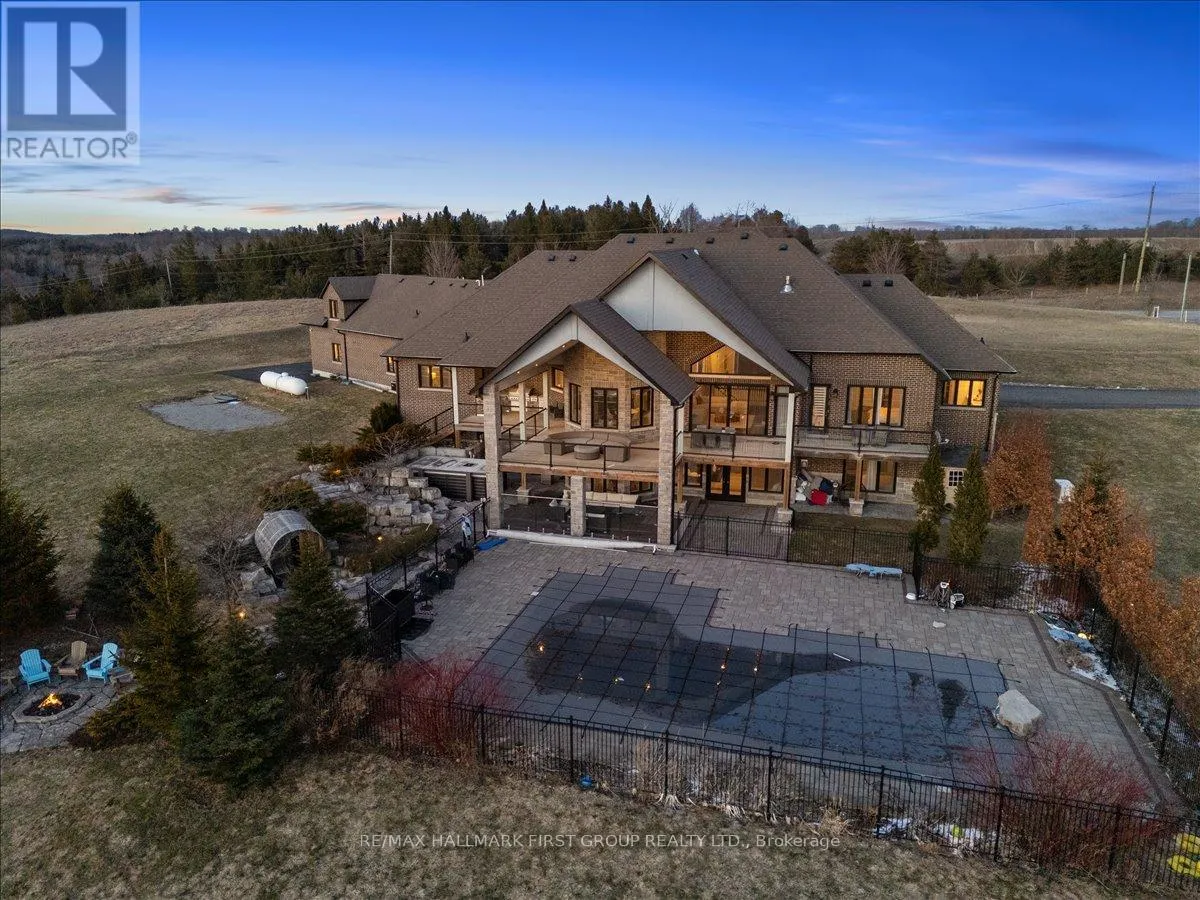 York Durham Line & Aurora Road Welcome to 14806 York Durham Line-an extraordinary custom-built stone & brick estate set on a breathtaking 11.3-acre private retreat in Whitchurch-Stouffville. Offering nearly 8,000 sq ft of refined living space, this home showcases exceptional craftsmanship, upscale finishes, and a layout designed for both everyday comfort and grand entertaining. The open-concept great room impresses with soaring vaulted ceilings and a striking 4-ft linear fireplace, while the chef-inspired kitchen features maple cabinetry, stone countertops, a large centre island, premium Thermador professional appliances, and a well-appointed butler's pantry with abundant storage, an additional fridge, and prep sink-perfect for seamless entertaining. The luxurious primary suite is a true sanctuary, complete with coffered ceilings, a spa-like 5-piece ensuite, custom walk-in closet, and a private balcony overlooking the serene grounds. Each additional bedroom is generously sized with its own private ensuite and large closet, offering comfort and privacy for family and guests alike. A versatile loft provides extended living space with potential for multi-generational use, while the walk-out lower level is fully equipped with a theatre room, gym, and bar-perfect for entertaining.Step outside to your own resort-style oasis featuring a saltwater pool, sauna, hot tub, and expansive outdoor living spaces surrounded by nature and complete privacy. Located minutes to Musselman's Lake, Stouffville, Ballantrae, Aurora, Markham, Hwy 404, York Regional Forest, and approximately 40 minutes to Toronto, this property offers the perfect balance of luxury living and convenient access. A professional feasibility report has been completed and will be provided, outlining that the property supports continued use as a luxury estate with potential for additional accessory structures (such as a cabana or pool house), while preserving its natural surroundings and long-term privacy. (id:27476)