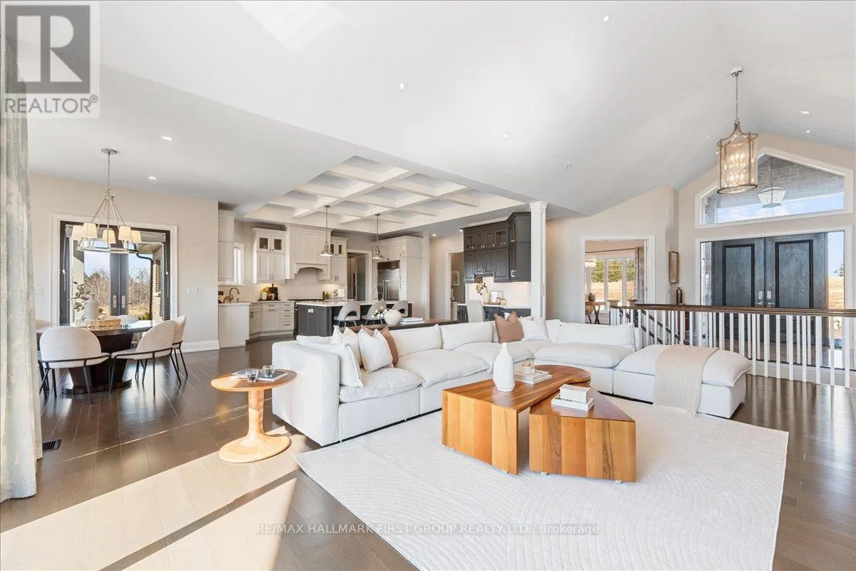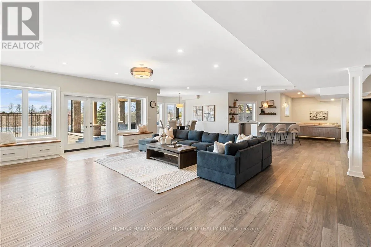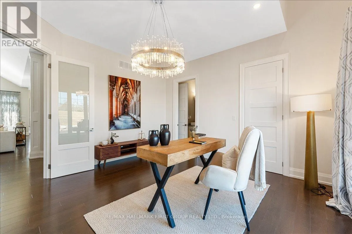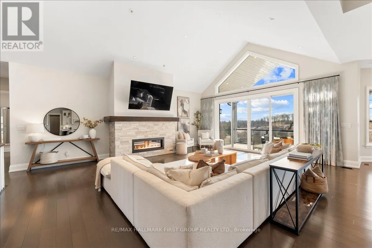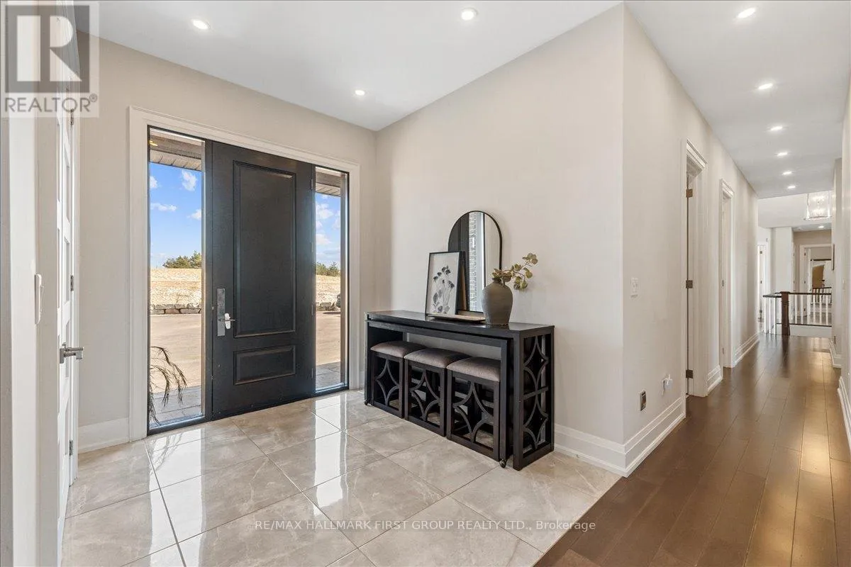 York Durham Line & Aurora Road Welcome to 14806 York Durham Line-an extraordinary custom-built stone & brick estate set on a breathtaking 11.3-acre private retreat in Whitchurch-Stouffville. Offering nearly 8,000 sq ft of refined living space, this home showcases exceptional craftsmanship, upscale finishes, and a layout designed for both everyday comfort and grand entertaining. The open-concept great room impresses with soaring vaulted ceilings and a striking 4-ft linear fireplace, while the chef-inspired kitchen features maple cabinetry, stone countertops, a large centre island, premium Thermador professional appliances, and a well-appointed butler's pantry with abundant storage, an additional fridge, and prep sink-perfect for seamless entertaining. The luxurious primary suite is a true sanctuary, complete with coffered ceilings, a spa-like 5-piece ensuite, custom walk-in closet, and a private balcony overlooking the serene grounds. Each additional bedroom is generously sized with its own private ensuite and large closet, offering comfort and privacy for family and guests alike. A versatile loft provides extended living space with potential for multi-generational use, while the walk-out lower level is fully equipped with a theatre room, gym, and bar-perfect for entertaining.Step outside to your own resort-style oasis featuring a saltwater pool, sauna, hot tub, and expansive outdoor living spaces surrounded by nature and complete privacy. Located minutes to Musselman's Lake, Stouffville, Ballantrae, Aurora, Markham, Hwy 404, York Regional Forest, and approximately 40 minutes to Toronto, this property offers the perfect balance of luxury living and convenient access. A professional feasibility report has been completed and will be provided, outlining that the property supports continued use as a luxury estate with potential for additional accessory structures (such as a cabana or pool house), while preserving its natural surroundings and long-term privacy. (id:27476)