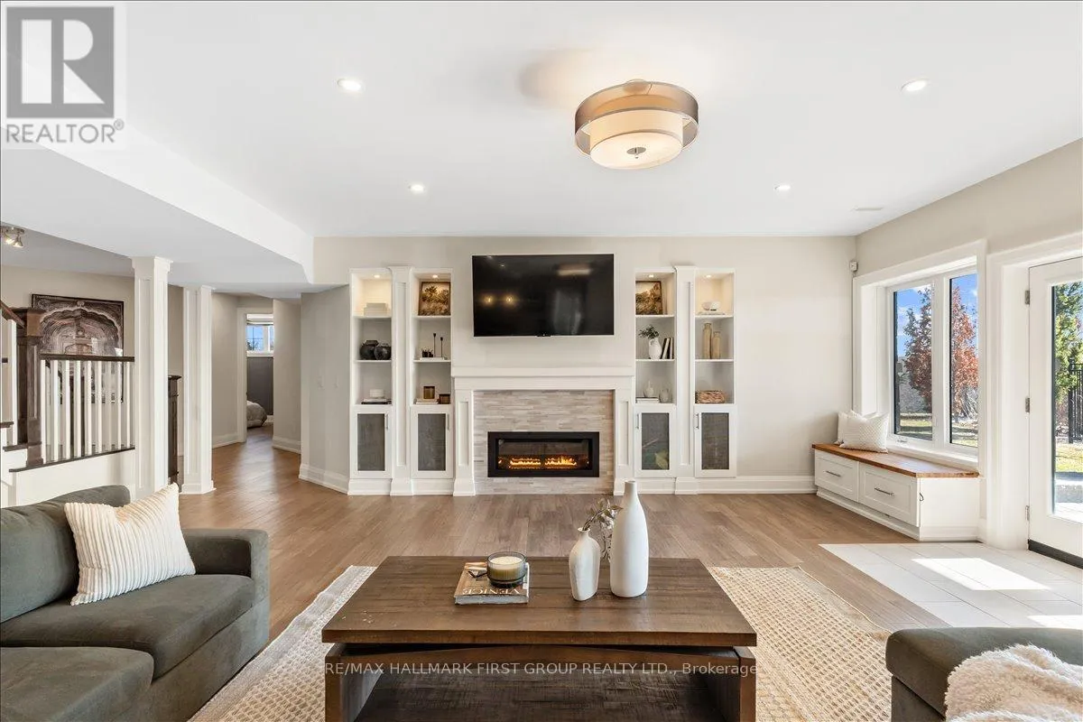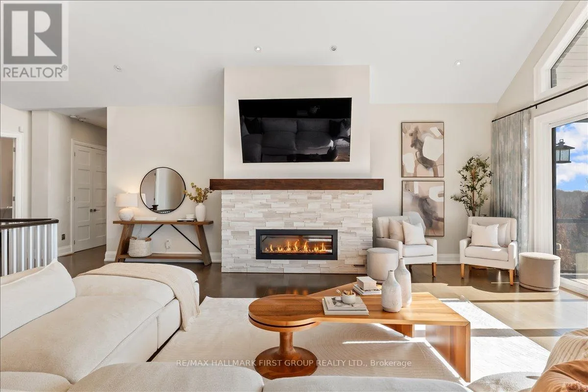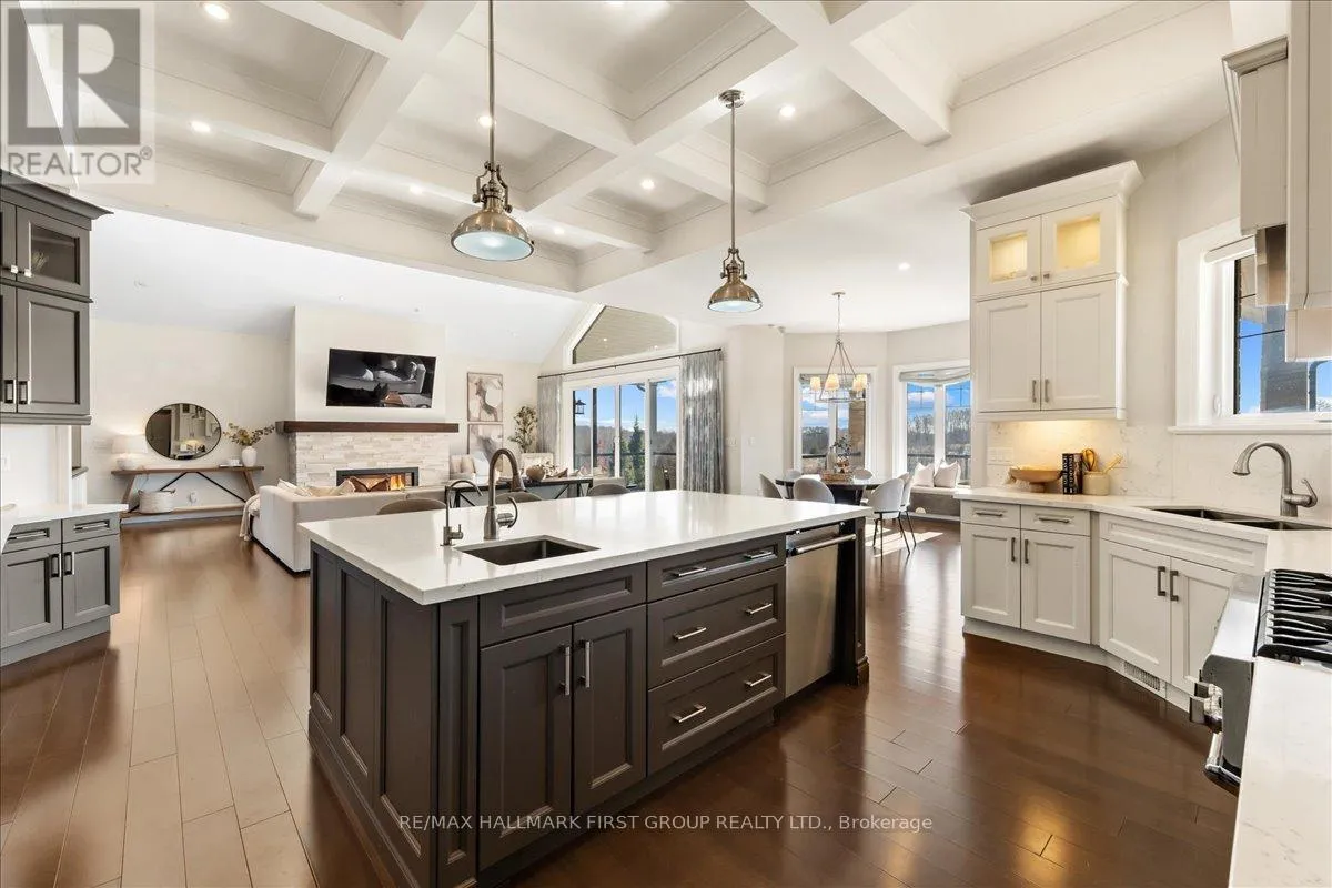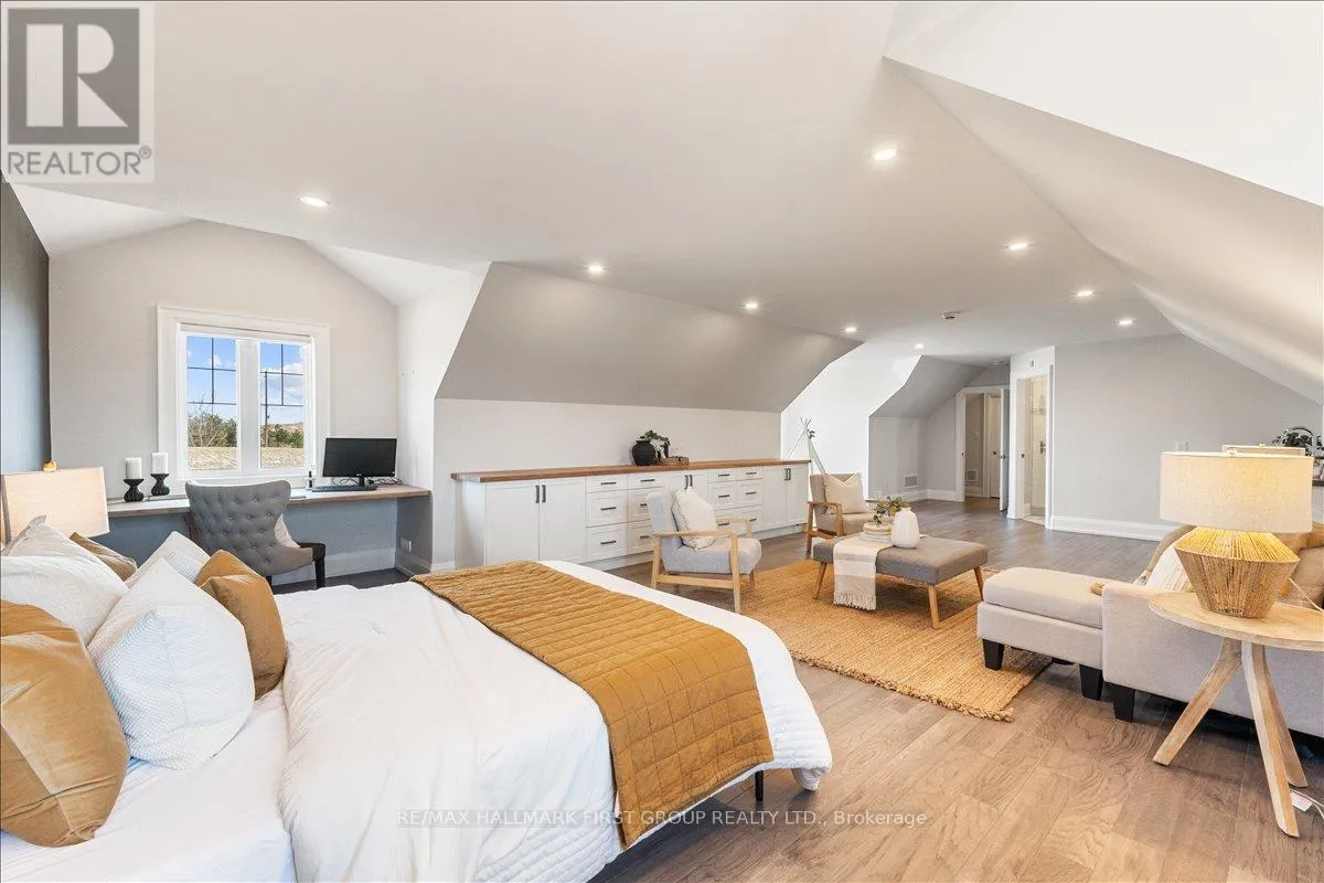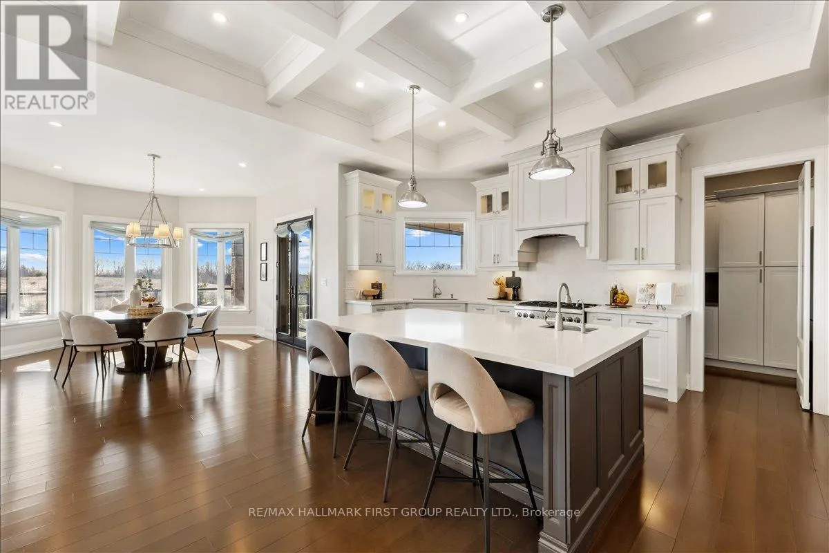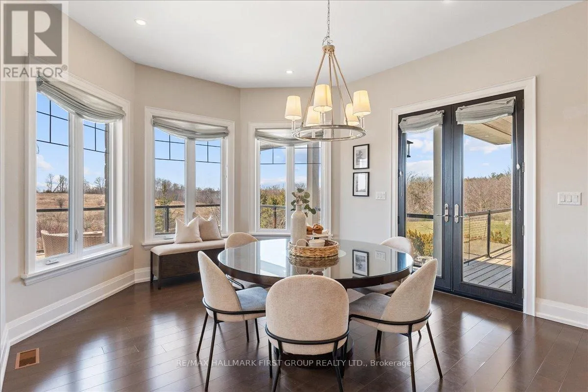 York Durham Line & Aurora Road Welcome to 14806 York Durham Line-an extraordinary custom-built stone & brick estate set on a breathtaking 11.3-acre private retreat in Whitchurch-Stouffville. Offering nearly 8,000 sq ft of refined living space, this home showcases exceptional craftsmanship, upscale finishes, and a layout designed for both everyday comfort and grand entertaining. The open-concept great room impresses with soaring vaulted ceilings and a striking 4-ft linear fireplace, while the chef-inspired kitchen features maple cabinetry, stone countertops, a large centre island, premium Thermador professional appliances, and a well-appointed butler's pantry with abundant storage, an additional fridge, and prep sink-perfect for seamless entertaining. The luxurious primary suite is a true sanctuary, complete with coffered ceilings, a spa-like 5-piece ensuite, custom walk-in closet, and a private balcony overlooking the serene grounds. Each additional bedroom is generously sized with its own private ensuite and large closet, offering comfort and privacy for family and guests alike. A versatile loft provides extended living space with potential for multi-generational use, while the walk-out lower level is fully equipped with a theatre room, gym, and bar-perfect for entertaining.Step outside to your own resort-style oasis featuring a saltwater pool, sauna, hot tub, and expansive outdoor living spaces surrounded by nature and complete privacy. Located minutes to Musselman's Lake, Stouffville, Ballantrae, Aurora, Markham, Hwy 404, York Regional Forest, and approximately 40 minutes to Toronto, this property offers the perfect balance of luxury living and convenient access. A professional feasibility report has been completed and will be provided, outlining that the property supports continued use as a luxury estate with potential for additional accessory structures (such as a cabana or pool house), while preserving its natural surroundings and long-term privacy. (id:27476)