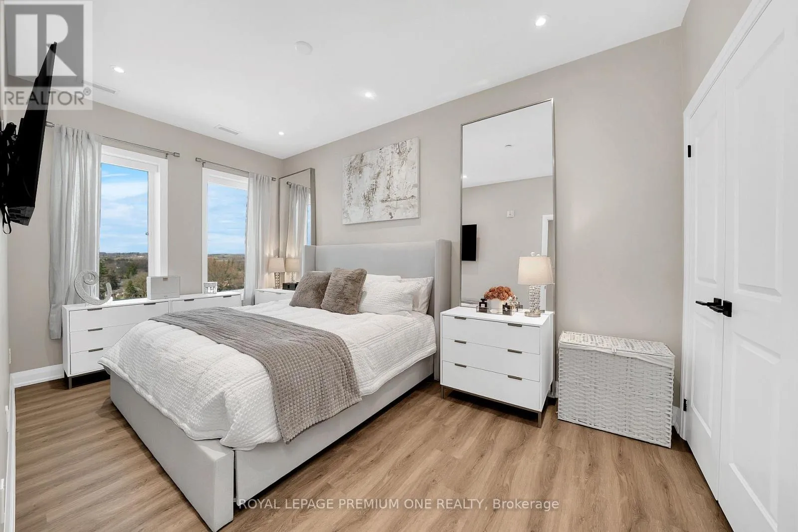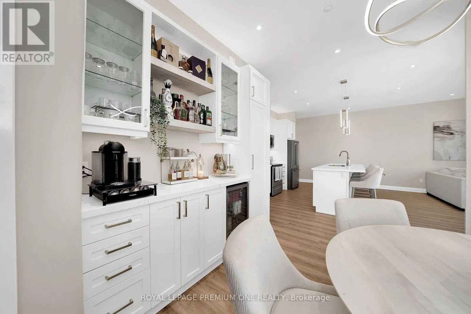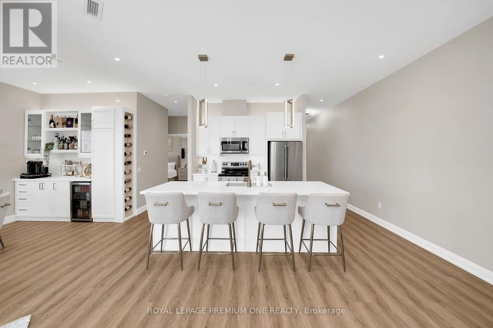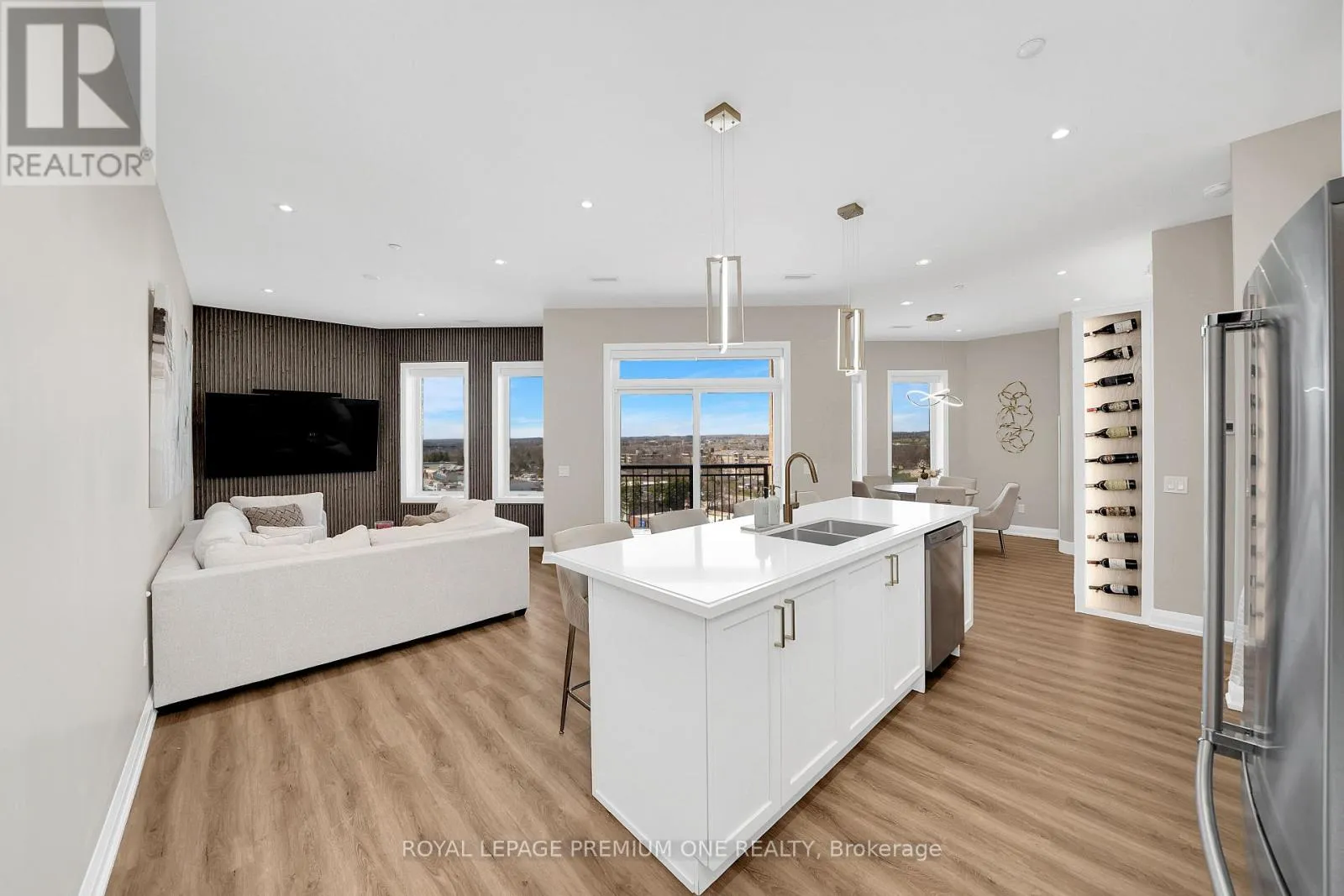 Cross Streets: Main street and weldon. ** Directions: 5917 main street. Luxury Penthouse Living - Rare Corner Unit with Premium Upgrades. 1,165 sq ft penthouse suite, plus a 60 sq ft private balcony, perfectly positioned on a desirable main street-facing corner. featuring 2 spacious bedrooms, 2 full bathrooms, and 2 premium parking spots. This rare corner unit offers 10-foot ceilings, exceptional natural light, and is the only layout of its kind on each floor. The standout custom bar includes a quartz countertop, built-in mini fridge, cabinetry, pantry, and an illuminated wine rack-perfect for entertaining. Additional highlights: Custom blinds in every room + automatic patio blinds Redesigned primary bedroom layout for enhanced space and flow Unique rounded HVAC detail for a modern finish Family Room Feature Wall with mounted TV and outlets Energy-efficient Geothermal building - heat included. Parking & Storage: 2 parking spots (including VIP spot beside elevators)VIP locker conveniently located in front of one parking space Maintenance fees include both parking spots Building Amenities :Party Room, Games Room, Fully equipped Gym. Prime Location: Conveniently located across from everyday essentials including No Frills, Dollarama, and Wendy's. Close to public transit, GO station, schools, parks, shopping, and more. (id:27476)