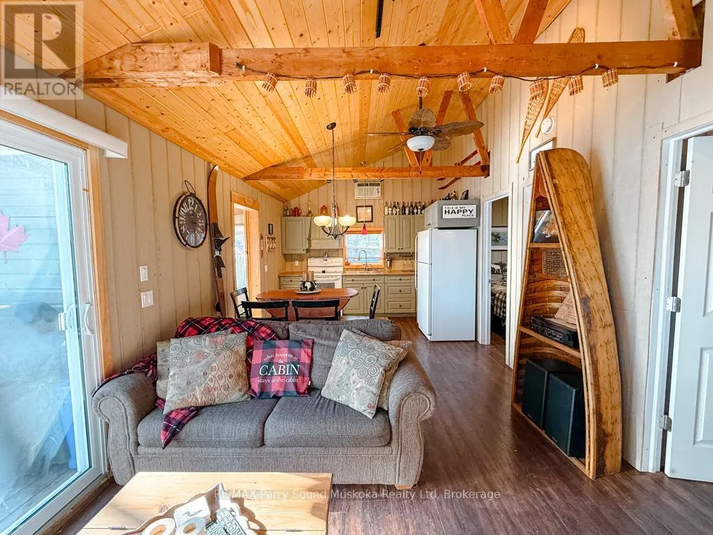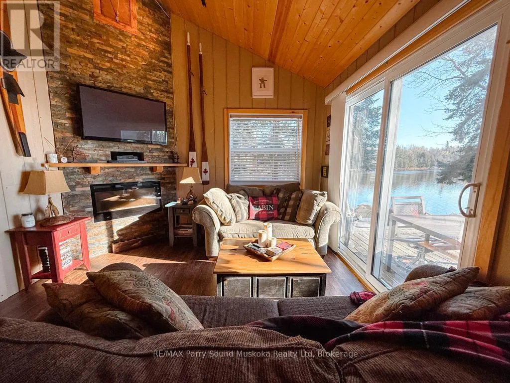 Cross Streets: Hwy 124 and Church St. ** Directions: Hwy 124 to Church St. Dunchurch. Nestled among mature trees in the heart of Dunchurch, this charming two-bedroom, one-bath cottage offers 210 feet of gorgeous shoreline with a mix of rugged Canadian Shield rock and a sandy beach. The level lot provides easy access to the water and stunning, expansive views that perfectly capture lakeside living. Inside the cottage is charming and tastefully decorated with a thoughtful layout that makes the most of the space. The entrance area doubles as a versatile bonus room, featuring a pull-out futon and sliding door for privacy, ideal for overnight guests. A cozy bunkie offers additional sleeping space for visitors, making this property perfect for families or weekend getaways. Newer upgrades include, septic, PVC plumbing, electrical panel, metal roof, and hot water tank, windows, doors and insulation. Located on a municipally maintained road, this property provides convenient year-round access and is within walking distance to all village amenities, including the LCBO, nursing station, park, community centre, marina, restaurant, and the popular Duck Rock General Store. Enjoy four season recreation right from your doorstep-boating, fishing, and water sports in summer; ATV and walking trails year-round; and groomed snowmobile and snowshoeing trails in winter. Whether you're looking for a peaceful retreat, a family getaway, or a smart investment with rental potential, this Dunchurch gem has it all. Just 30 minutes to Parry Sound or Sundridge. Be sure to check out the video tour! (id:27476)