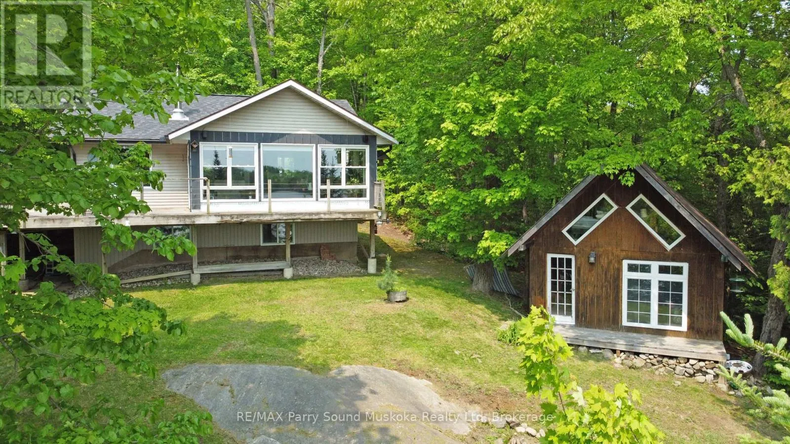 Cross Streets: Captain Estates / Dunchurch Estates. ** Directions: Hwy 124 to Dunchurch Estates Rd to Captain Estates. DESIRABLE WHITESTONE LAKE 4 SEASON GEM! YEAR ROUND WATERFRONT COTTAGE RETREAT or HOME! Enhance your investment with Permitted Cottage Rental Opportunity! Private location; Nestled at the end of the road with year round access, Bright Open Concept design w Cozy airtight pacific energy wood stove, Updated kitchen, Great room features wall of windows to enjoy stunning lake views, Walk out to wrap around deck, Main floor primary bedroom + 2 guest rooms in the walkout lower level, Forced air furnace + economical heat pump w air conditioning, Family & guests will enjoy the Pine enhanced Bunkie with loft 16' x 12'.4", Handy Workshop 20' x 20', Shed for the toys 12' x 10'6", Private road maintained year round by an excellent road association, 95 ft of shoreline, 0.64 Acres offers excellent privacy, Great swimming from your private dock, Miles of boating, water sports & fishing enjoyment, Drive or Boat into Dunchurch for amenities, Community Centre, Nurses station, Liquor Store, Just 25 mins to Parry Sound, Easy direct HWY access to GTA, This Whitestone Lake Gem Awaits! (id:27476)