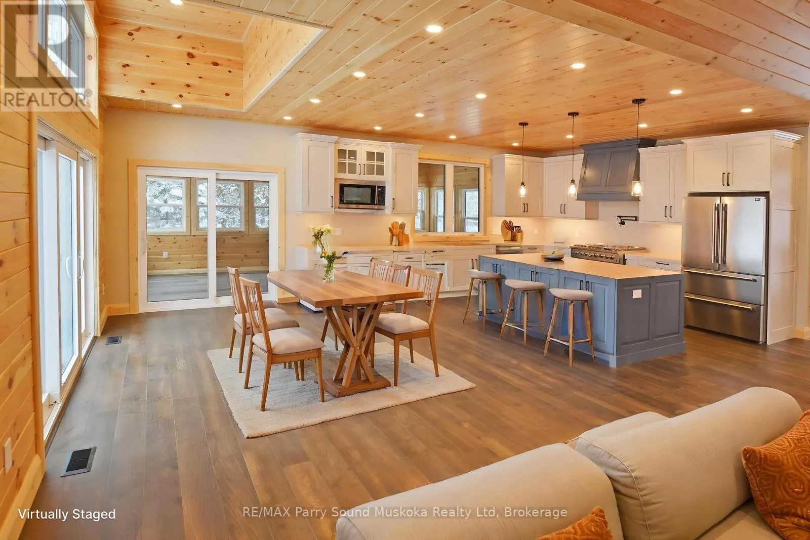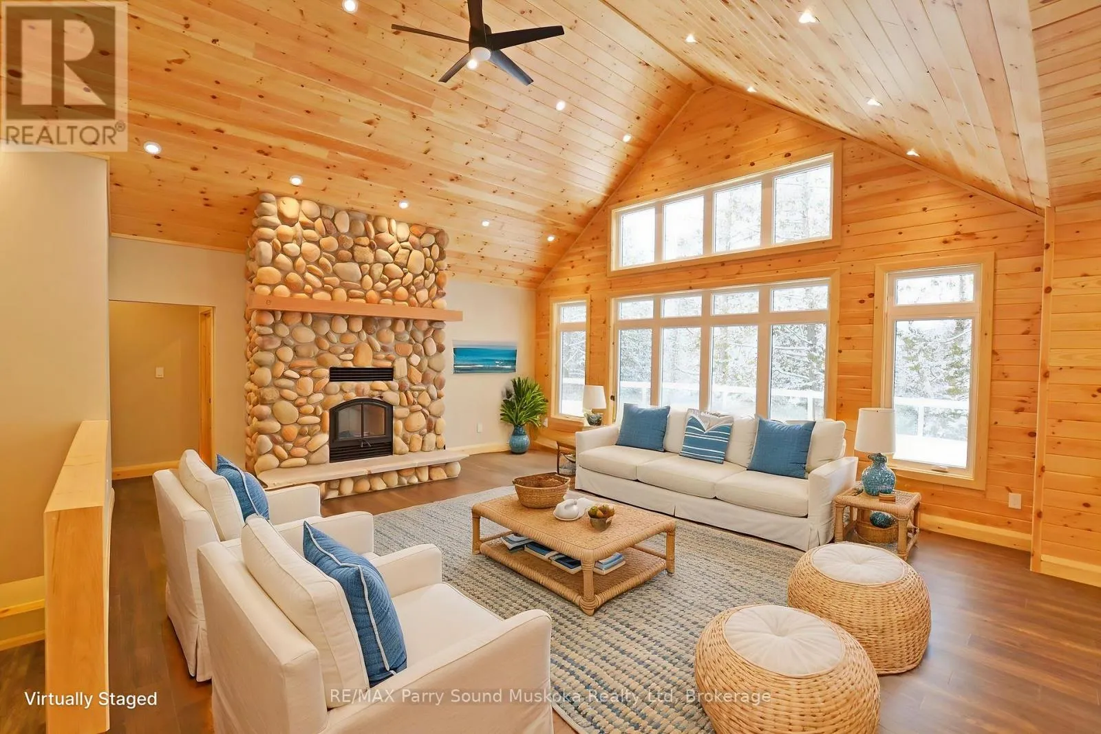 Cross Streets: 400, 124, E Townline, Tahinca, Smokeys. ** Directions: Hwy 400 to Hwy 124, right to E Townline Rd, right to Tahinca Rd, right to Smokeys Rd. WHITESTONE LAKE EXECUTIVE COTTAGE! Over 314 ft Shoreline! 1.48 Acres of Privacy! Custom Built 4 Season Cottage for the Discriminating Buyer! 3800 sq ft of luxury boasts full finished Walkout Lower Level! 5 bedrooms, 3 baths, Bright Open Concept Design, Wall of windows wrapped in nature, Commanding Great room boasts Vaulted Pine ceilings, LED pot lighting throughout, Stunning floor to ceiling custom wood burning fireplace, Engineered hardwood throughout main level, Dream Chef's kitchen with huge island, Quartz counters, Abundance of custom cabinetry, Extend your days to enjoy the 3 season Pine Muskoka room with walk out to expansive deck, Designed for entertaining & lake gazing, Primary bedroom enhanced with custom windows, Luxurious ensuite bath w in floor heating, Soaker tub viewing nature, Custom shower & walk out to deck, Finished walkout lower level boasts Recreation/Media room, Wet bar with custom cabinetry, Guest rooms, 3rd bath, Family room features Custom Stone fireplace (propane gas), Easy care; Luxury vinyl plank flooring, Walkout to lakeside (custom granite steps), Upgraded with in-floor heating in main floor foyer and main floor baths, Hand crafted custom pine trim throughout, Pine doors, Appointed with hi-efficiency propane furnace, Air exchanger, Drilled well, Naturalists will love the surrounding forested acreage, Enjoy great swimming, Fabulous canoe & kayak excursions, Miles of Boating & Fishing Enjoyment, 65.2 km of shoreline to explore, Near by Village of Dunchurch offers amenities, Liquor store, Nurses station, Community Center, Boat launch, Excellent highway access to Parry Sound & Hwy 400, Located on a private road kept open year round with shared costs of only $400 per year, Make this ONE of a KIND PROPERTY YOURS! ONLY 2.5 HOURS to GTA, PRIVACY ABOUNDS! (id:27476)
