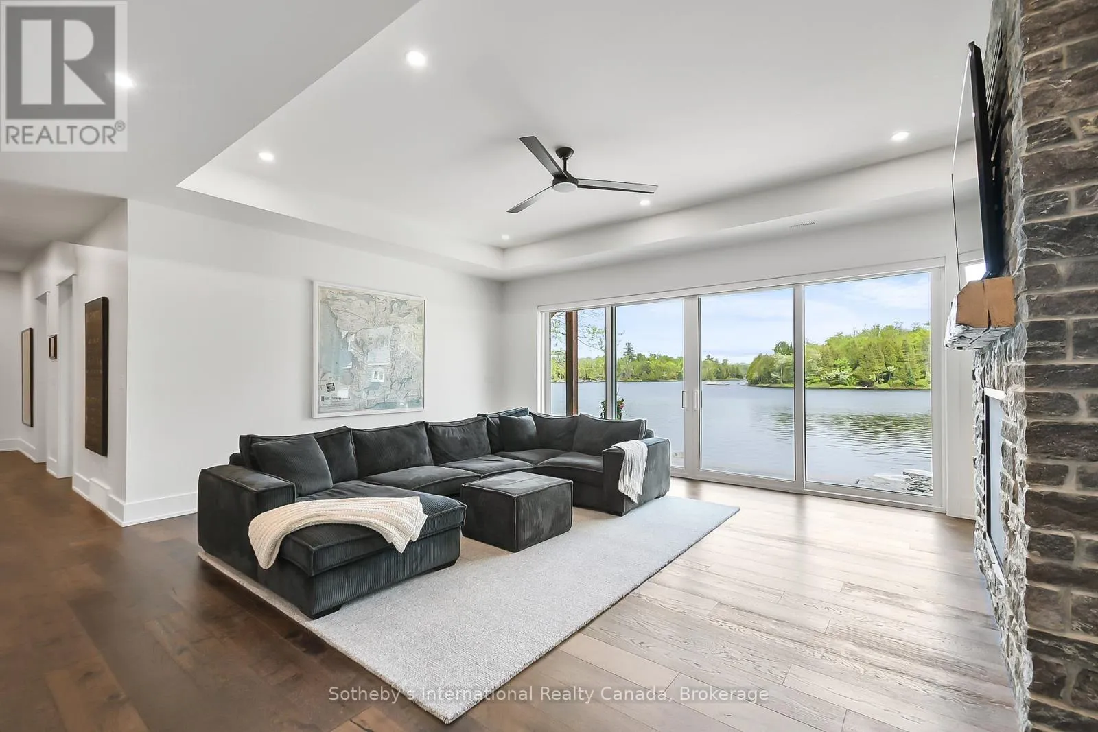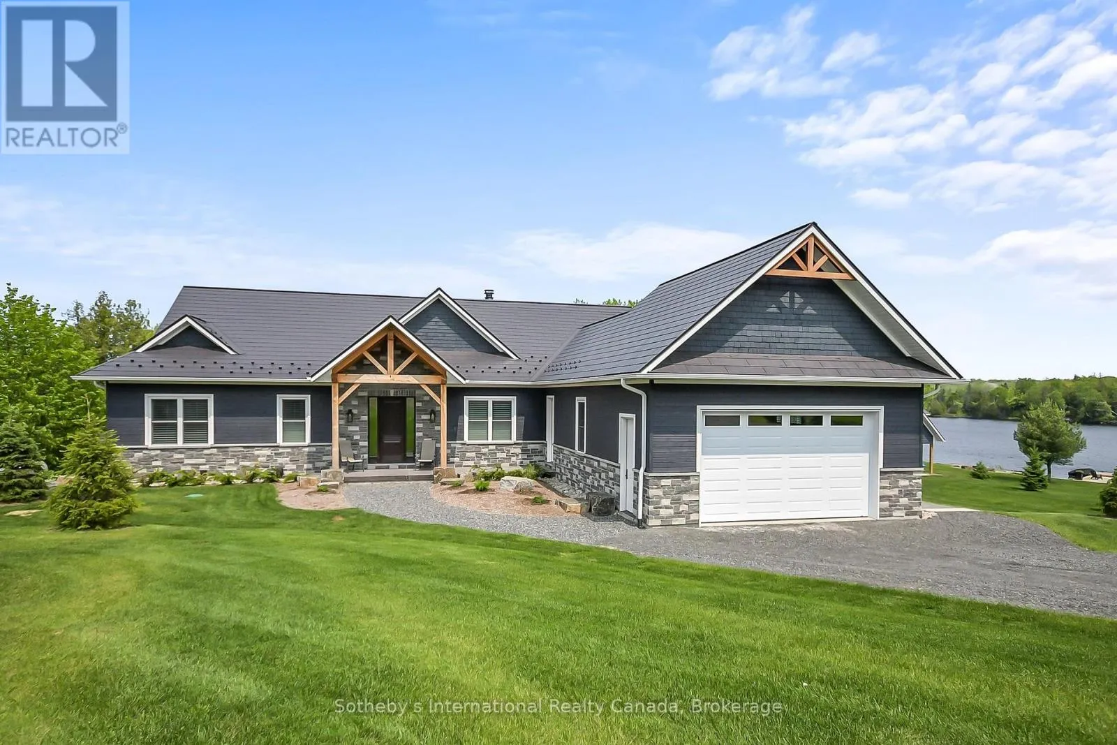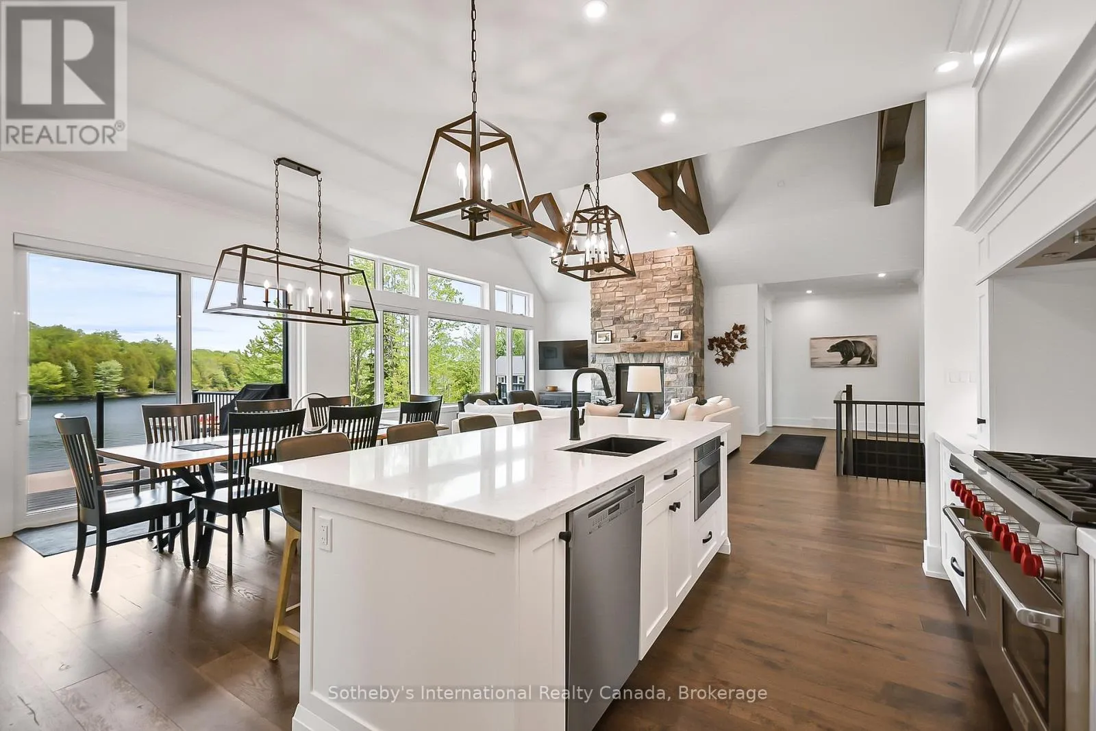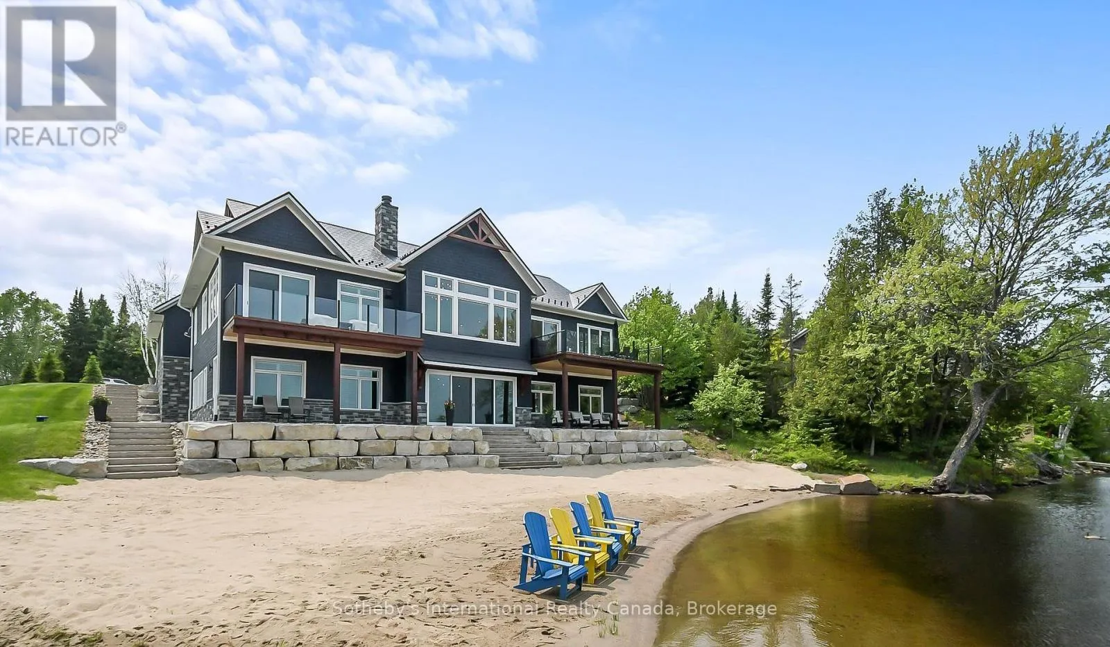 Cross Streets: Canning Road - Bears Paw. ** Directions: Balsam Road - Canning Road - Bears Paw. Welcome to 19 Bears Paw, a Muskoka styled luxury waterfront new build on sought-after Whitestone Lake, offering a private clean, sandy shoreline and all-day sun. Set on a gently sloping landscaped lot, this turnkey, fully winterized property delivers approximately 5,000 sq ft of luxury living space across two levels.The main level features vaulted ceilings, wide-plank hardwood floors, and custom millwork throughout. The gourmet kitchen is equipped with a Wolf stove, Miele fridge, beverage fridge, and ice maker. The home offers 5 bedrooms, including a main floor primary suite with a spa-inspired ensuite and walk-in closets. Second primary bedroom with ensuite bathroom. The walkout lower level is ideal for entertaining, complete with a wet bar, games area, gas fireplace, home gym, and sauna. A Heated garage. A rare opportunity to own a premium waterfront home or cottage with high-end finishes and stunning landscaping in a desirable four-season location. Incredible value here, enjoy the Muskoka lifestyle for a fraction of the price here at Whitestone Lake. (id:27476)