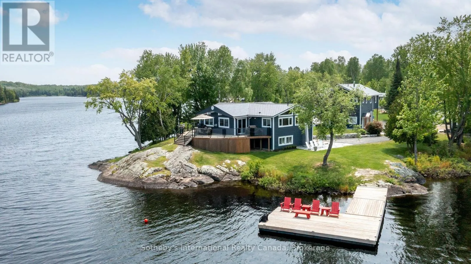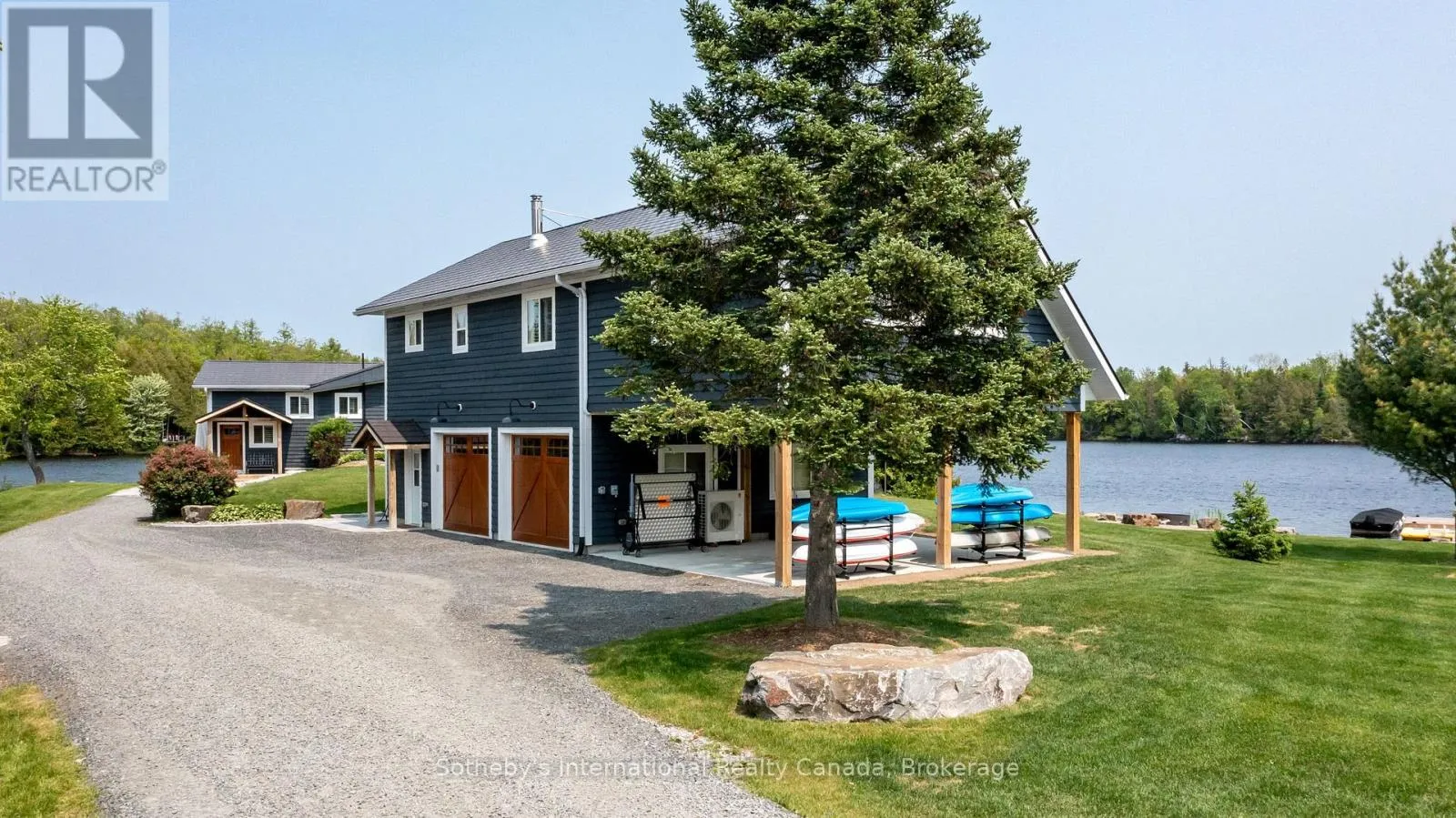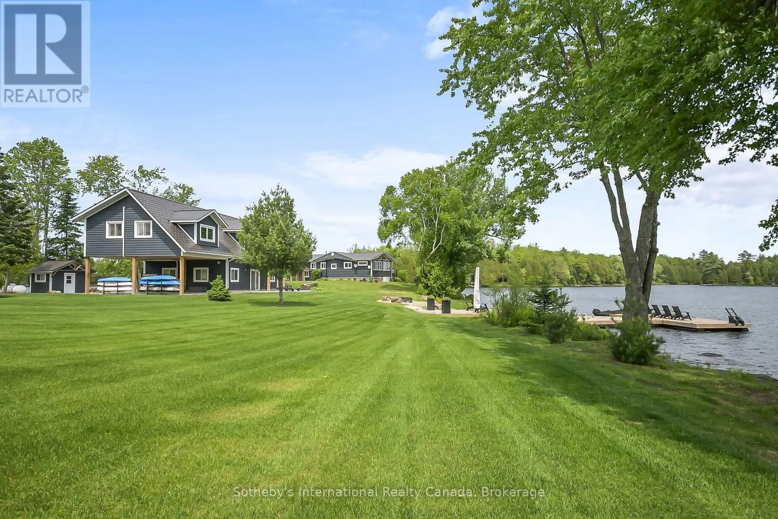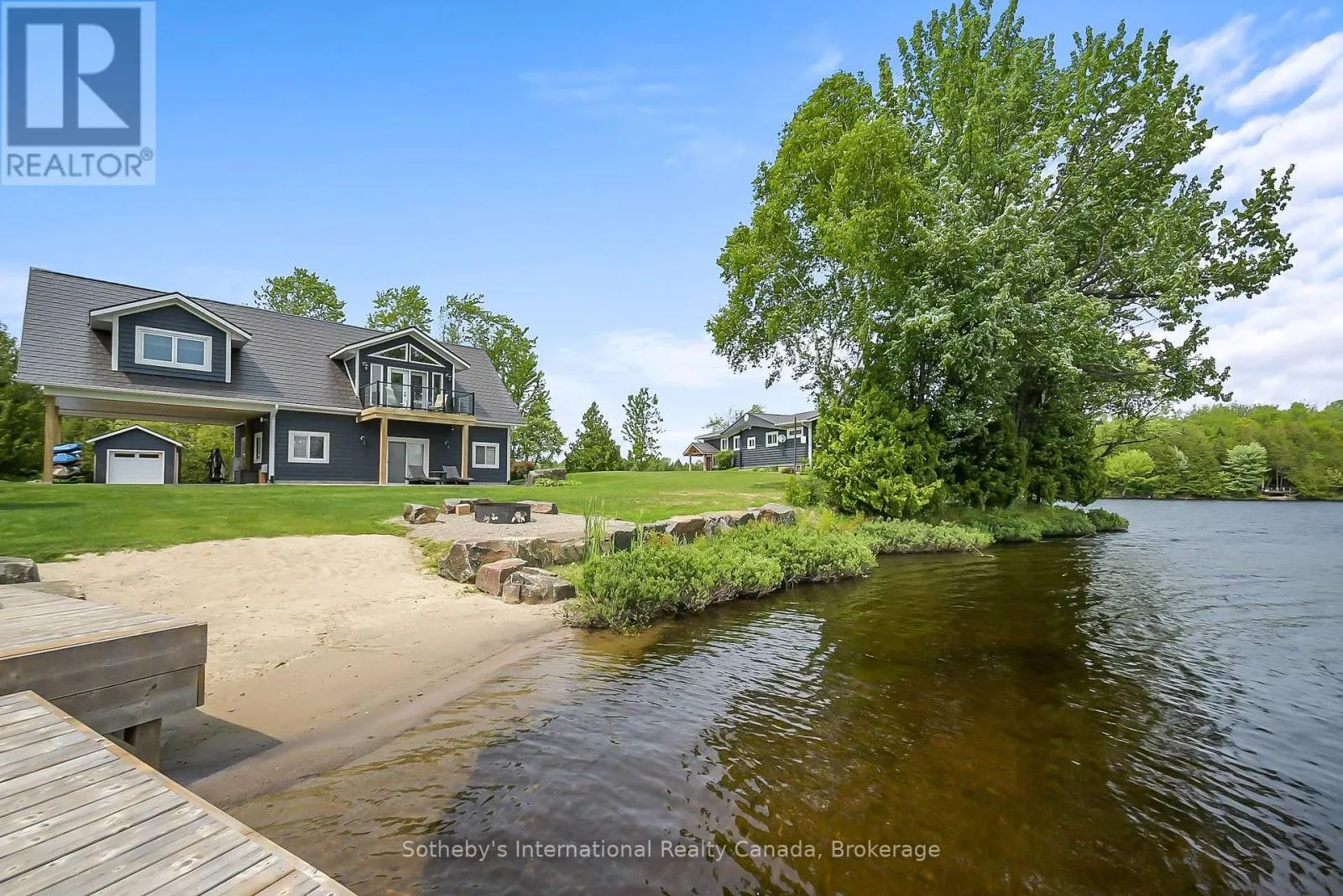 Cross Streets: Canning Road - Bears Paw. ** Directions: Balsam Road - Canning Road - Bears Paw. Rare Whitestone Lake point lot with 490 ft of shoreline, full south and West exposure & long lake views. This unique property features two fully serviced dwellings, ideal for extended family, guests, or income potential. The main home offers 2 bedrooms and 2 bathrooms with an open-concept layout and expansive lake views. The detached 1,456 sq ft carriage house includes 2 additional bedrooms, 1 bathroom, a 2-car heated garage, and a covered port. The flag stone patio and lakeside firepit, Deep water, beach, and exceptional privacy enhance the appeal. An ideal setting for a private family retreat, multi-generational living, or a legacy waterfront investment. Opportunities with this level of scale, seclusion, and versatility are rare on Whitestone Lake. Extra lot, including all services (electricity, well, septic), available upon request. LOT SIZE GEO 14.64 ft x 53.75 ft x 29.29 ft x 63.64 ft x 34.85 ft x 229.43 ft x 10.29 ft x 10.29 ft x 10.29 ft x 10.29 ft x 10.29 ft x 140.98 ft (id:27476)