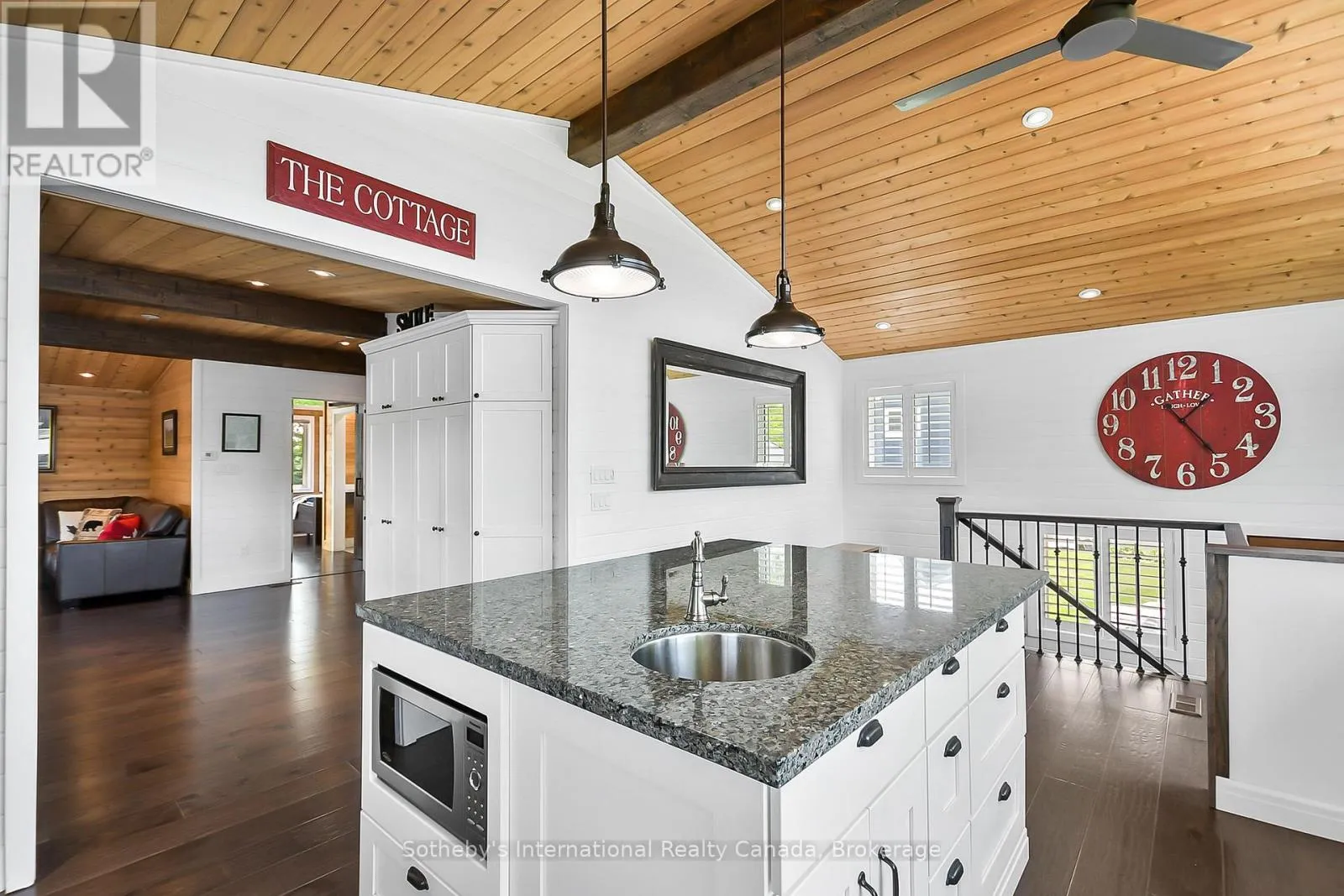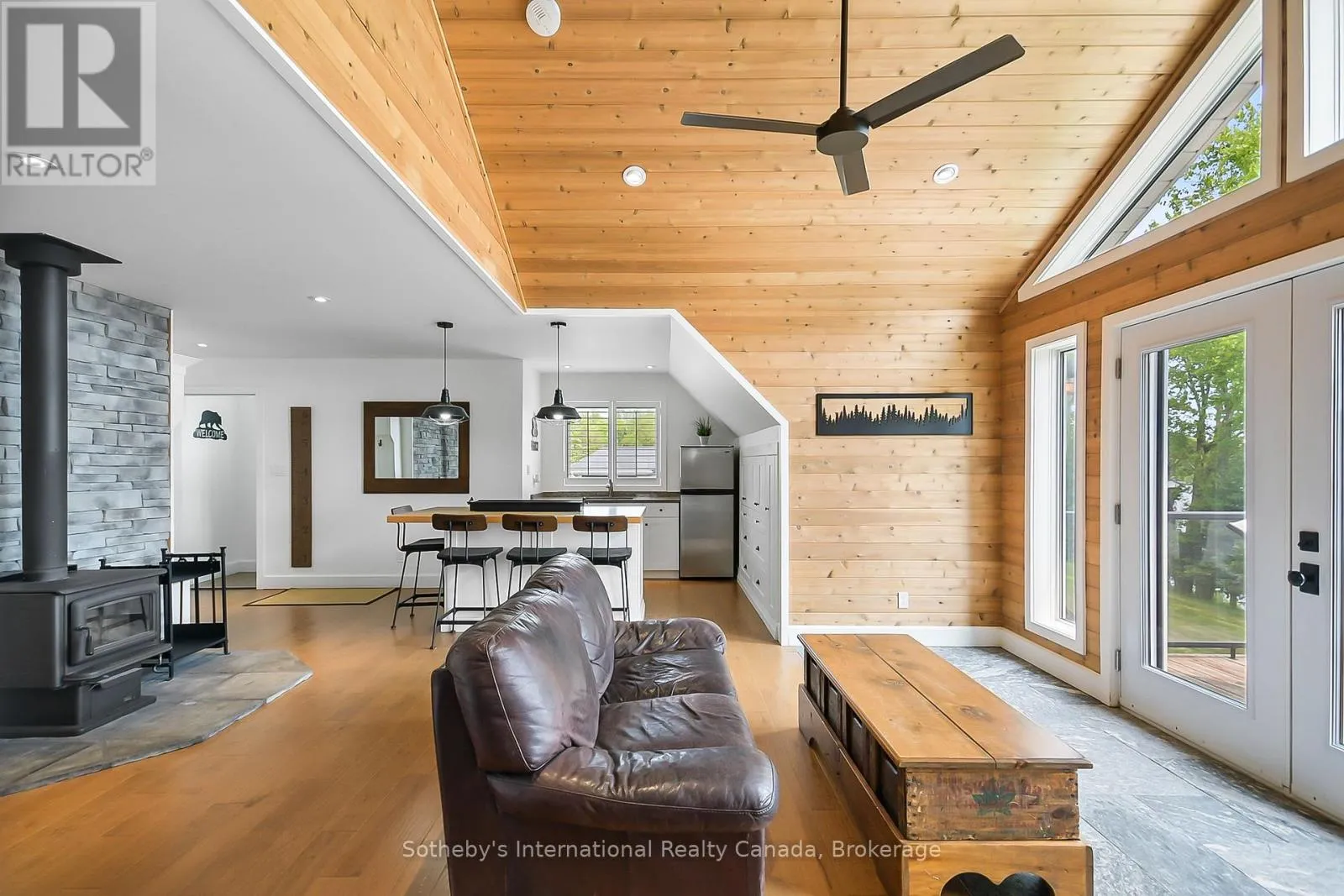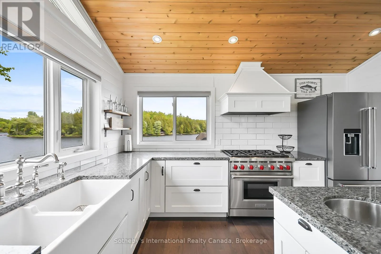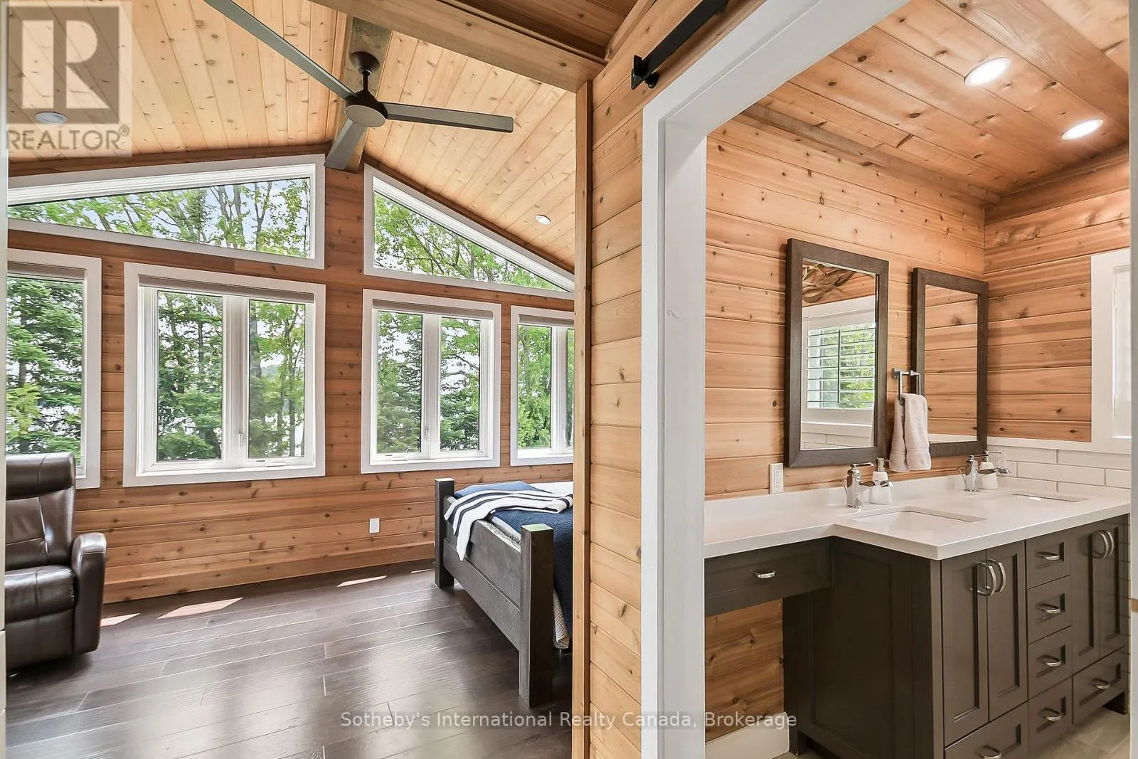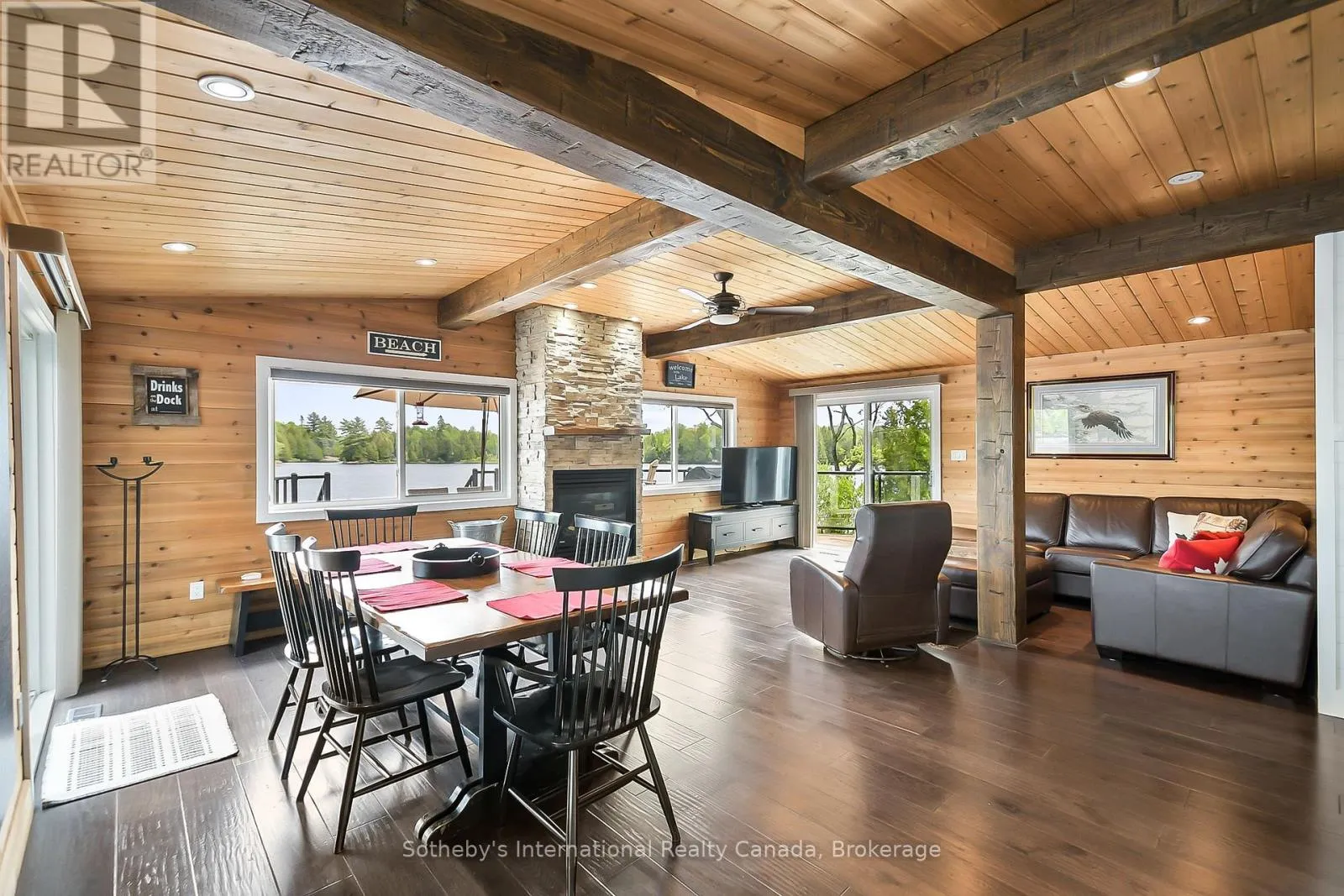 Cross Streets: Canning Road - Bears Paw. ** Directions: Balsam Road - Canning Road - Bears Paw. Rare Whitestone Lake point lot with 490 ft of shoreline, full south and West exposure & long lake views. This unique property features two fully serviced dwellings, ideal for extended family, guests, or income potential. The main home offers 2 bedrooms and 2 bathrooms with an open-concept layout and expansive lake views. The detached 1,456 sq ft carriage house includes 2 additional bedrooms, 1 bathroom, a 2-car heated garage, and a covered port. The flag stone patio and lakeside firepit, Deep water, beach, and exceptional privacy enhance the appeal. An ideal setting for a private family retreat, multi-generational living, or a legacy waterfront investment. Opportunities with this level of scale, seclusion, and versatility are rare on Whitestone Lake. Extra lot, including all services (electricity, well, septic), available upon request. LOT SIZE GEO 14.64 ft x 53.75 ft x 29.29 ft x 63.64 ft x 34.85 ft x 229.43 ft x 10.29 ft x 10.29 ft x 10.29 ft x 10.29 ft x 10.29 ft x 140.98 ft (id:27476)