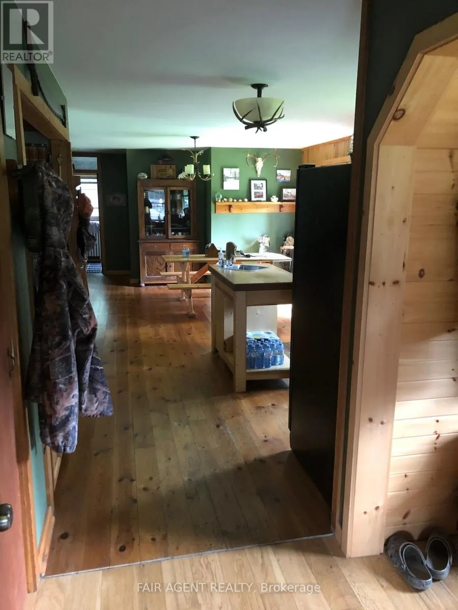 Amorak Trail / Wah-Wash-Kesh Rd Set on just over 98 acres in the heart of Whitestone, this rural retreat offers a rare mix of privacy, potential, and practical infrastructure. The main residence is a comfortable 2-bedroom bungalow, heated with a combination of propane and water-based systems, and fully backed up by a generator for peace of mind. A standout feature is the 32' x 32' heated workshop, ideal for tradespeople, hobbyists, or extra storage. A family-built log A-Frame cabin, overlooking the Whitestone River, adds rustic charm and is serviced by propane, perfect as a seasonal getaway or studio space. The land itself is a blend of open clearings, wooded trails, wetlands, and direct river frontage with access to Taylor Lake and Wahwashkesh Lake. A potential natural severance of approx. 28 acres is possible due to road placement, making this a unique opportunity for future development or multi-generational use. The property backs onto crown land, extending your backyard into endless exploration and recreational options. Additional highlights include outbuildings for storage and back up generator back up system for both residence and shop. Whether you're looking for a year-round residence, hobby farm, or weekend escape, this versatile property invites you to enjoy the best nature has to offer. (id:27476)
