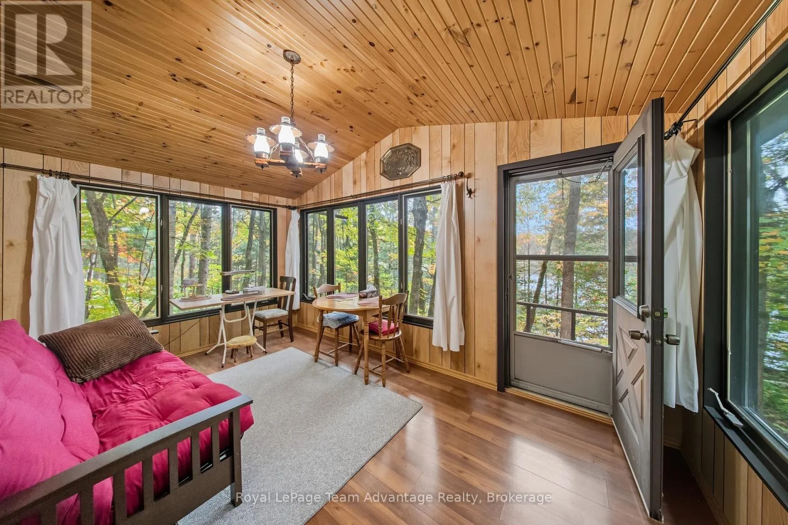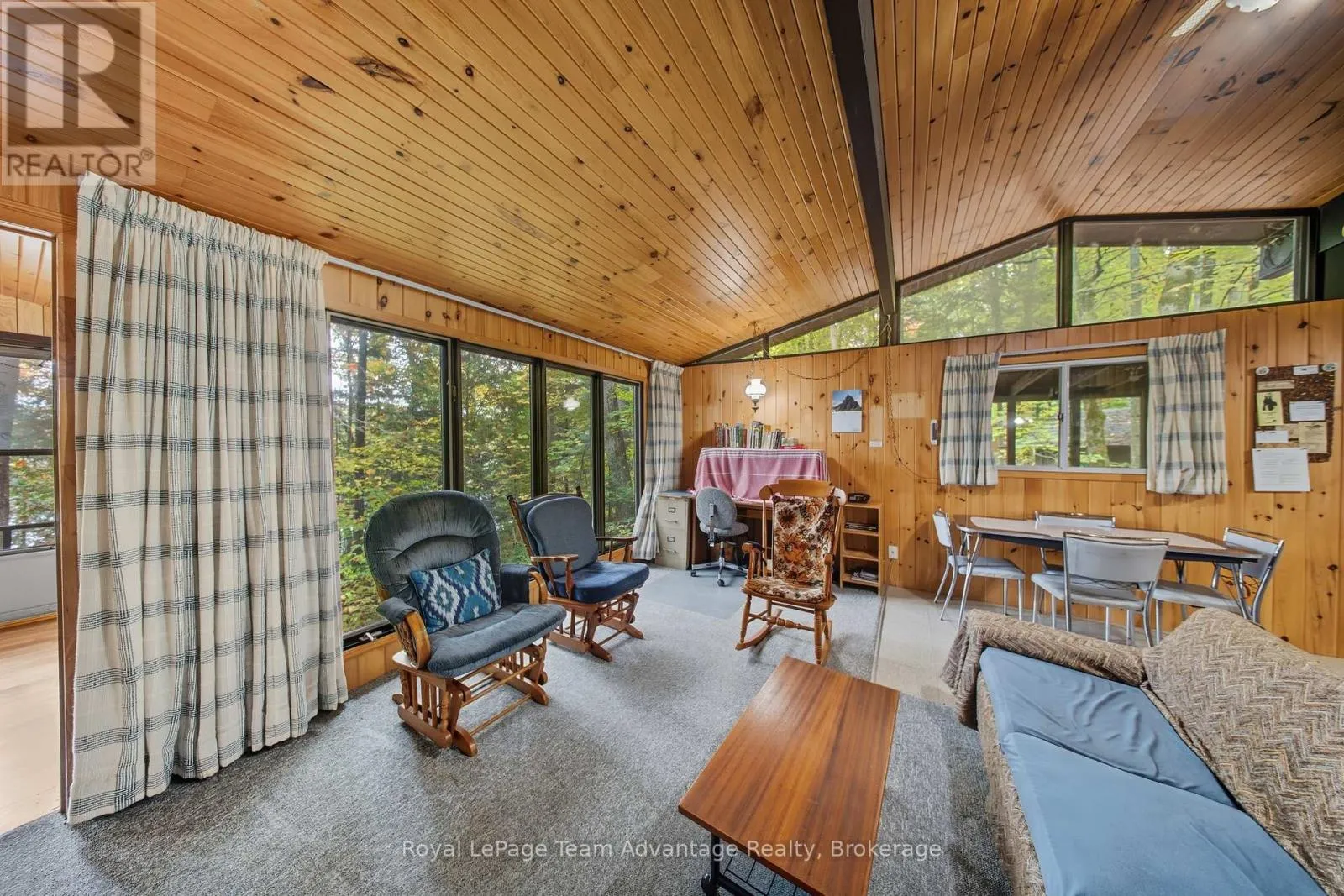 Cross Streets: Hwy #124/Dunchurch Estates Rd. ** Directions: Hwy 400 to Hwy 124 to Dunchurch Estates Rd. Sign on the left. Excellent opportunity to be a part of Whitestone Lake. Close to all amenities and just 20 minutes from Parry Sound. This well protected and private 3 bedroom seasonal cottage and storage/workshop offers 125 feet of clean, rocky Northwest frontage on a year-round private road. The interior features pine lined walls and ceilings with an open concept design. The cottage gives a warm sense from the moment you walk in and the newer sitting room addition affords the extra room and natural light needed for extra comfort. Propane wall heat extend the must-haves for an enjoyable stay. The 18'x12' workshop offers plenty of space for toys and storage. The waterfront has a concrete dock/deck that could be easily added onto with a floating dock for any type of watercraft. (id:27476)