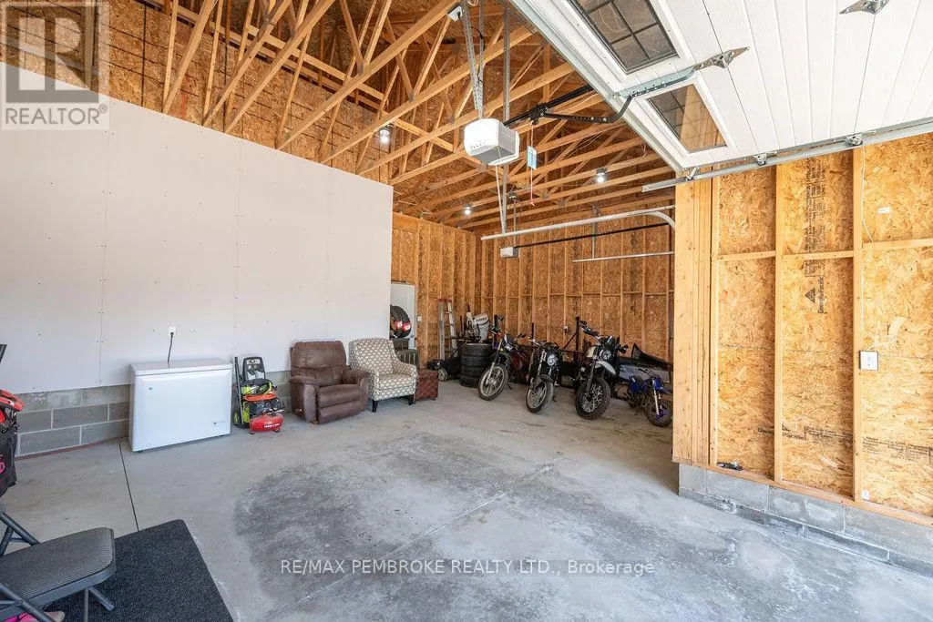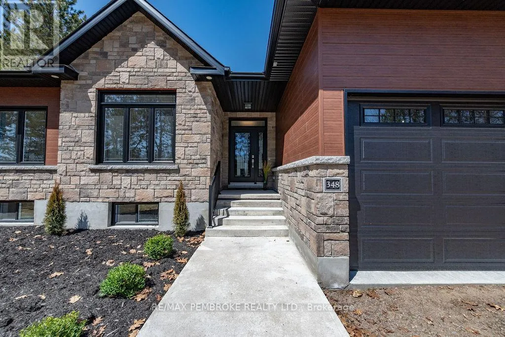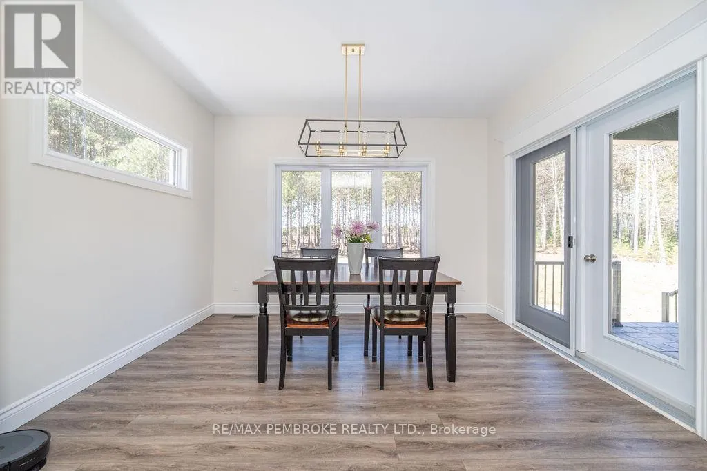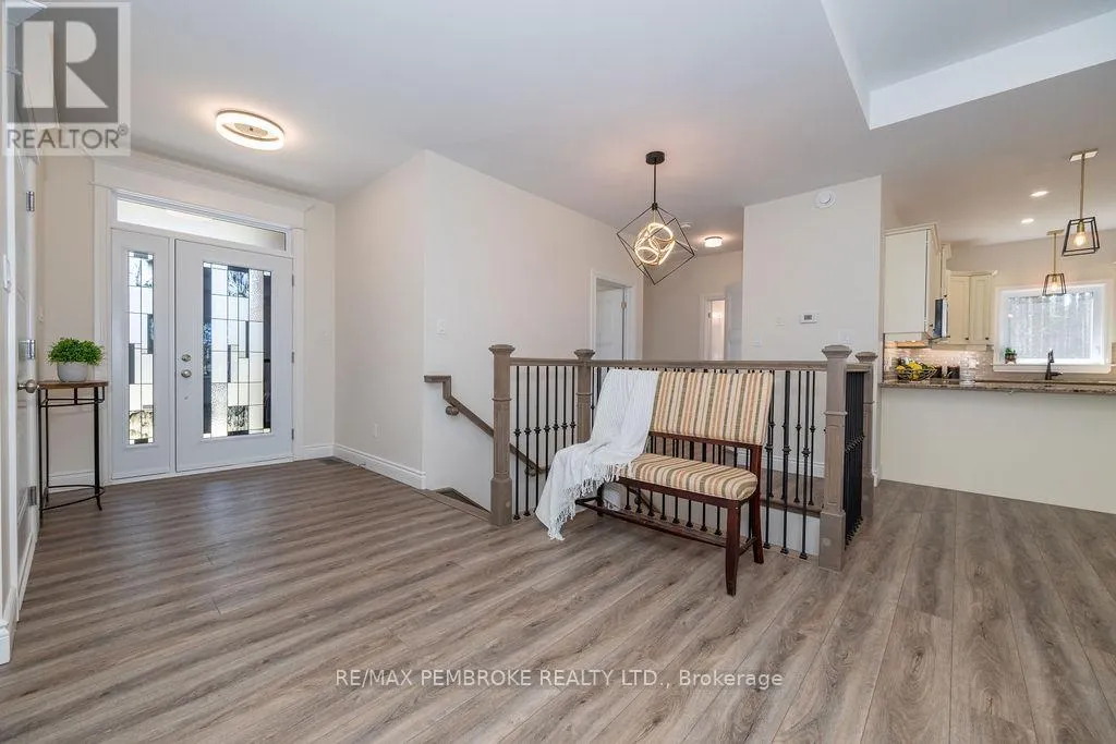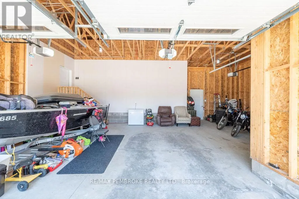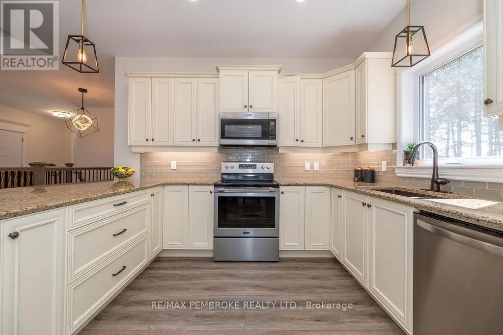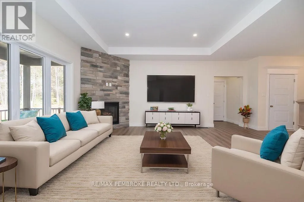 Cross Streets: Zion Line and Pappin Rd. ** Directions: Beachburg road, right on Zion Line, Left on Pappin Road. Welcome to the Gildchrist! This luxury-inspired model from award winning Legacy Homes, has it all and sits in a country setting on 3 acres only 15mins from Pembroke. Designed w space & comfort it offers 9 ceiling and flooded w natural light w an open concept floorplan featuring a spacious entry [w double closet] and access to the triple garage, living area [featuring a 10 tray ceiling & gas f/p], stunning custom kitchen [complete w a huge amount of cabinetry, U-shaped stone countertop], dining area w elegant French doors to an amazing covered porch, a luxurious primary bedroom also featuring a 10 tray ceiling, W/I closet + beautiful ensuite [w Jacuzzi, a 2-sink vanity, gorgeous custom tiled shower w additional features such as body jets and/or rain head shower], 2 additional bright bedrooms, a full 4pc bath plus main floor laundry closet finishes off the main level. The fully finished lower level is also bathed in natural light and offers a lot of additional living space. This model could easily host a granny-suite [see digitally staged photos] and still have room to spare. A large L-shaped rec rm, 3 additional bedrooms, full 4pc bath, storage closet + huge utility/storage room. The stunning exterior makes a statement w craftsman style architecture & extravagant stonework, windows, and premium board and batten siding. Many builders upgrades incl. gas furnace & oversized heat pump [to increase efficiency], Rub R Wall to exterior foundation, R60 in attic, insulated slab in basement. This little gem of a location offers community-based places of interest nearby and literally just down the road is Little Lake Mountain Biking Trails where you can park, swim & bike or hike a loop trail around the lake [and features a beautiful sand beach, benches, pavilions and washrooms]. Please see Spec Sheet for additional information on this build. Elec: $118/m[ave], Propane: $800/yr[approx]. 24hr Irrevocable on all Offers. (id:27476)