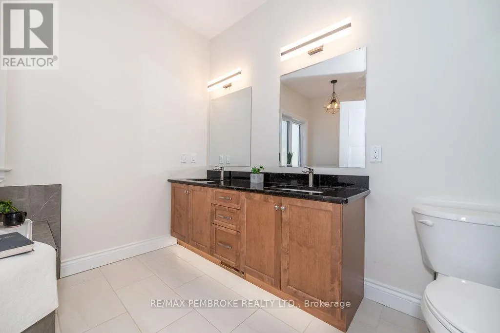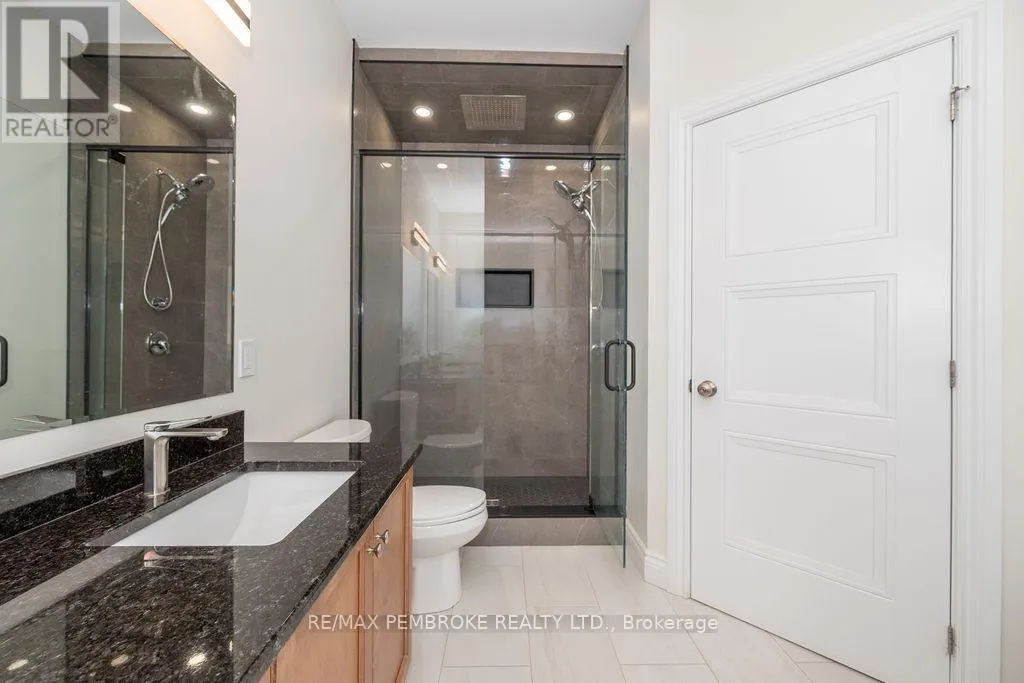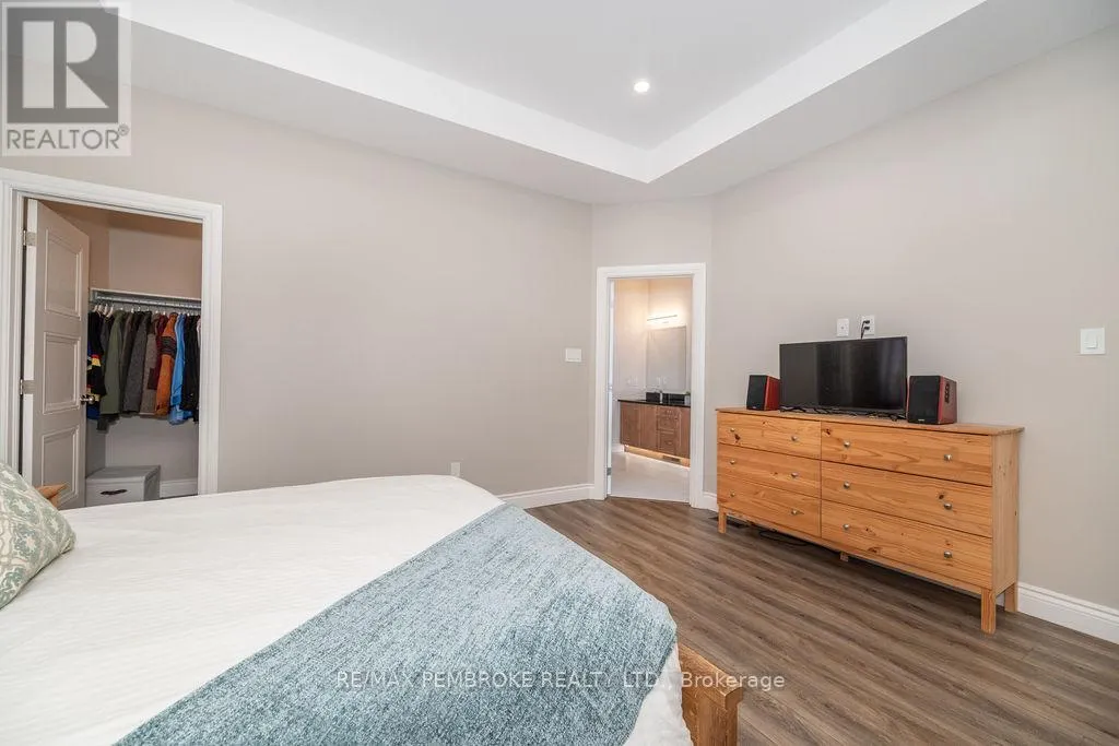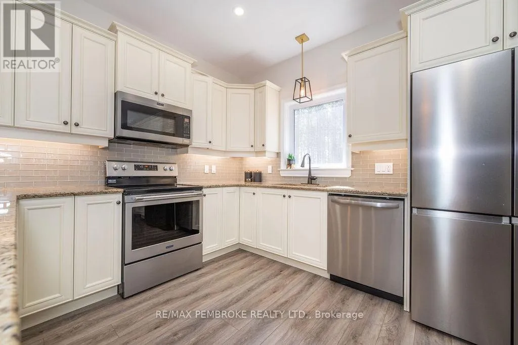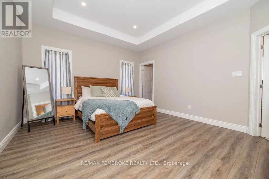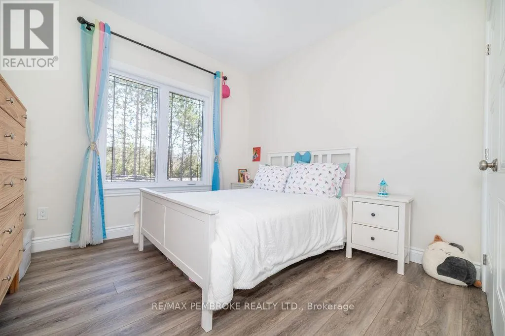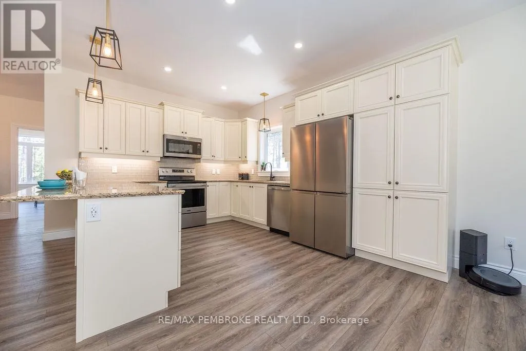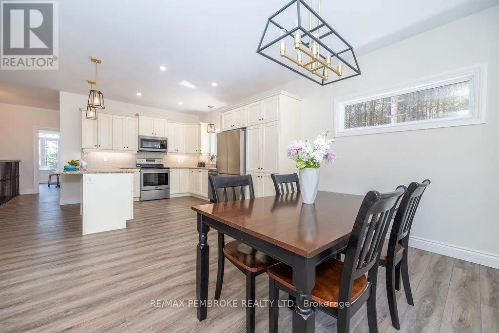Cross Streets: Zion Line and Pappin Rd. ** Directions: Beachburg road, right on Zion Line, Left on Pappin Road. Welcome to the Gildchrist! This luxury-inspired model from award winning Legacy Homes, has it all and sits in a country setting on 3 acres only 15mins from Pembroke. Designed w space & comfort it offers 9 ceiling and flooded w natural light w an open concept floorplan featuring a spacious entry [w double closet] and access to the triple garage, living area [featuring a 10 tray ceiling & gas f/p], stunning custom kitchen [complete w a huge amount of cabinetry, U-shaped stone countertop], dining area w elegant French doors to an amazing covered porch, a luxurious primary bedroom also featuring a 10 tray ceiling, W/I closet + beautiful ensuite [w Jacuzzi, a 2-sink vanity, gorgeous custom tiled shower w additional features such as body jets and/or rain head shower], 2 additional bright bedrooms, a full 4pc bath plus main floor laundry closet finishes off the main level. The fully finished lower level is also bathed in natural light and offers a lot of additional living space. This model could easily host a granny-suite [see digitally staged photos] and still have room to spare. A large L-shaped rec rm, 3 additional bedrooms, full 4pc bath, storage closet + huge utility/storage room. The stunning exterior makes a statement w craftsman style architecture & extravagant stonework, windows, and premium board and batten siding. Many builders upgrades incl. gas furnace & oversized heat pump [to increase efficiency], Rub R Wall to exterior foundation, R60 in attic, insulated slab in basement. This little gem of a location offers community-based places of interest nearby and literally just down the road is Little Lake Mountain Biking Trails where you can park, swim & bike or hike a loop trail around the lake [and features a beautiful sand beach, benches, pavilions and washrooms]. Please see Spec Sheet for additional information on this build. Elec: $118/m[ave], Propane: $800/yr[approx]. 24hr Irrevocable on all Offers. (id:27476)