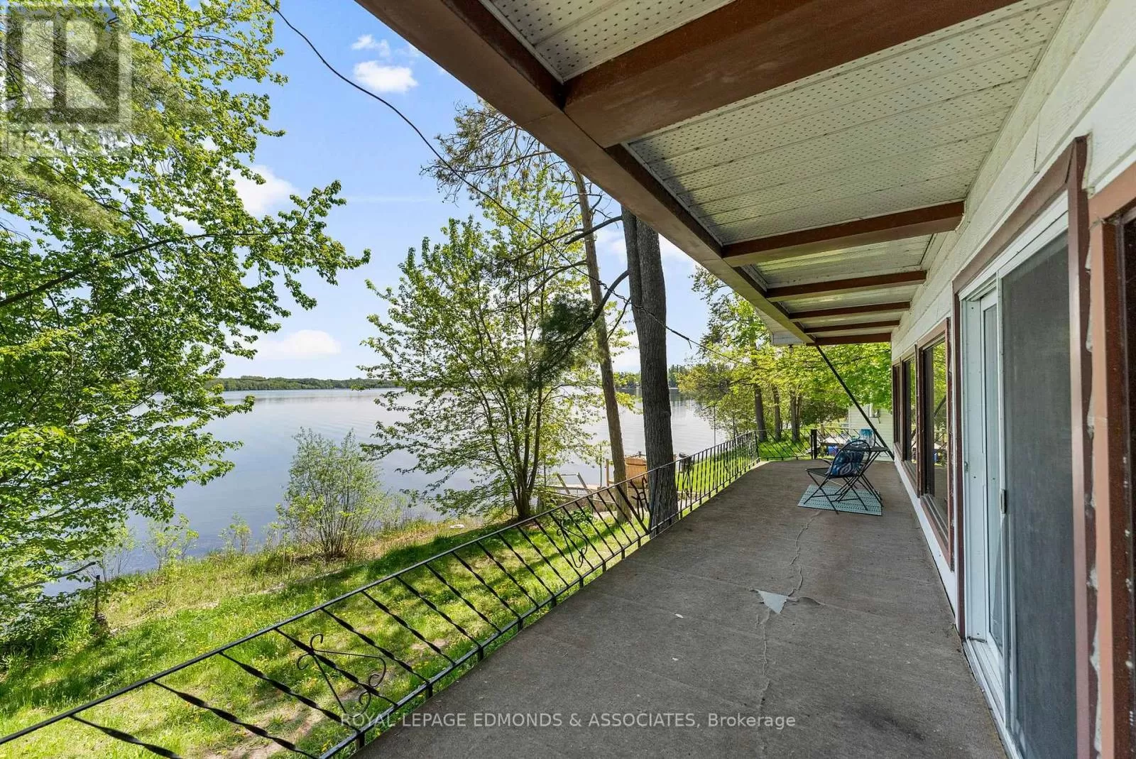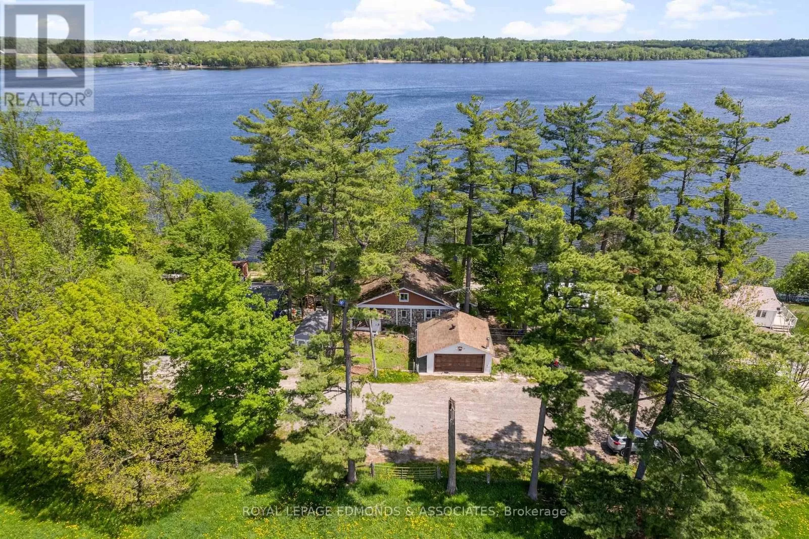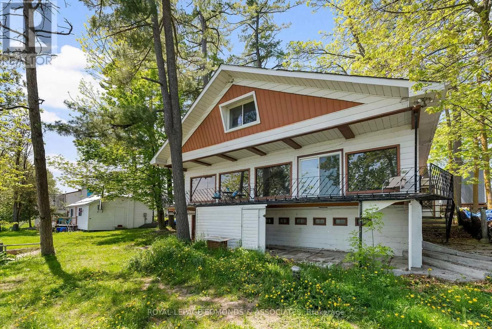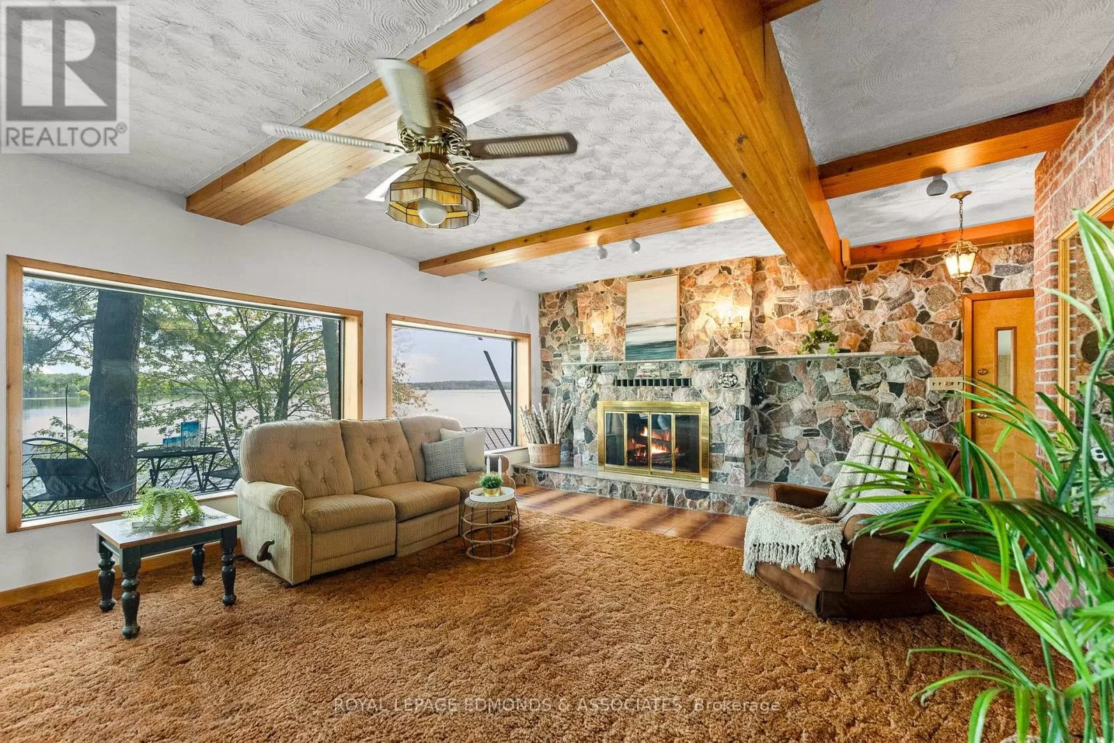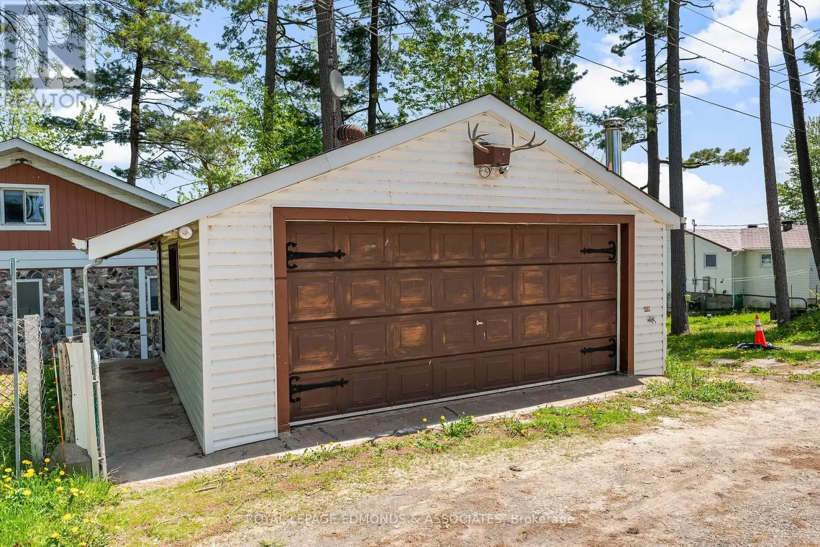 Cross Streets: MacFarlane Rd and Cobble Stone Ln. ** Directions: From Highway 17, turn onto Macfarlane Rd, then turn right onto Cobble Stone Lane. Nestled on the tranquil shores of Muskrat Lake, this unique property offers an exceptional opportunity to embrace lakeside living with timeless charm and character. Full of potential, this one-of-a-kind home boasts distinctive architectural features and vintage appeal, making it a perfect canvas for those with a creative eye. The home welcomes you with front garden space and leads to a sunroom with exposed brick and storage. Step inside and you are greeted by the first main floor bedroom as well as the spacious kitchen. Continuing into the living space you'll be captivated by the wood beams and rustic finishes that evoke a sense of cozy, nostalgic retreat. A stunning spiral staircase anchors the main level, adding architectural flair while connecting to both the upper living spaces and the expansive first floor. From the open concept living/dining you'll find an elevated porch, the perfect perch for morning coffee, enjoying panoramic lake views, or unwinding with evening sunsets over the water. The main bedroom has some updates and large closet space. The large 5 piece bathroom with a combination of laundry completes the main floor. Though unfinished, the basement provides a wealth of storage space for your seasonal gear, and lake toys with walkout access to the lakeside. A detached garage adds further flexibility and functionality, ideal for hobbyists or as secure parking through the seasons. 24 hour irrevocable on all offers. (id:27476)