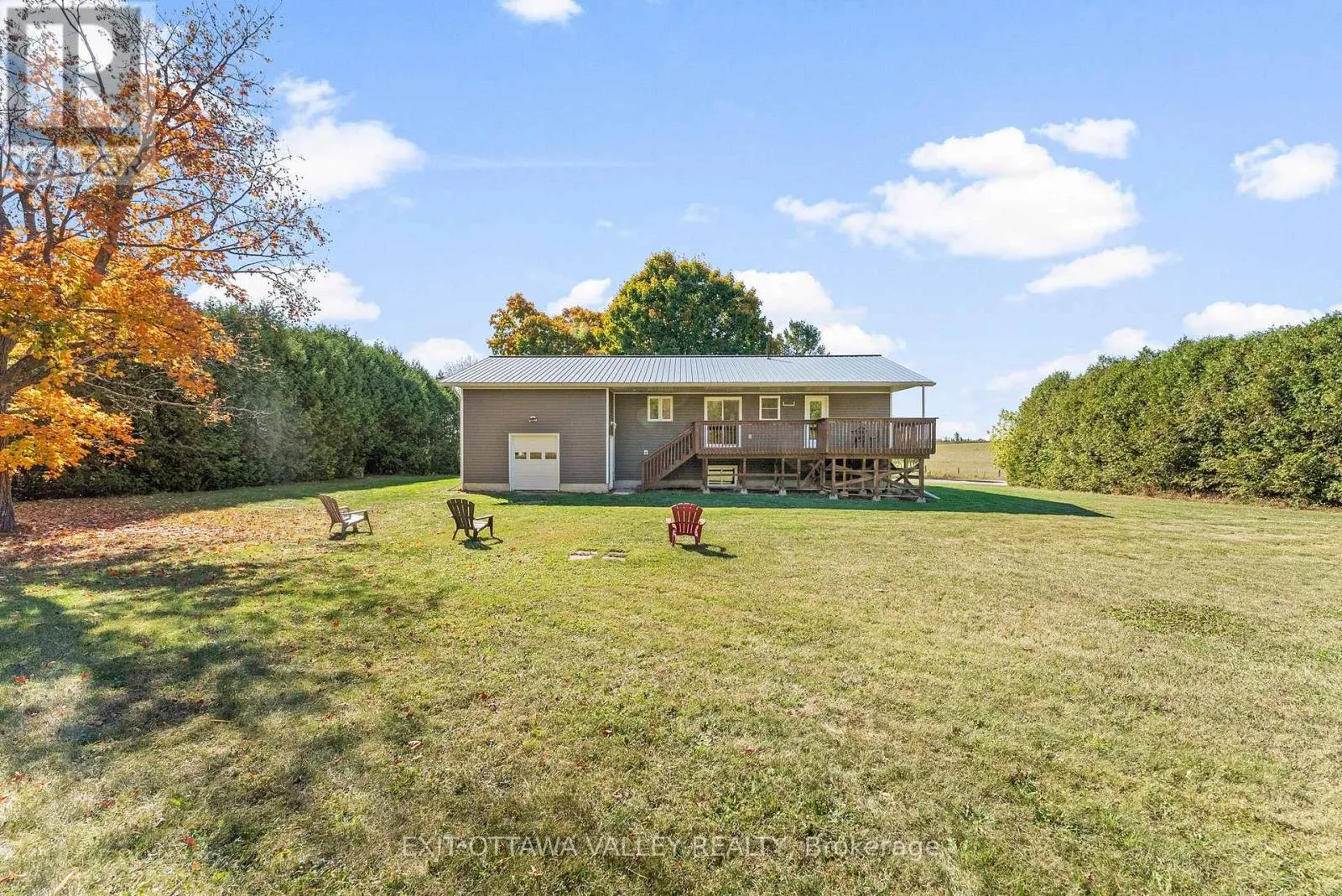 Cross Streets: Foresters Falls/ Grant Settlement. ** Directions: Bridge out in Foresters Falls . from Foresters Falls Road turn onto Queens Line, turn left at Kohlsmith Road follow to Foresters Falls Road turn left. Home is on the Right. Welcome to this inviting 3-bedroom , 2 full bath, raised bungalow in the heart of Foresters Falls, nestled on a generous 1/2 acre very private treed lot that backs onto a peaceful park. This home is move-in ready, with fresh paint throughout creating a bright and clean welcome.The main level offers a functional open concept layout including access from dining area and master bedroom to large covered deck.The lower level impresses with 9-foot ceilings, offering abundance of natural light and excellent potential for additional living or recreation space. An attached garage with a rear garage door. Don't forget the low maintenance metal roof. Blending privacy with community living, this property enjoys the best of both worlds peaceful green space out back and quick access to nearby villages including Cobden, Beachburg, and Pembroke. (id:27476)