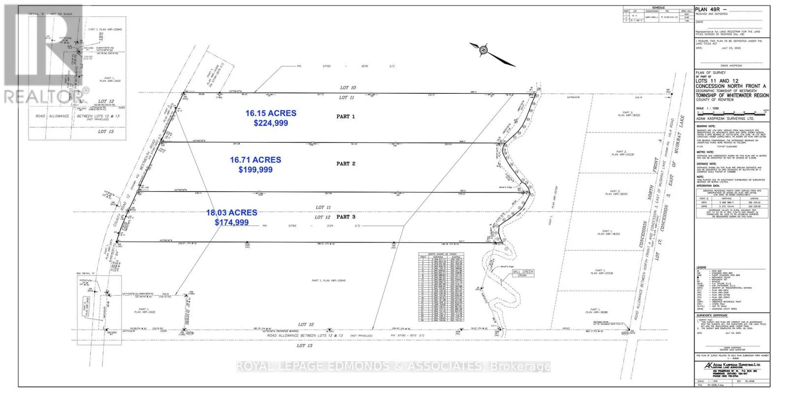 Cross Streets: Westmeath Rd & Sand Point Rd. ** Directions: Take Beachburg Rd to Westmeath Rd. Discover the perfect place to build your dream home on this beautiful 16.15 acre parcel of land surrounded by nature. Mostly flat and easy to work with, this lot features a mix of mature hardwood and softwood trees, offering privacy and a serene country setting. Backing onto Mill Creek, with another smaller creek flowing through the lower portion, this property is a haven for wildlife and outdoor enthusiasts. Whether you enjoy hunting or exploring, you'll love having your own piece of the great outdoors right in your backyard. There's plenty of space here to design the lifestyle you've always wanted - from a family home with room for kids to roam, to a private retreat surrounded by nature. Create trails through the woods, set up a garden, or build that dream shop or hobby farm you've always envisioned. If you've been searching for a peaceful escape with endless potential, this 16.15 acre lot is the perfect place to make it happen. Your country dream starts here! *Please do not walk the property without a licensed Realtor.* (id:27476)