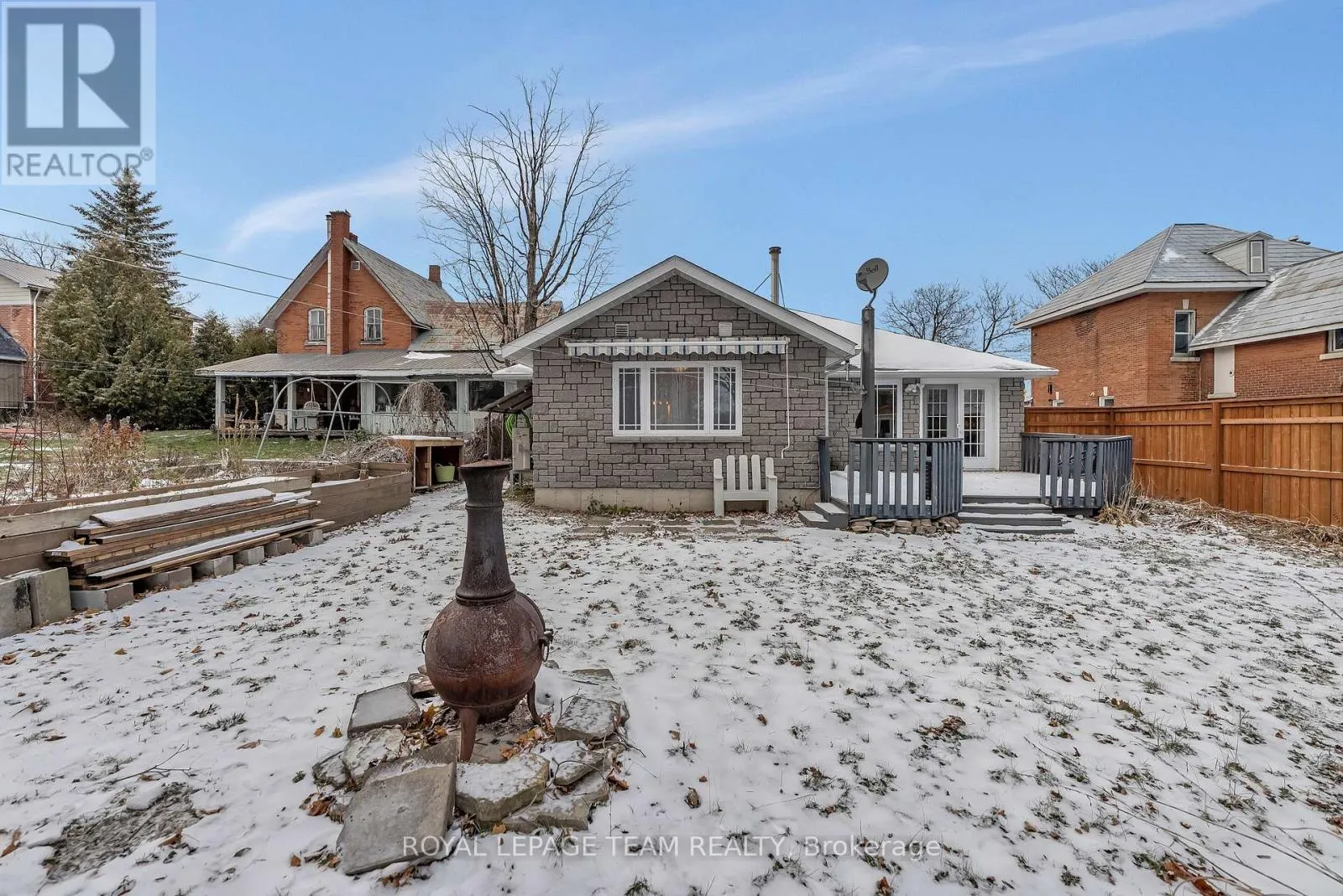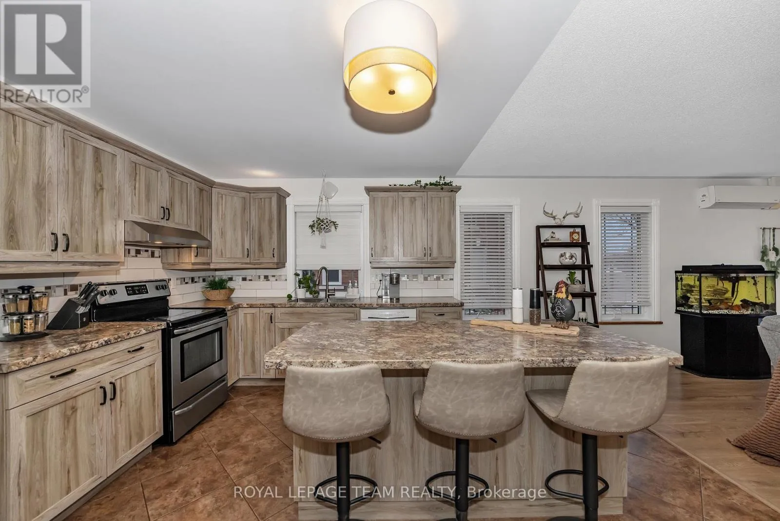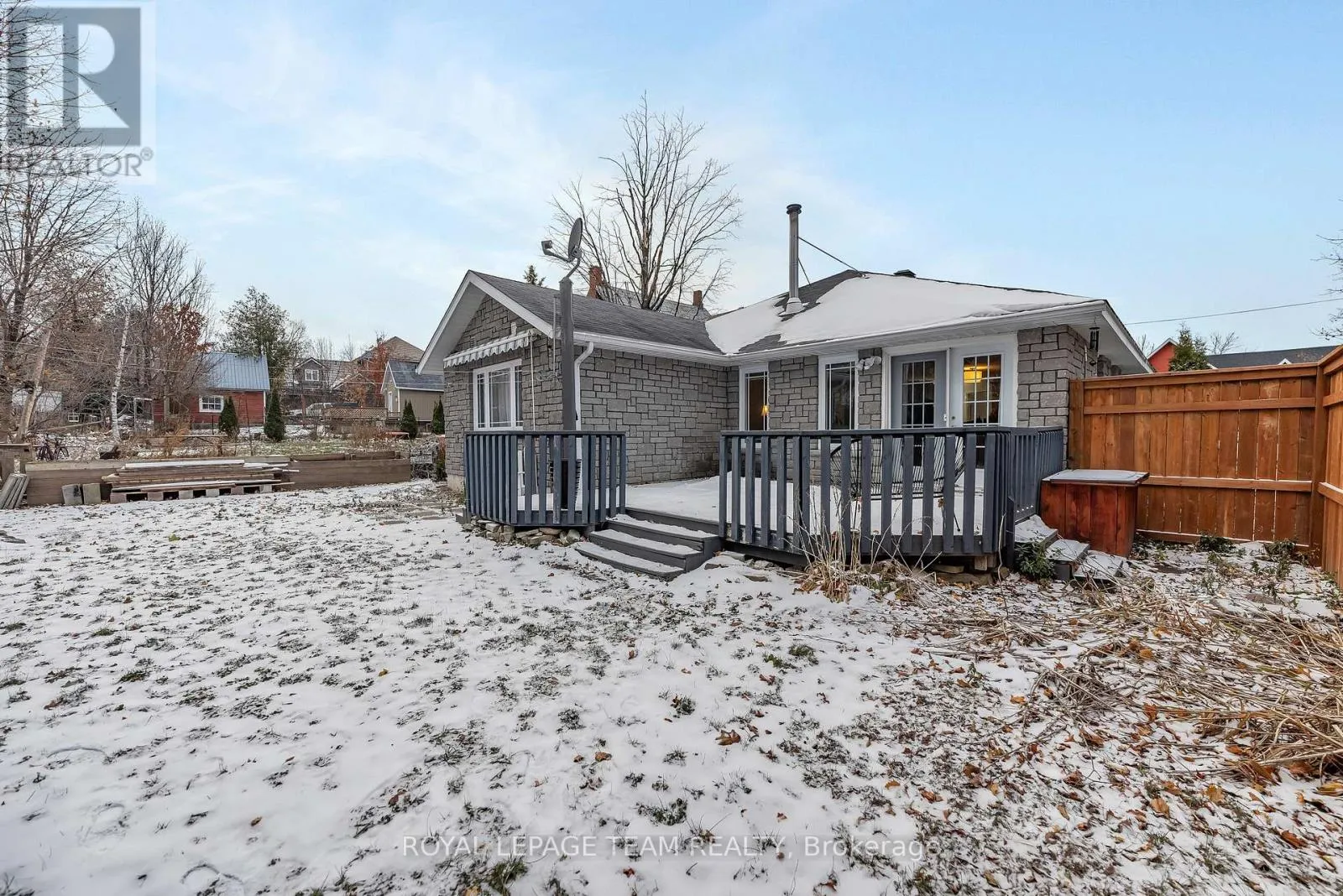Hwy 417 to Main Street Beautiful Stone 3 Bedroom Bungalow with Lake Views and Exceptional Outdoor Living. This beautifully crafted 3 bedroom home is currently a 2 bedroom with a front office . Enjoy this 1,734 Sq Ft stone bungalow, built in 2007, exudes charm and curb appeal. The home features an oversized attached garage, a wide driveway. A welcoming covered verandah offers peaceful views of the river, while the partially fenced, private yard includes a large south-facing deck (18 x 17 ft)-perfect for relaxing or entertaining during the warmer months. Inside, enjoy one-level living with heated floors throughout and a bright, airy layout filled with natural light. The spacious foyer opens to an expansive front office/3rd bedroom with waterviews that flows into the dining room creating a perfect setting for gatherings and entertaining, kitchen with a large centre island, double sink, and abundant cabinet and counter space. The kitchen overlooks the inviting living/family room, highlighted by a WETT-certified wood-burning fireplace installed in 2025- ideal for cozy family nights . The primary bedroom features both a walk-in closet and a second closet, along with a cheater ensuite to the updated full bathroom, which includes a new tub, tile, flooring, and solid wood cabinetry, an additional spacious bedroom complete the interior layout. Recent updates include new light fixtures throughout, added privacy fencing, and a newer heat pump for efficient heating and cooling. The partially fenced yard, storage shed, and beautifully landscaped grounds complete the package. Enjoy peaceful lake views and a fantastic location close to the beach, boat launch, restaurants, golf, and highway access. (id:27476)