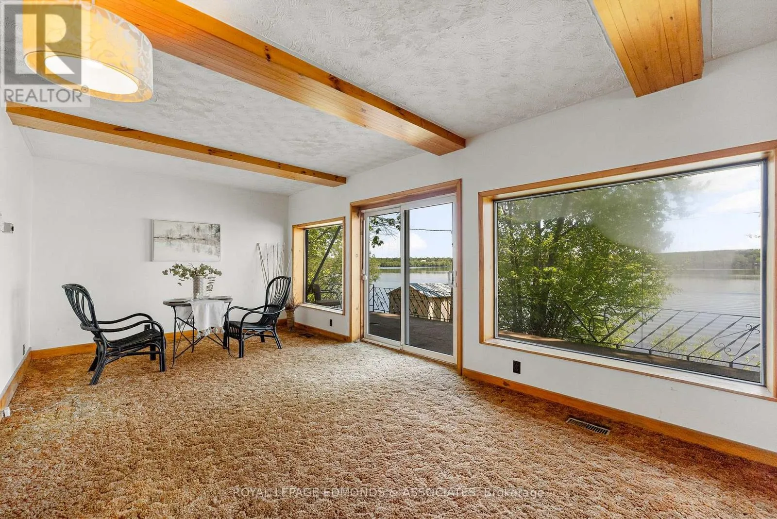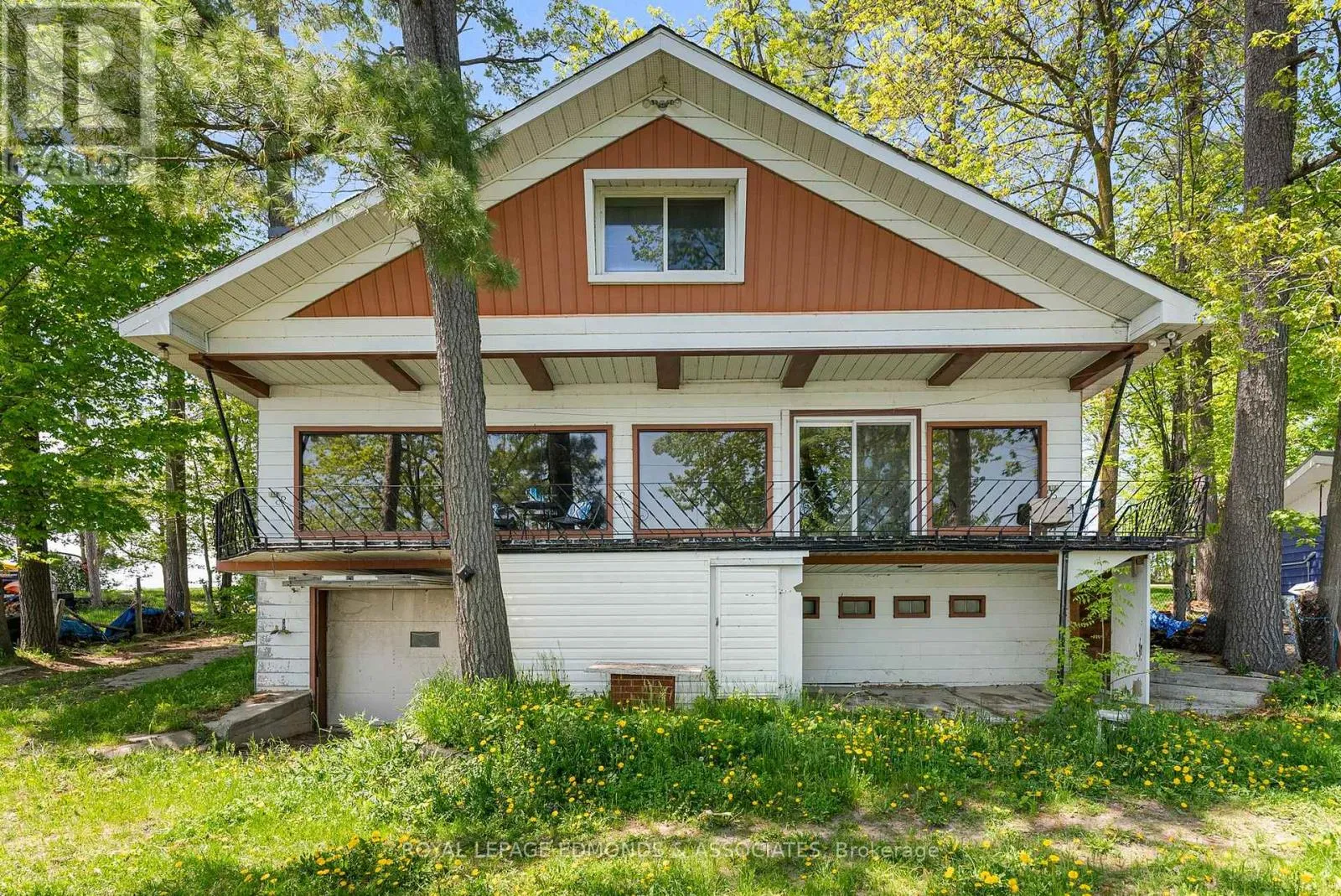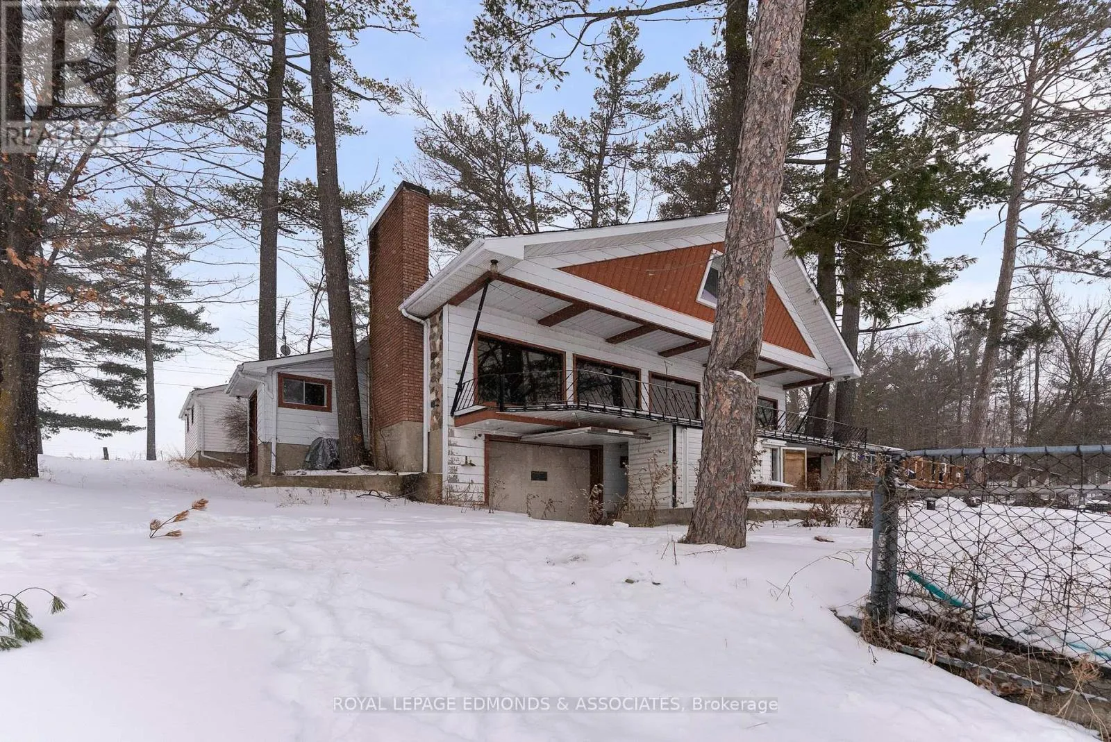 Cross Streets: MacFarlane Rd and Cobble Stone Ln. ** Directions: From Highway 17, turn onto Macfarlane Rd, then turn right onto Cobble Stone Lane. Nestled on the tranquil shores of Muskrat Lake, this unique property offers an exceptional opportunity to embrace lakeside living with timeless charm and character. Full of potential, this one-of-a-kind home boasts distinctive architectural features and vintage appeal, making it a perfect canvas for those with a creative eye. The home welcomes you with front garden space and leads to a sunroom with exposed brick and storage. Step inside and you are greeted by the first main floor bedroom as well as the spacious kitchen. Continuing into the living space you'll be captivated by the wood beams and rustic finishes that evoke a sense of cozy, nostalgic retreat. A stunning spiral staircase anchors the main level, adding architectural flair while connecting to both the upper living spaces and the expansive first floor. From the open concept living/dining you'll find an elevated porch, the perfect perch for morning coffee, enjoying panoramic lake views, or unwinding with evening sunsets over the water. The main bedroom has some updates and large closet space. The large 5 piece bathroom with a combination of laundry completes the main floor. Though unfinished, the basement provides a wealth of storage space for your seasonal gear, and lake toys with walkout access to the lakeside. A detached garage adds further flexibility and functionality, ideal for hobbyists or as secure parking through the seasons. 24 hour irrevocable on all offers. (id:27476)