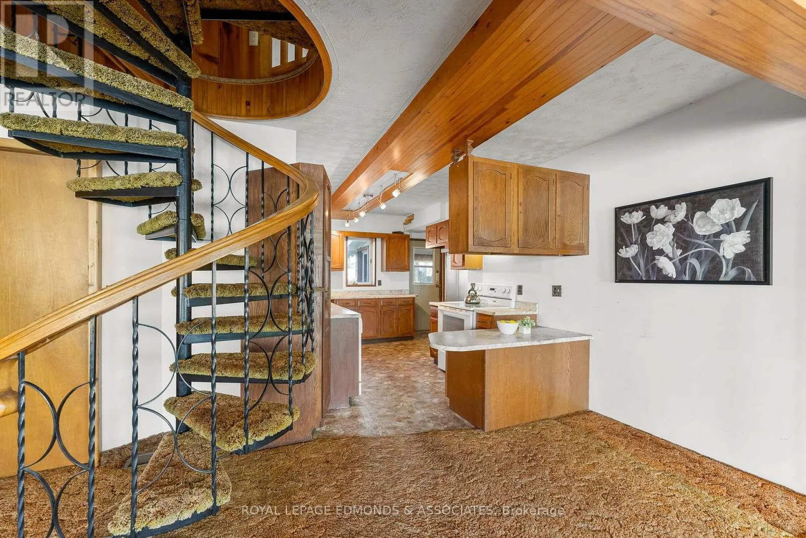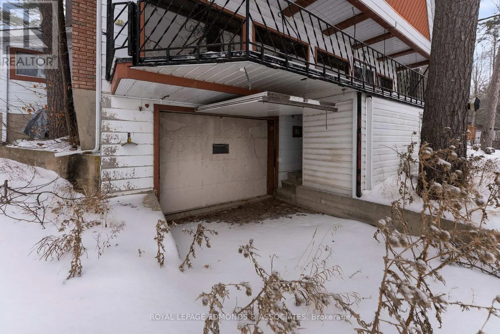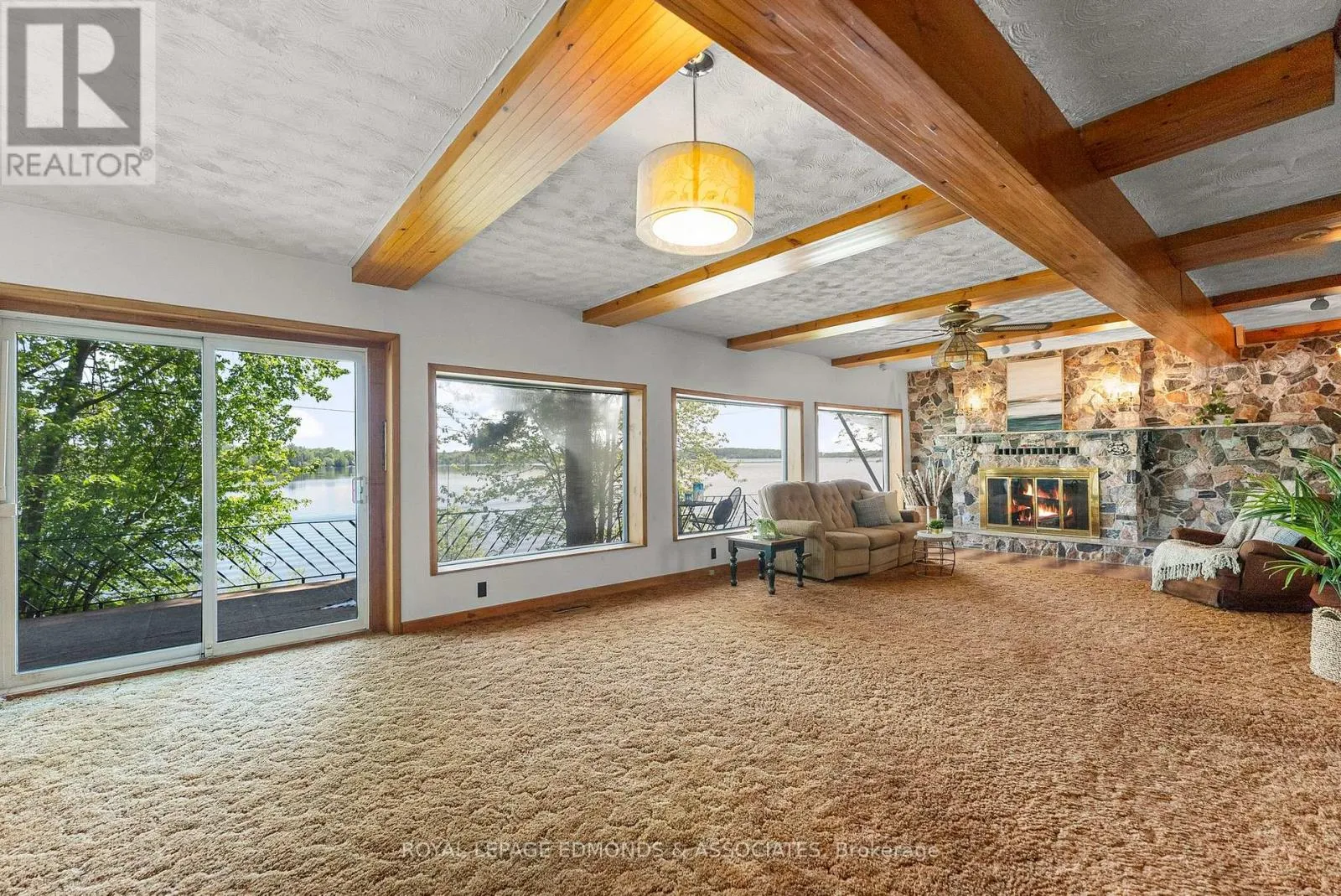 Cross Streets: MacFarlane Rd and Cobble Stone Ln. ** Directions: From Highway 17, turn onto Macfarlane Rd, then turn right onto Cobble Stone Lane. Nestled on the tranquil shores of Muskrat Lake, this unique property offers an exceptional opportunity to embrace lakeside living with timeless charm and character. Full of potential, this one-of-a-kind home boasts distinctive architectural features and vintage appeal, making it a perfect canvas for those with a creative eye. The home welcomes you with front garden space and leads to a sunroom with exposed brick and storage. Step inside and you are greeted by the first main floor bedroom as well as the spacious kitchen. Continuing into the living space you'll be captivated by the wood beams and rustic finishes that evoke a sense of cozy, nostalgic retreat. A stunning spiral staircase anchors the main level, adding architectural flair while connecting to both the upper living spaces and the expansive first floor. From the open concept living/dining you'll find an elevated porch, the perfect perch for morning coffee, enjoying panoramic lake views, or unwinding with evening sunsets over the water. The main bedroom has some updates and large closet space. The large 5 piece bathroom with a combination of laundry completes the main floor. Though unfinished, the basement provides a wealth of storage space for your seasonal gear, and lake toys with walkout access to the lakeside. A detached garage adds further flexibility and functionality, ideal for hobbyists or as secure parking through the seasons. 24 hour irrevocable on all offers. (id:27476)