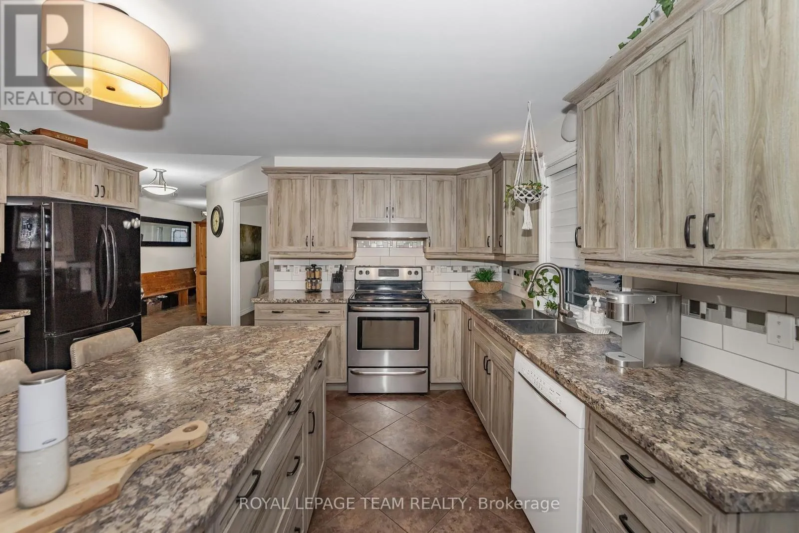 Cross Streets: Hwy 417 to Main Street. ** Directions: Highway 417 to Main Street. Beautiful Stone Bungalow with Lake Views & Exceptional Outdoor Living. Custom-built in 2007, this 1,734 sq. ft. stone bungalow perfectly blends charm with modern efficiency. Experience true "one-level living" featuring radiant heated floors throughout and a bright, airy layout flooded with natural light. At the heart of the home is an open-concept kitchen boasting a large centre island, abundant cabinetry, and a double sink-seamlessly flowing into a formal dining area designed for entertaining. The adjacent living room offers ultimate coziness with a WETT-certified wood-burning fireplace (new in 2025).The primary suite is a true retreat, featuring both a walk-in closet and a secondary closet with "cheater" access to the updated full bathroom, which shines with a new tub, custom tile, and solid wood cabinetry. Two additional spacious bedrooms provide plenty of room for family or a home office.The home features an oversized attached garage and wide driveway. A welcoming covered verandah offers peaceful views of the lake, while the partially fenced, private yard includes a large south-facing deck (18 x 17 ft)-perfect for relaxing or entertaining during the warmer months. Recent updates include new light fixtures throughout, added privacy fencing, and a newer heat pump for efficient heating and cooling. Enjoy the convenient location close to the beach, boat launch, restaurants, golf, and highway access. (id:27476)