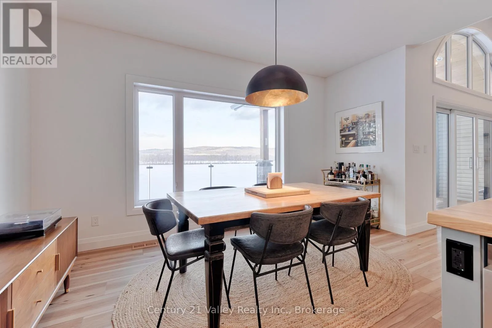 Cross Streets: Lapointe Trl / Hamish Trl. ** Directions: Once in Westmeath, take Rapid Road, turn right onto Timm Road, left onto Lachlan Lane, then left onto Lapointe Trail. Turn left onto Hamish Trail and follow it toward the end. The home is the second house from the end. Welcome to your breathtaking Ottawa River Waterfront Retreat. This exceptional raised bungalow with a walkout basement sits on 1.28 acres, surrounded by nature, offering 203.41 ft of Ottawa River frontage and panoramic views of the distant Laurentian Hills of Quebec. Combining classic craftsmanship with modern luxury, the home features vinyl lap siding with a cultured stone skirt, timber accents and arches, and multiple decks with glass railing systems that frame the river and surrounding forest. Oversized windows bring the outdoors in, filling the home with natural light and spectacular views. The main floor offers three spacious bedrooms, including a primary with a private ensuite and walk-in closet, plus a second full bathroom. The kitchen features a walk-in pantry and abundant cabinetry, and a mudroom leads to the oversized double-car garage, adding convenience to everyday living. The walkout basement is fully finished with a kitchenette, bedroom, and bathroom, ideal for guests or extended family, with radiant floor heating for comfort. Main living areas include a natural wood-burning fireplace and luxury vinyl flooring, with air conditioning keeping the home comfortable throughout the warmer months. Outside, the backyard deck flows to a sandy beach, perfect for swimming, boating, or enjoying breathtaking sunsets. Private water access and a nearby marina make water recreation effortless. WETT Certificate, Home Inspection Report, and architectural drawings are on file for peace of mind. High-speed internet and a 200-amp electrical panel provide modern convenience. A rare waterfront retreat, blending craftsmanship, natural beauty, and versatile living spaces - perfect for relaxation, entertaining, and creating lifelong memories. All written and signed offers require a minimum 24-hour irrevocable period. (id:27476)